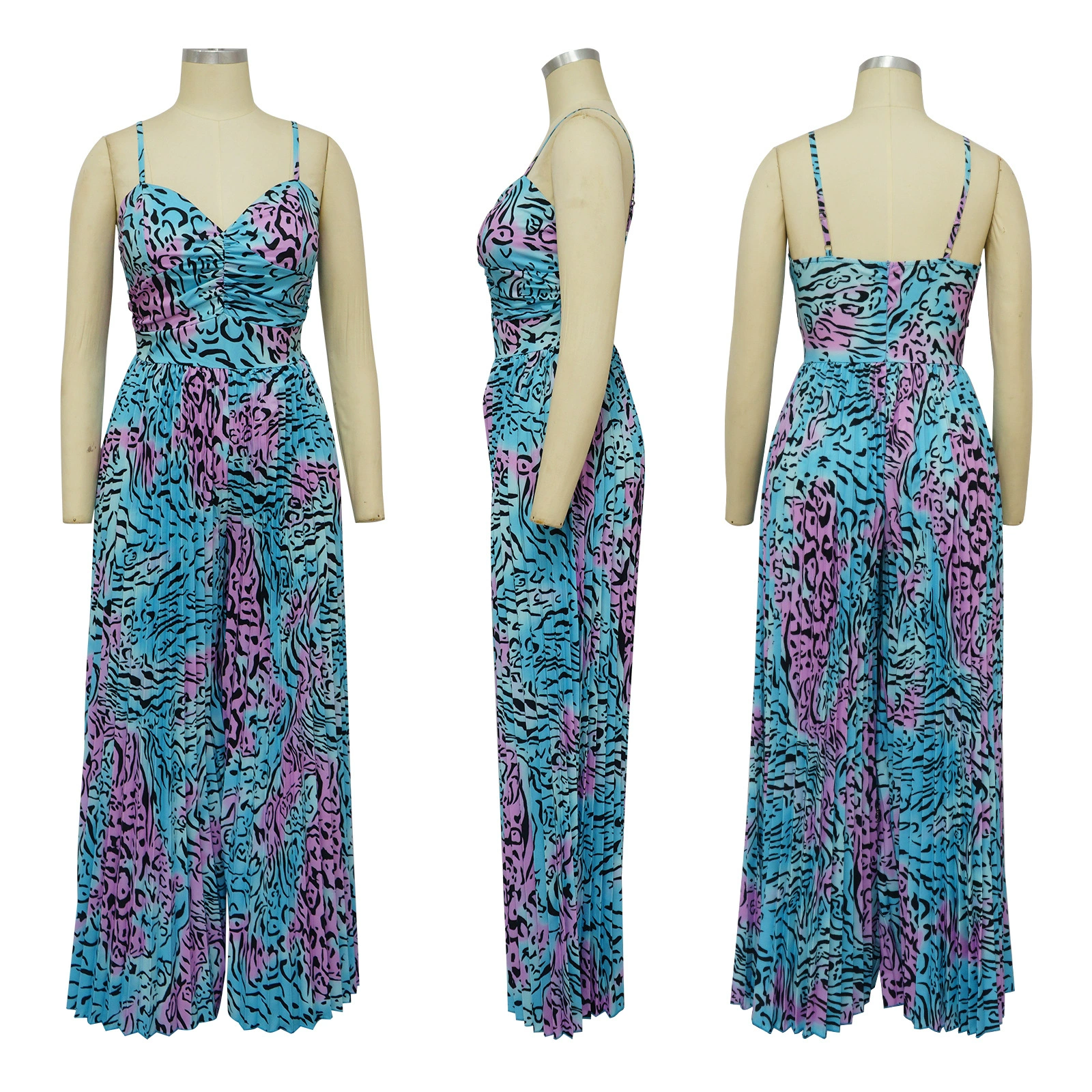CM.YAYA Women Leopard Spaghetti Strap Loose Wide Leg Sleeveless Jumpsuit 2023 Summer Street Playsuit One Piece Suit Romper