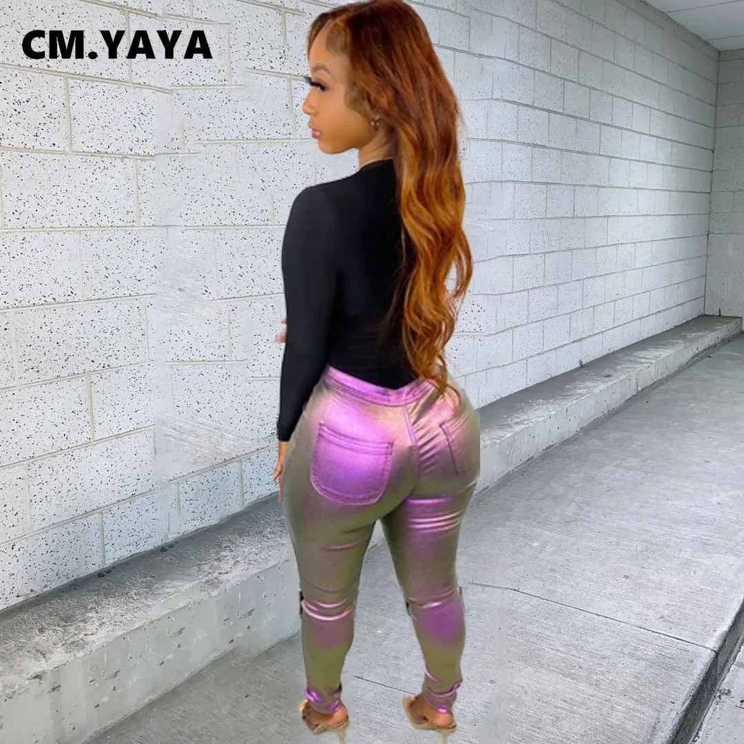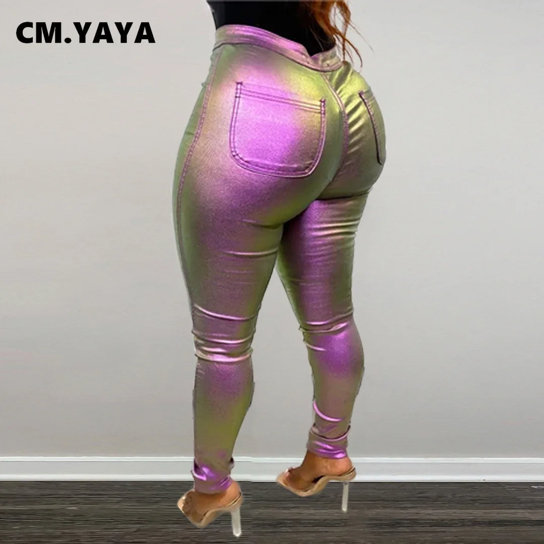 CM.YAYA Women Light Bright High Waist Pencil Pants Streetwear Elegant Sexy Trousers