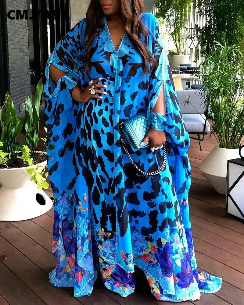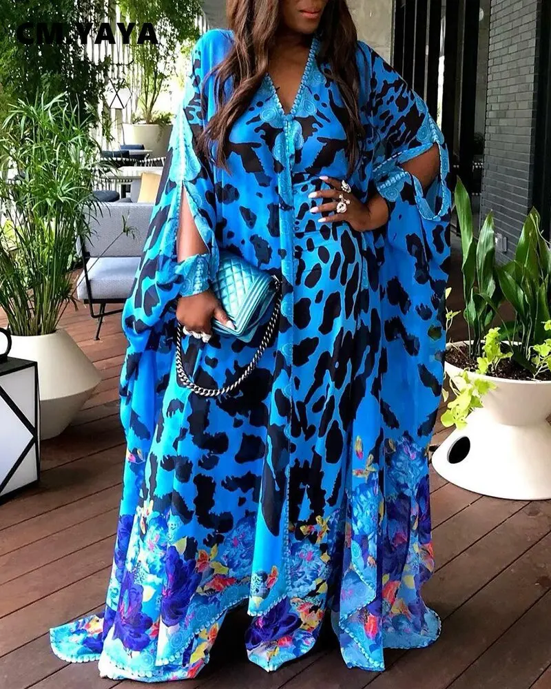 CM.YAYA Women Long Dress Print Batwing Sleeve Loose Maxi Dresses Vintage Fashion Vestidos Casualwear Autumn Outfits 2021
