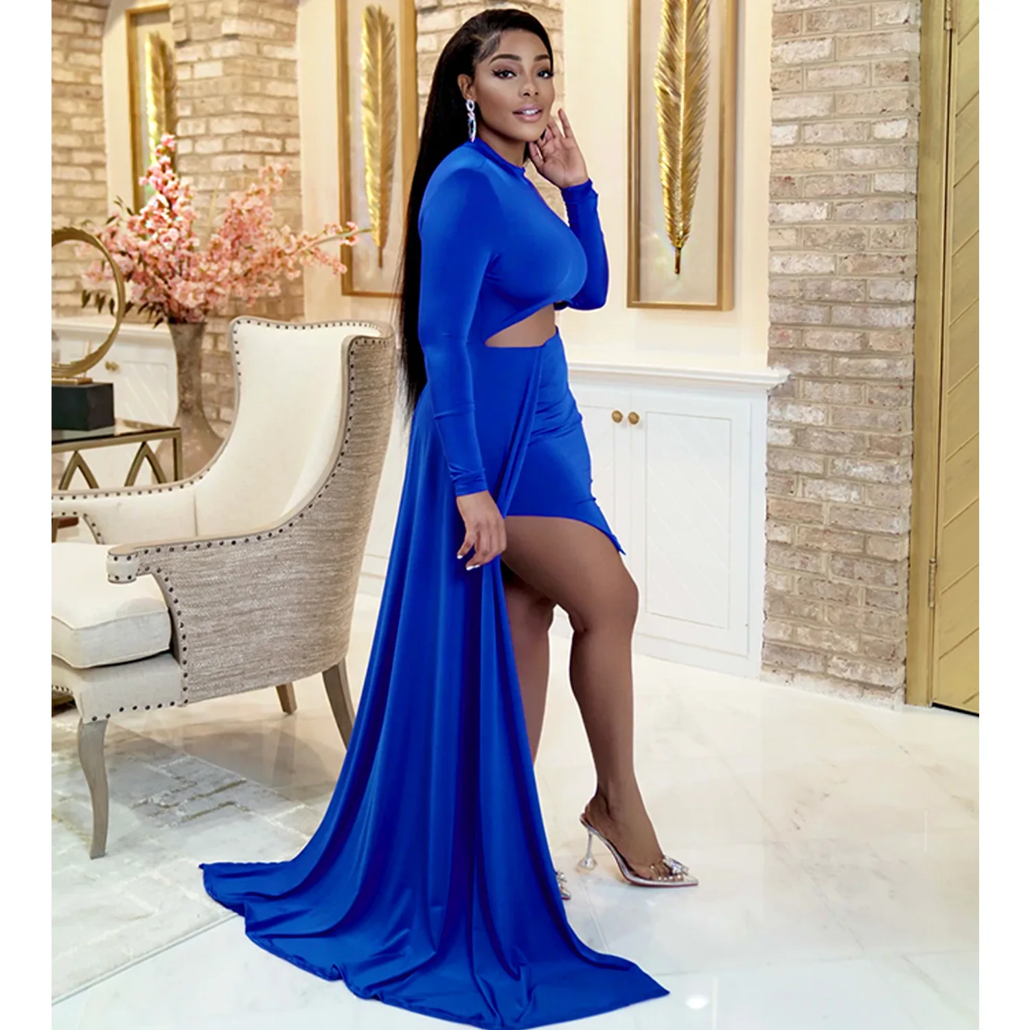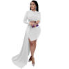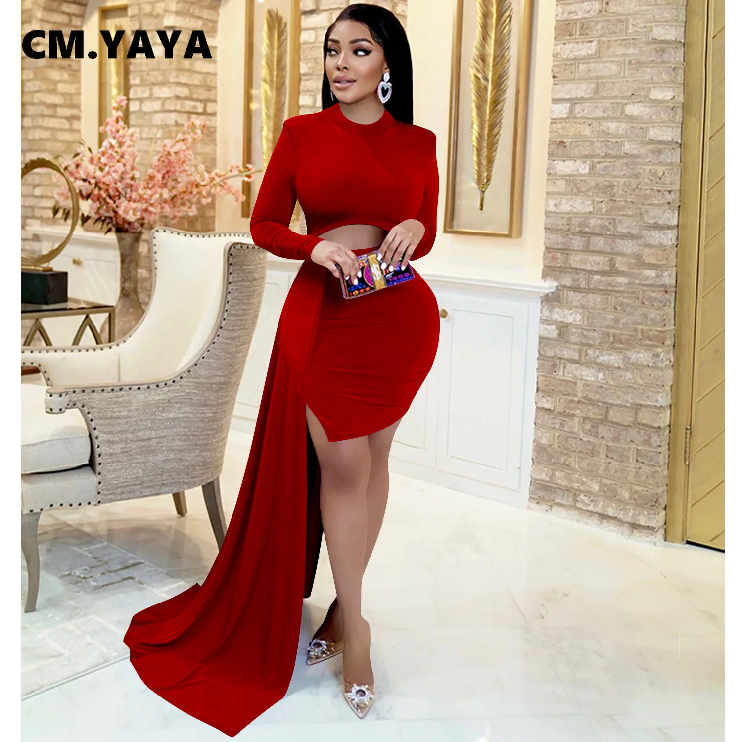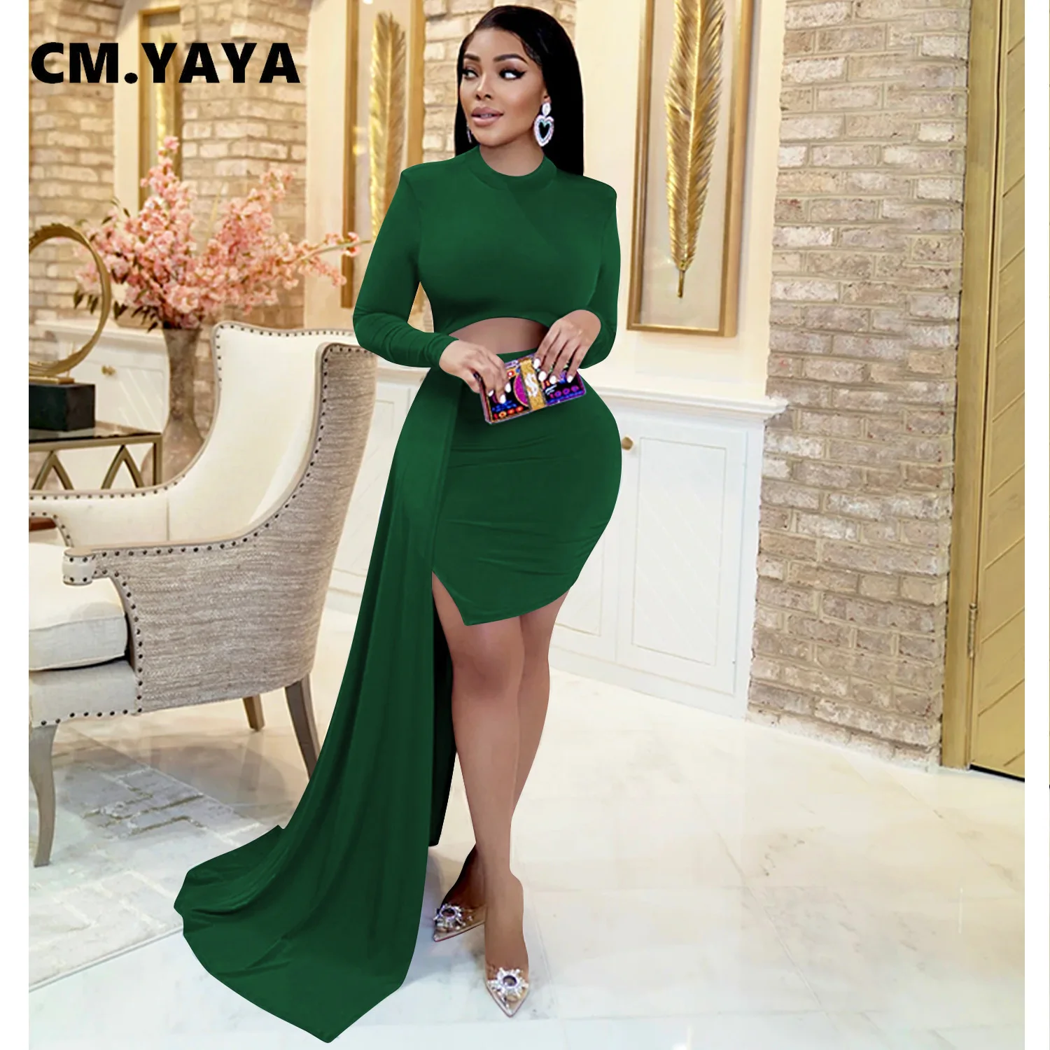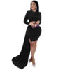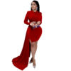 CM.YAYA Women Long Sleee Tassel Splicing Cocktail Maxi Long Dress 2022 Party Sexy Prom Even Maxi Long Floor Length Dresses