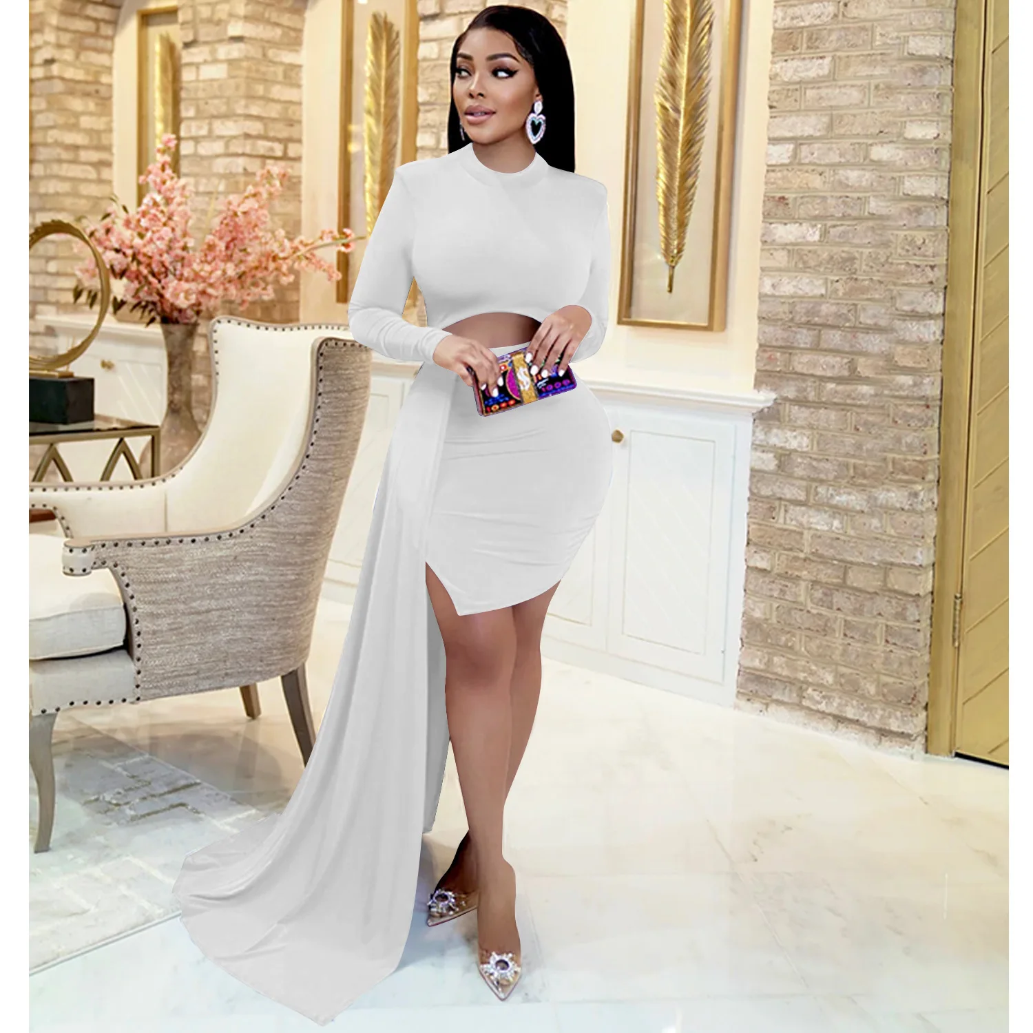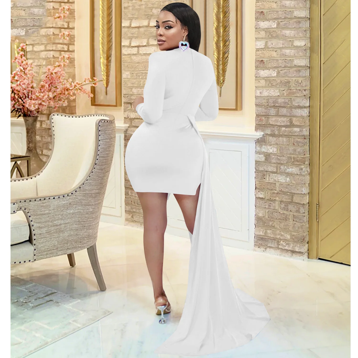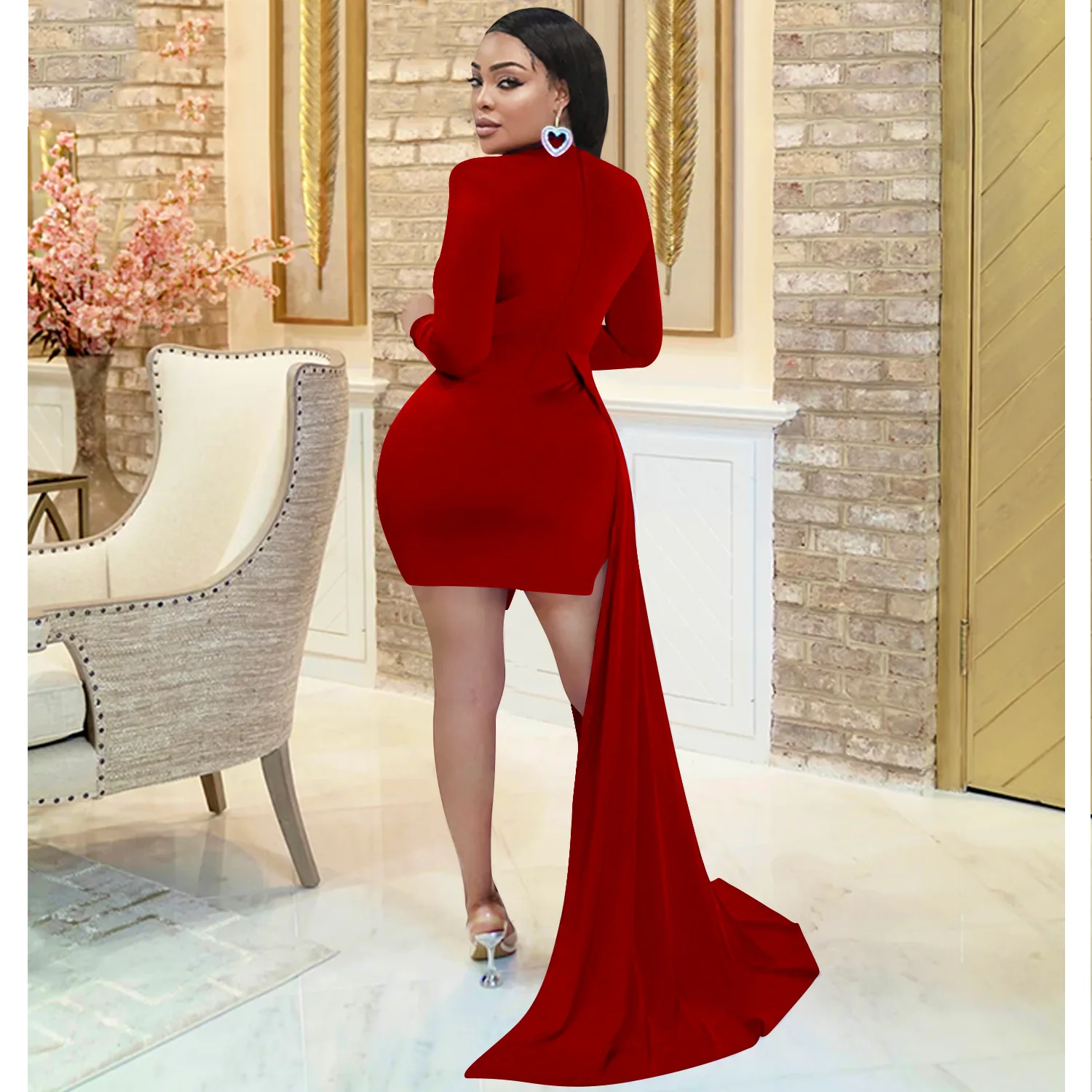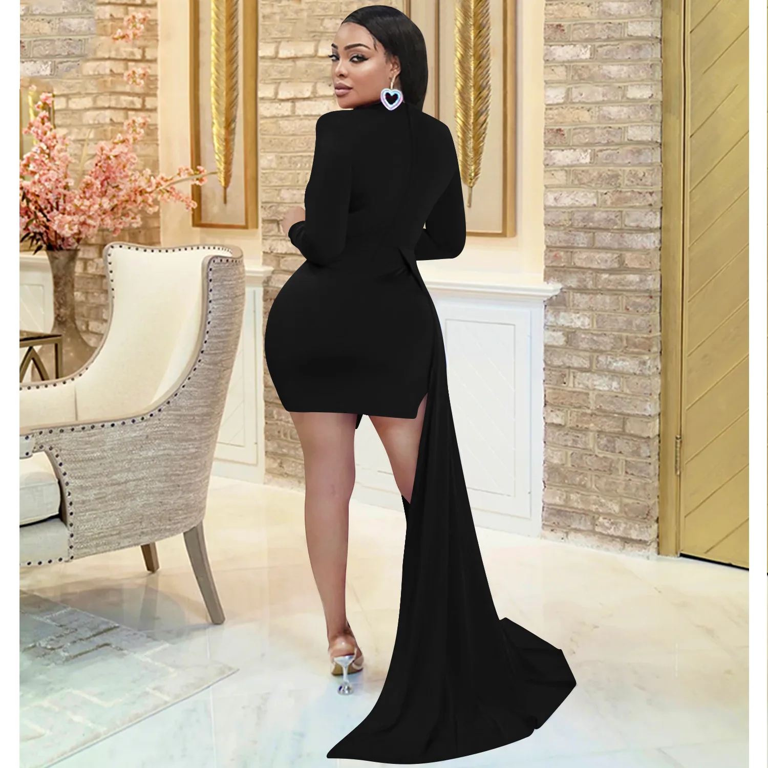 CM.YAYA Women Long Sleee Tassel Splicing Cocktail Maxi Long Dress 2022 Party Sexy Prom Even Maxi Long Floor Length Dresses