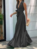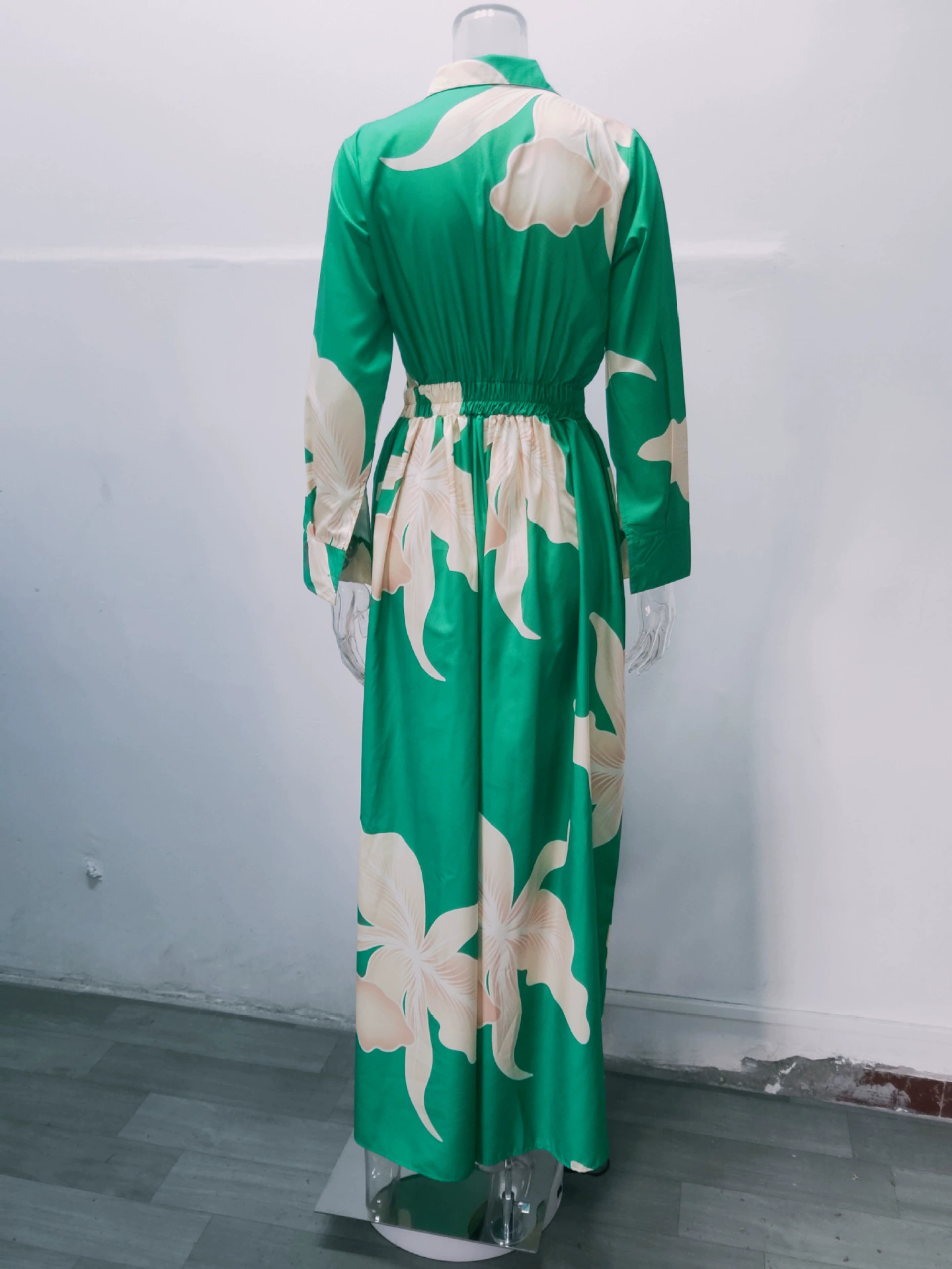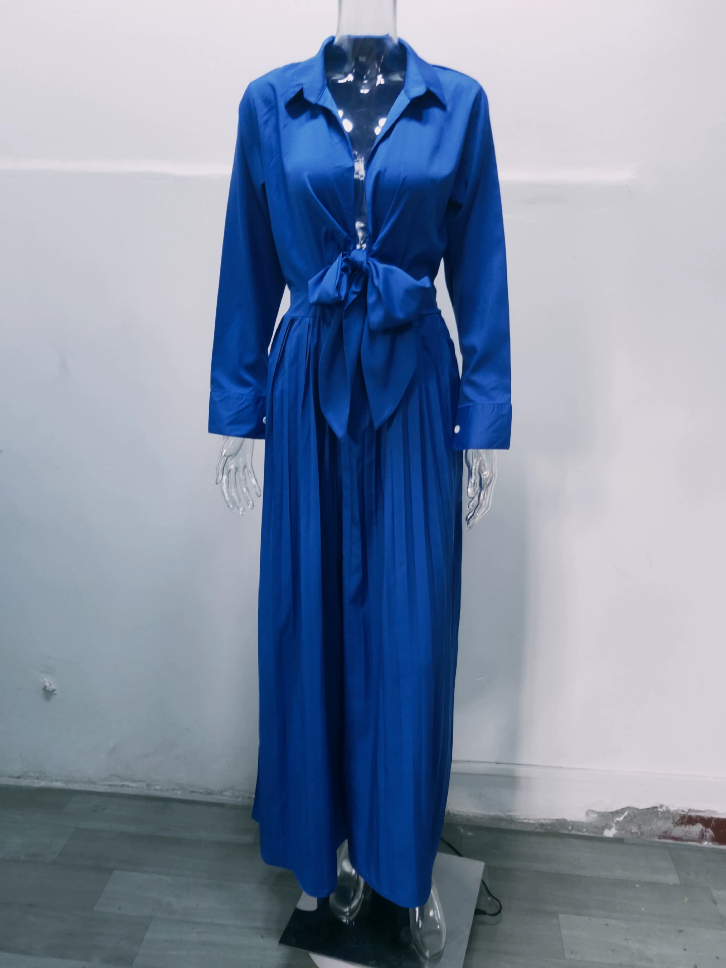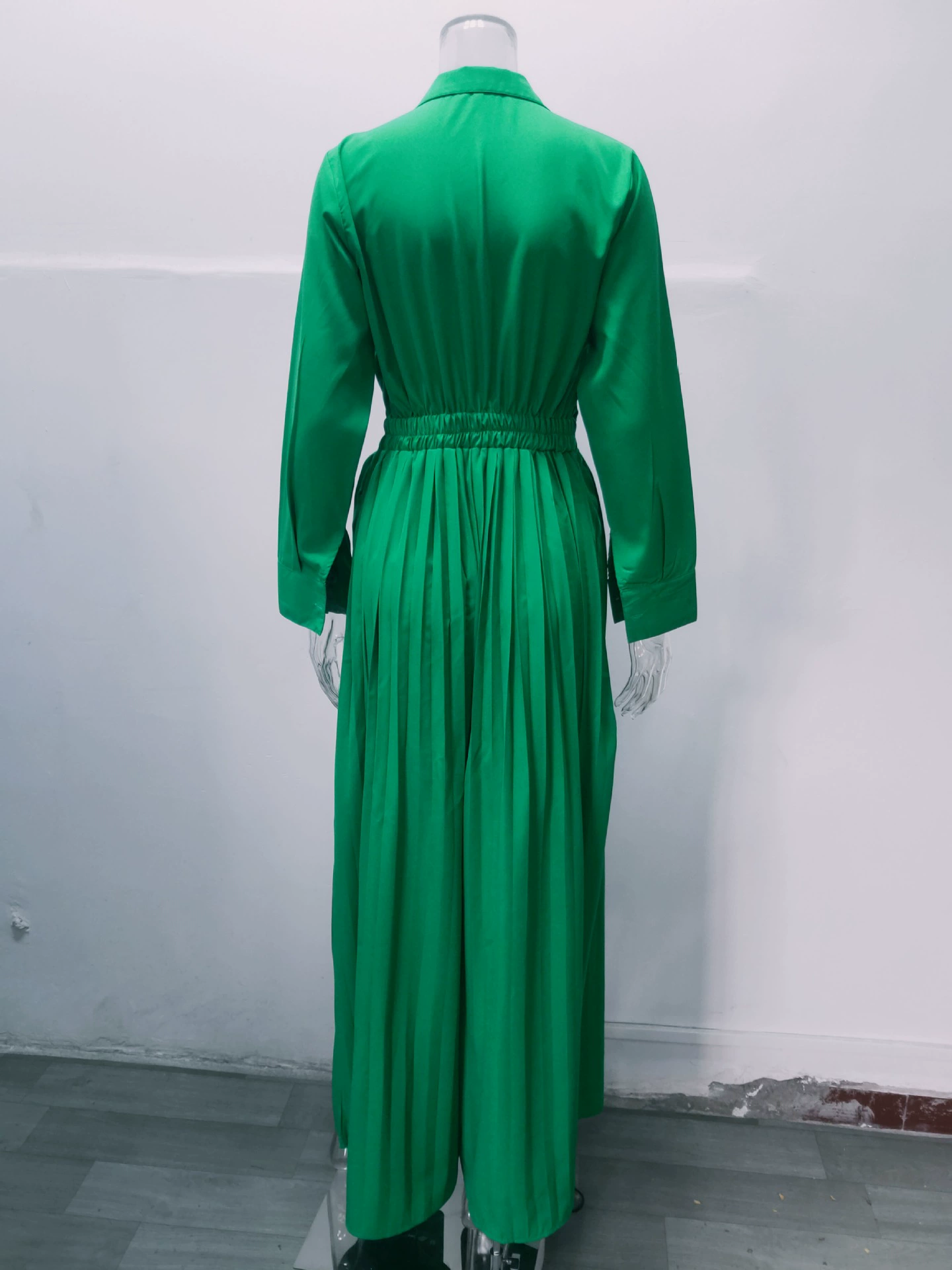 CM.YAYA Women Long Sleeve Butterfly High Waist Lapel Collar Pleated Floor Length Skirt Loose Jumpsuit Fashion Chic Playsuit