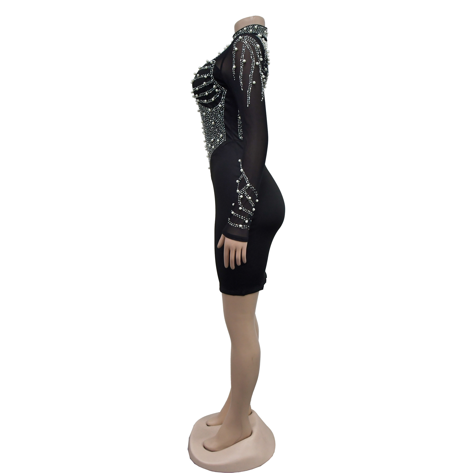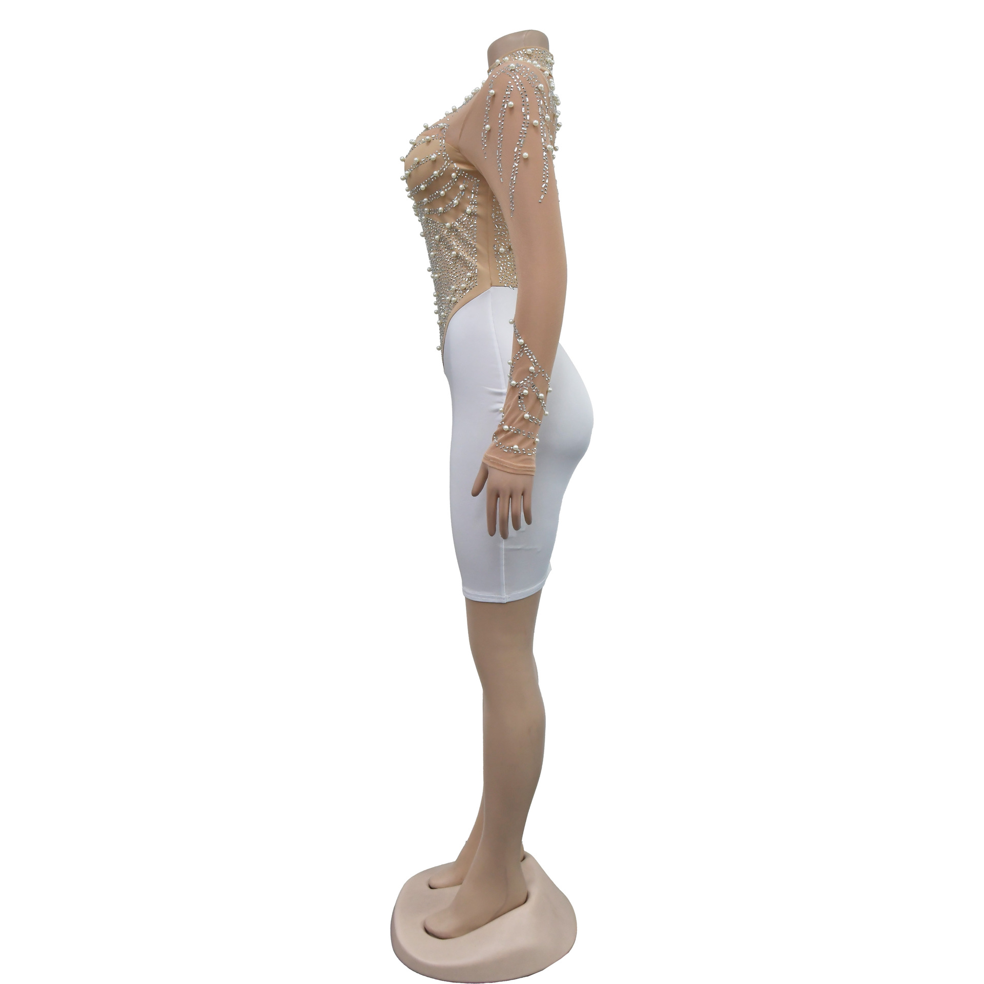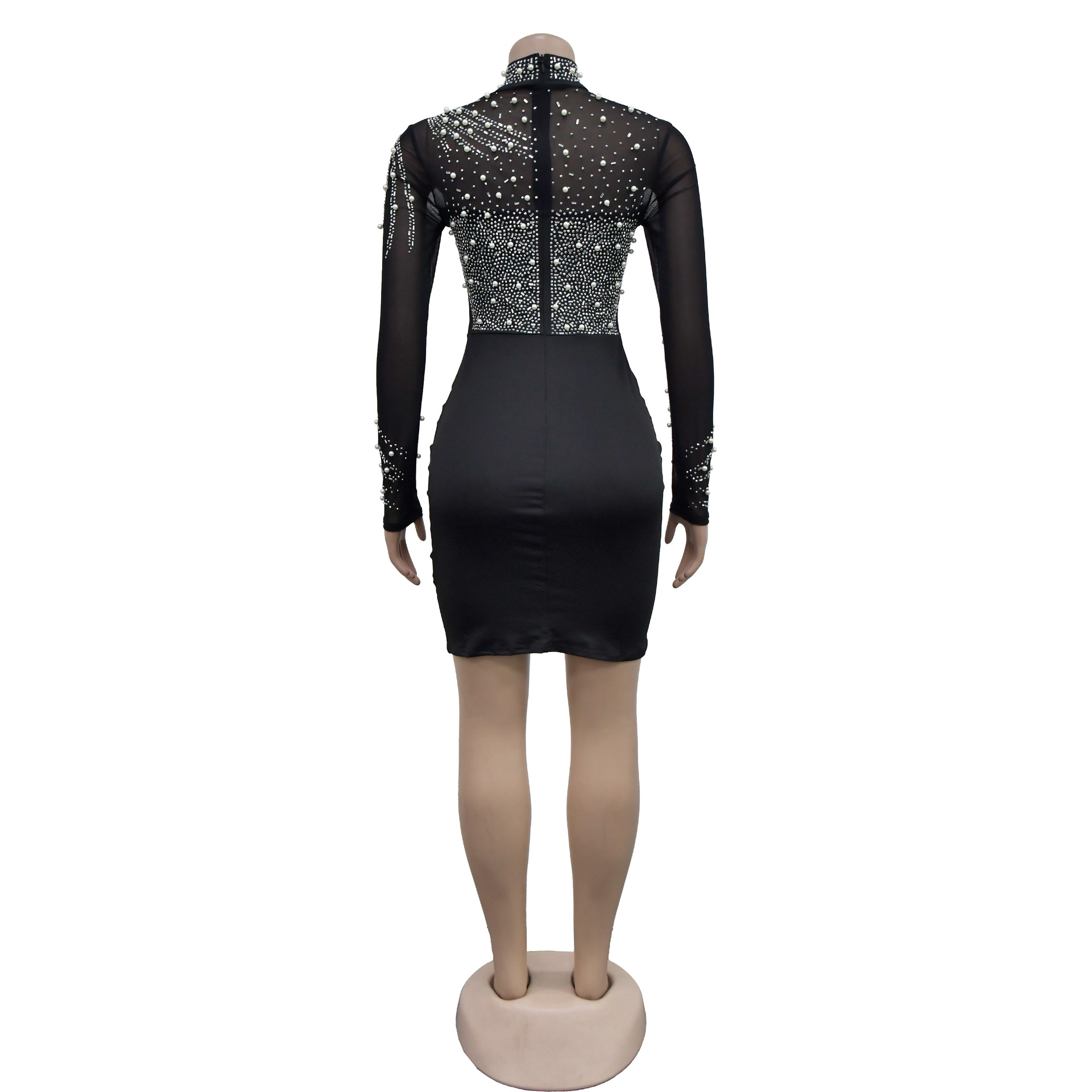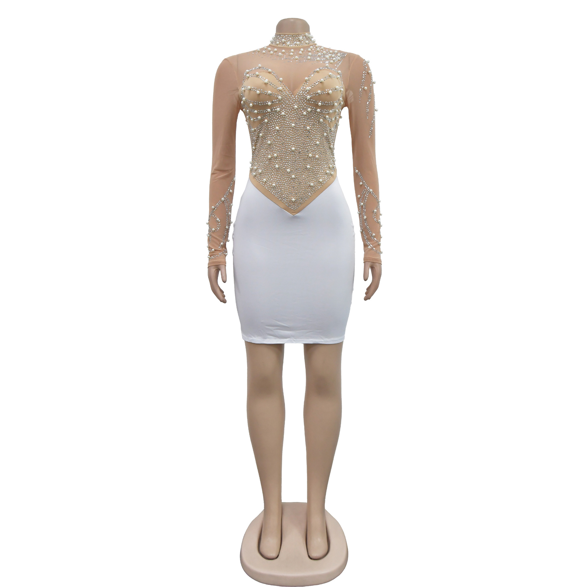 CM.YAYA Women Long Sleeve Mesh Diamonds Hot Rhinestones Mini Dress 2024 Summer Evenning Sexy Party Night Club Dresses Vestidos
