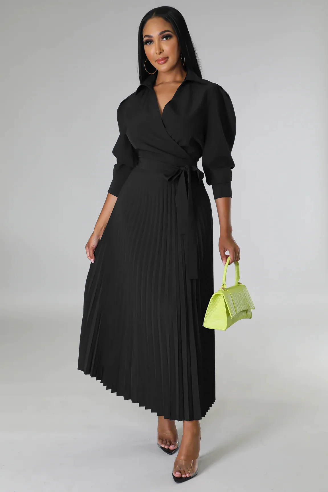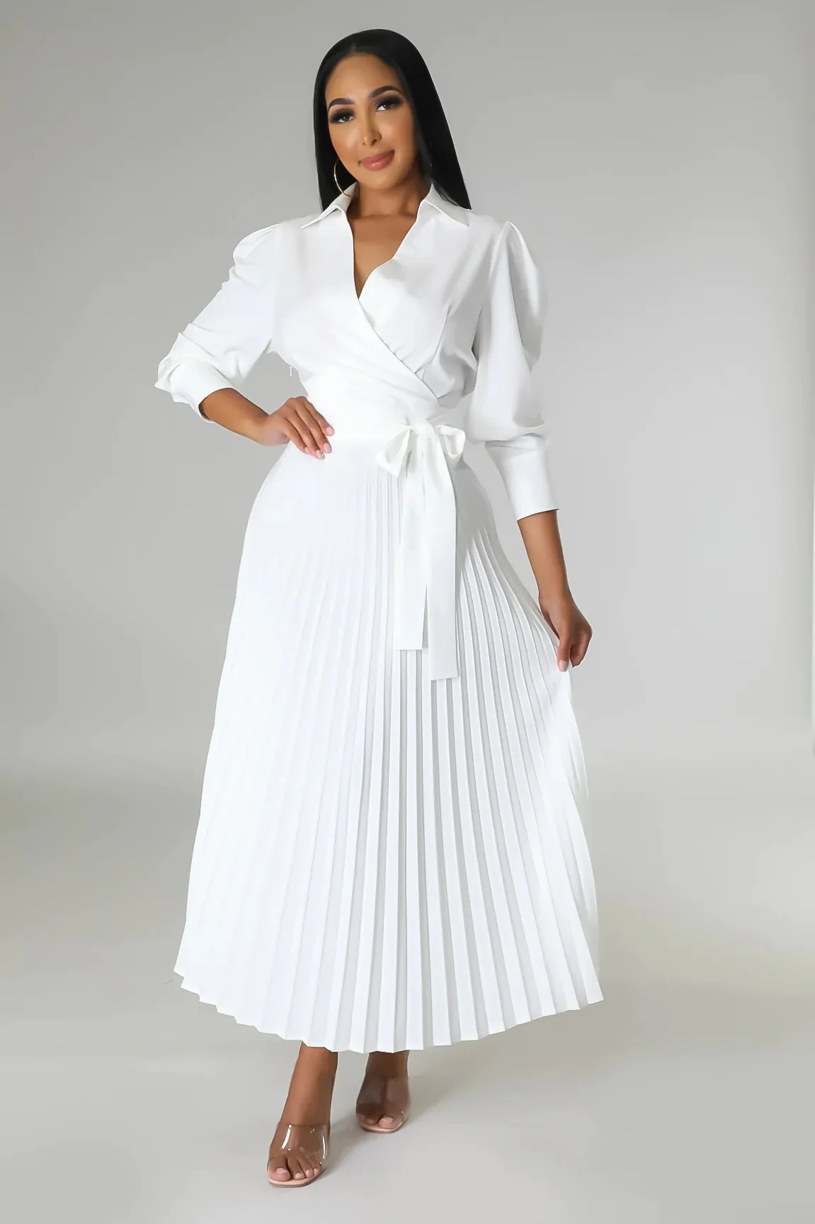 CM.YAYA Women Long Sleeve Turn-down Tie Up Side Wrap Pleated Maxi Shirt Dress 2023 OL Work Vestidos Party Sexy Evening Dresses