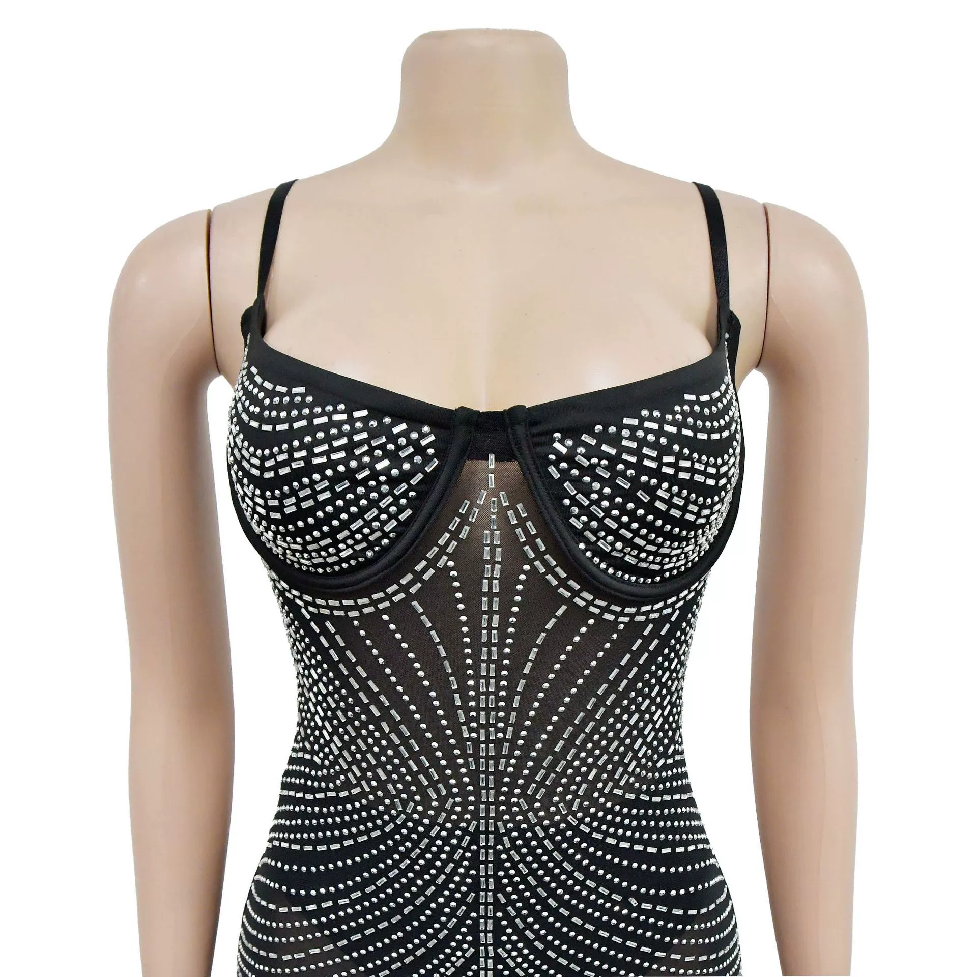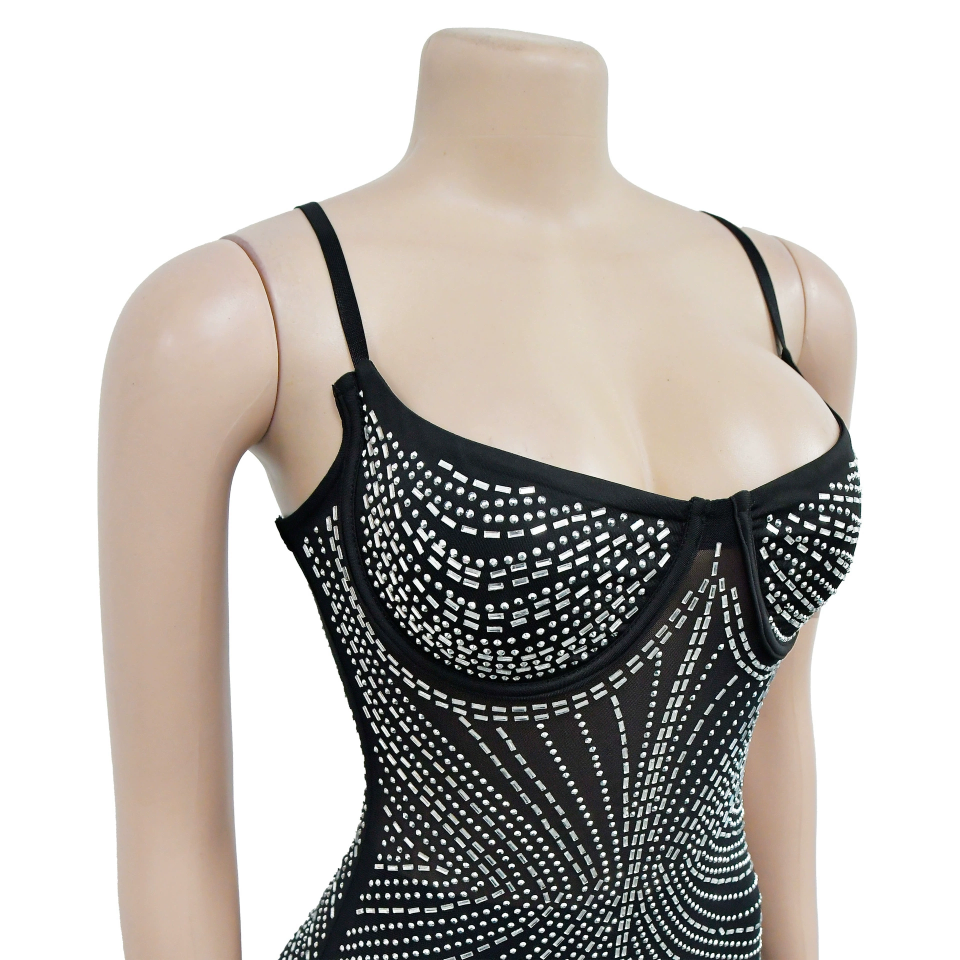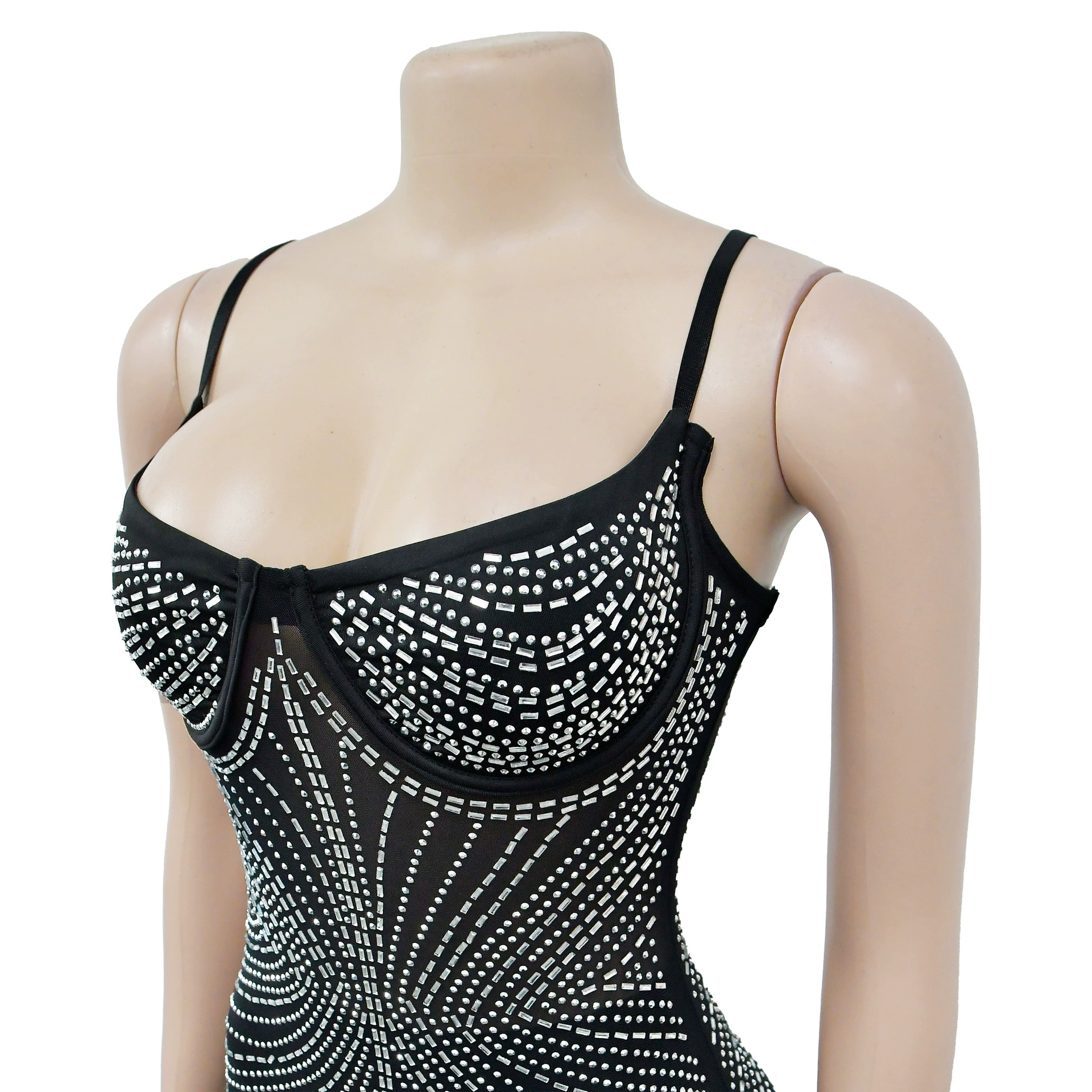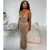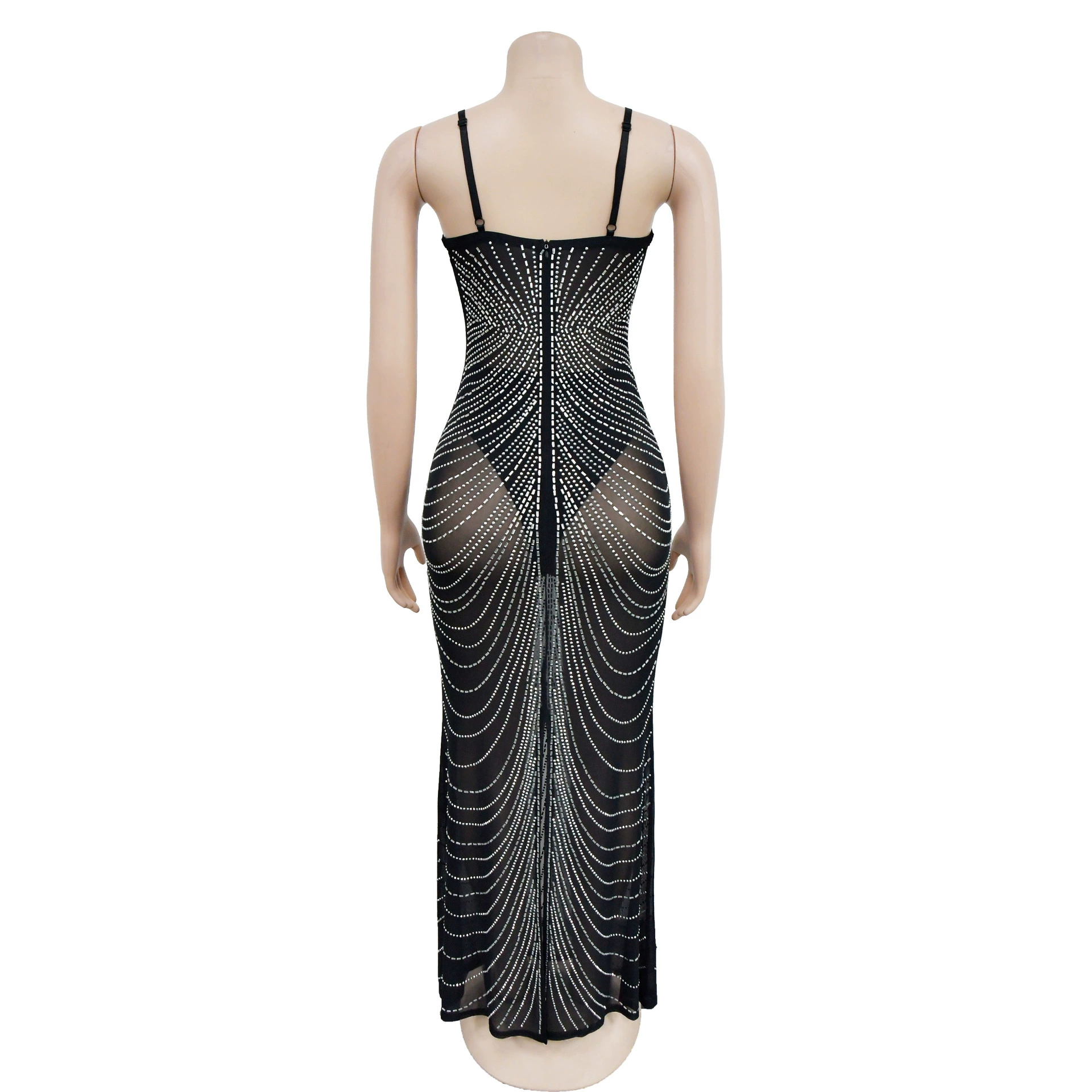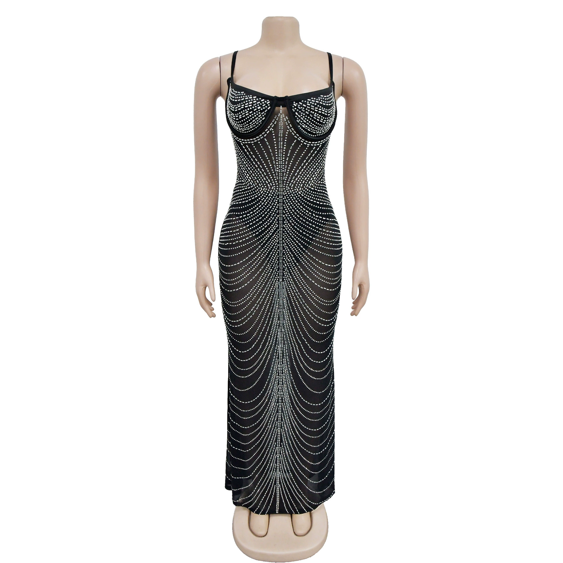 CM.YAYA Women Mesh See Though Diamonds Hot Drill Sleeveless Strap Bodycon Maxi Dress 2023 Sexy Party Evening Vestidos Dresses