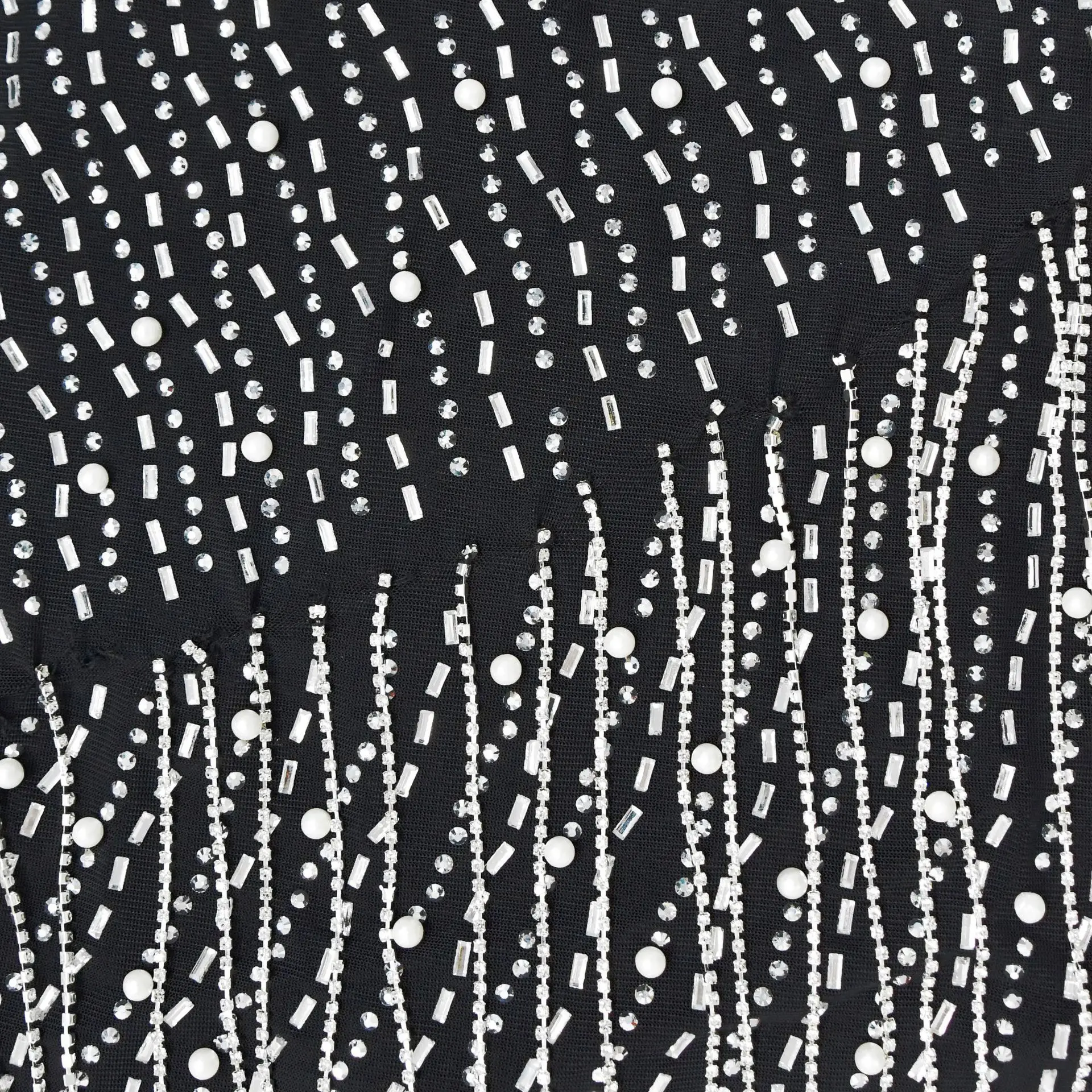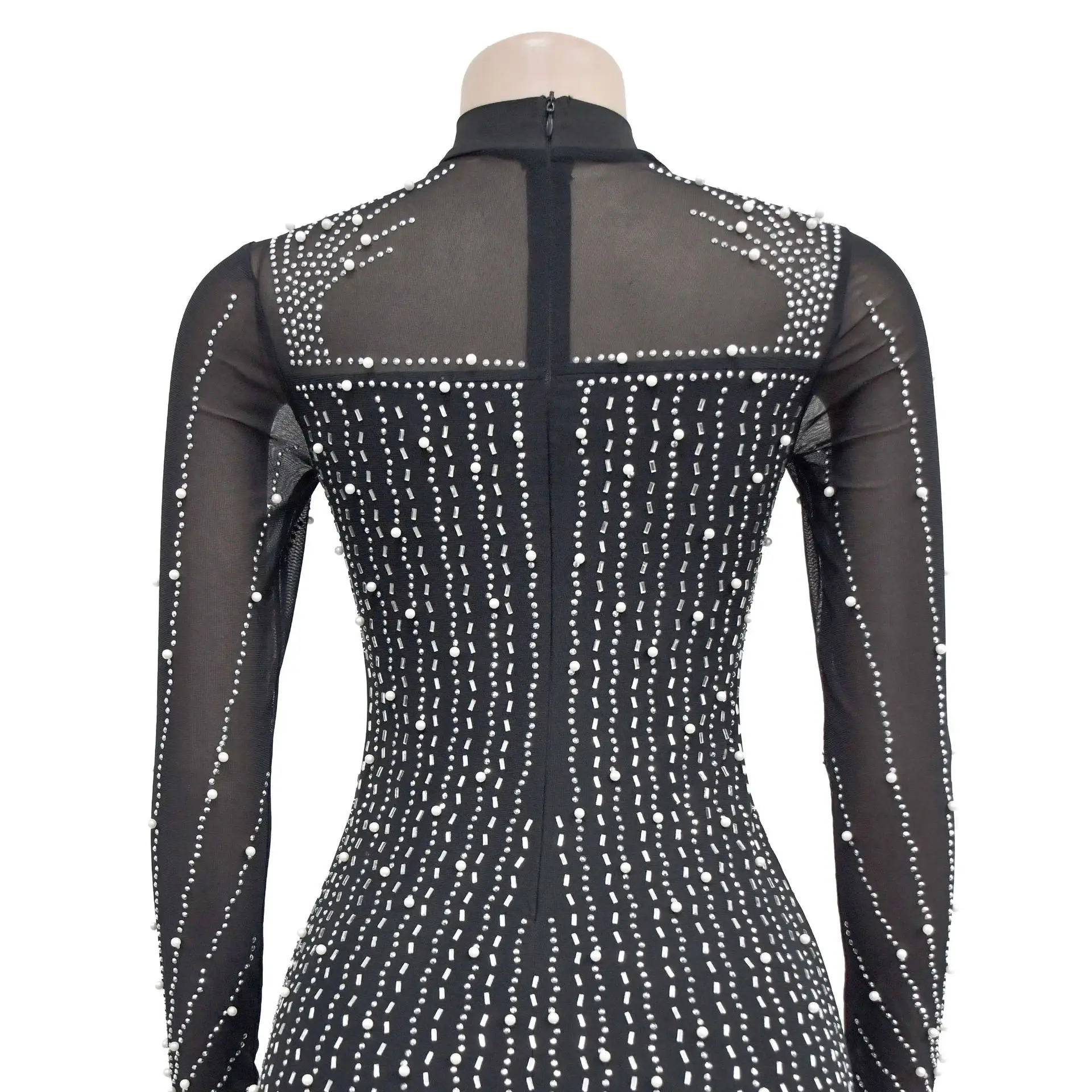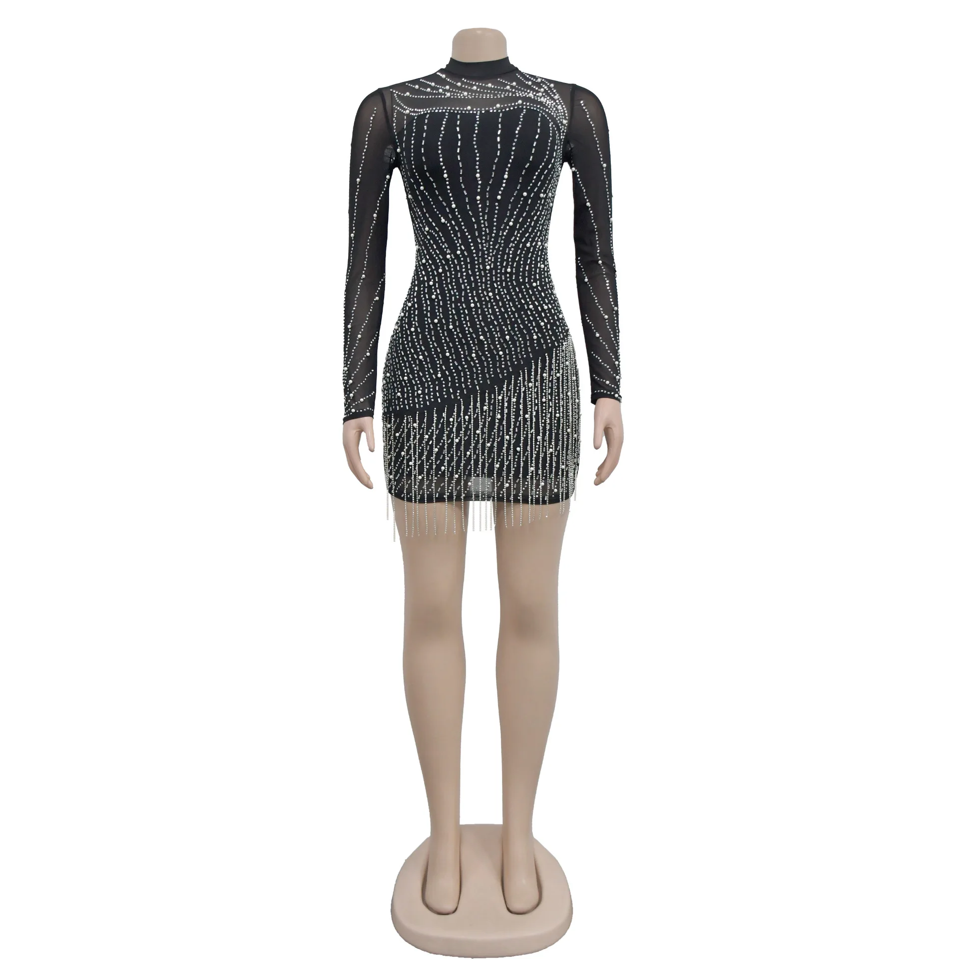 CM.YAYA Women Mesh See Though Diamonds Hot Rhinestones Pearl Tassel Bodycon Midi Dress 2023 Vestidos Sexy Party Evening Dresses