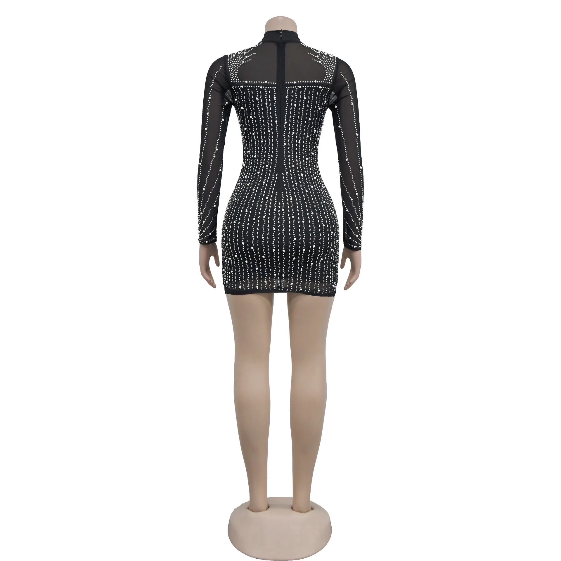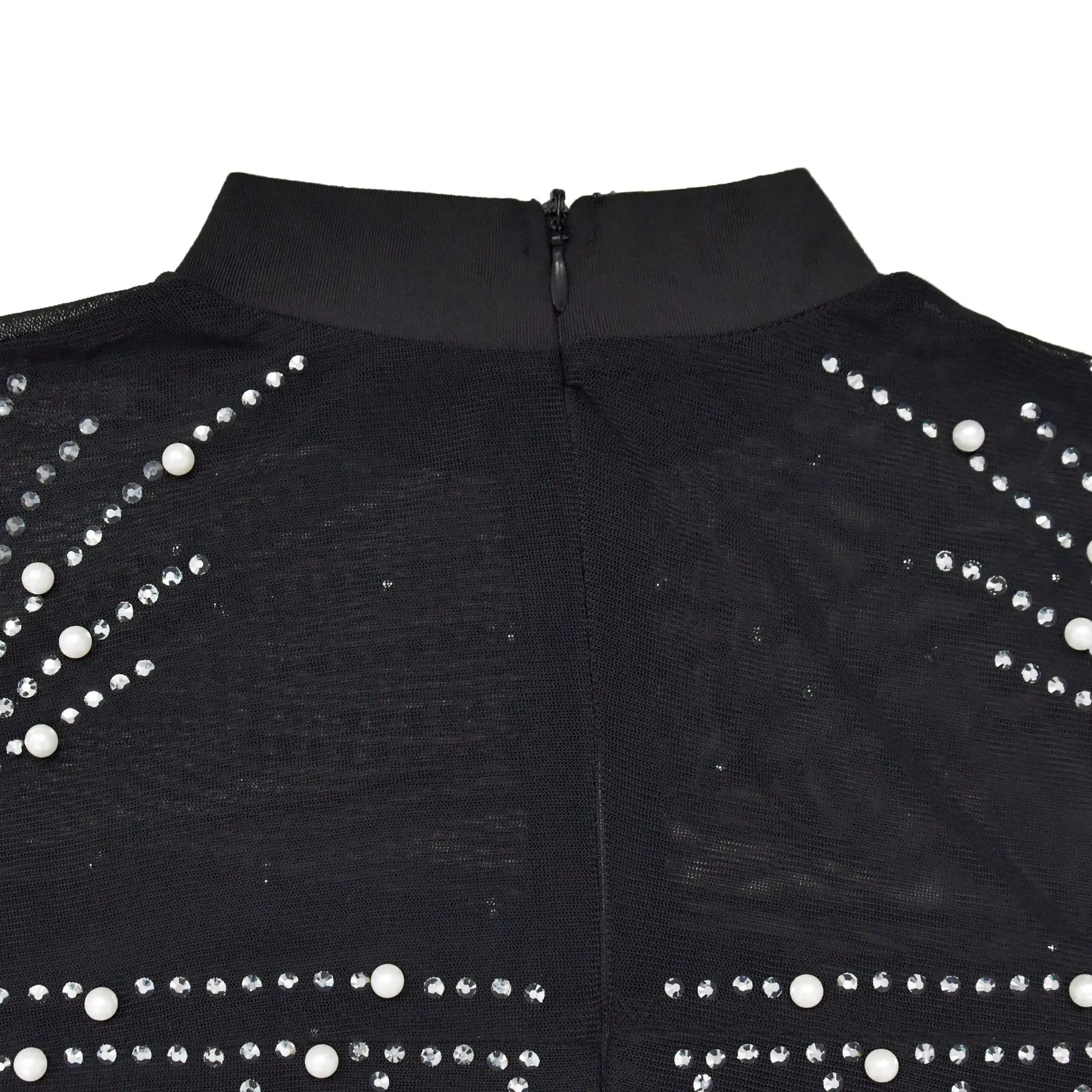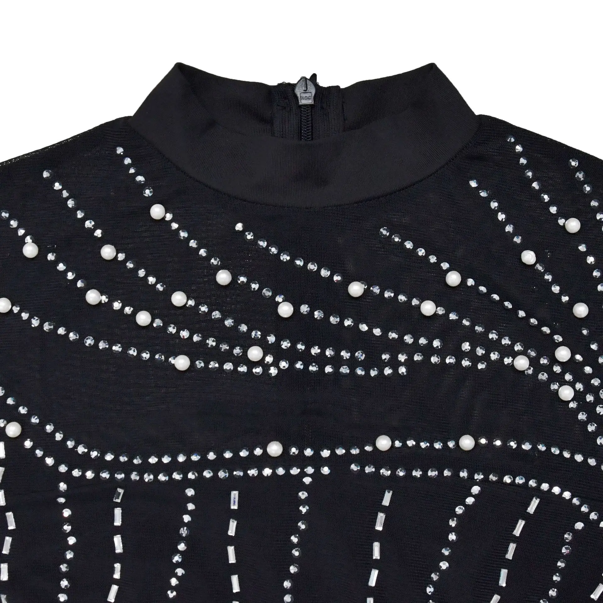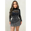 CM.YAYA Women Mesh See Though Diamonds Hot Rhinestones Pearl Tassel Bodycon Midi Dress 2023 Vestidos Sexy Party Evening Dresses