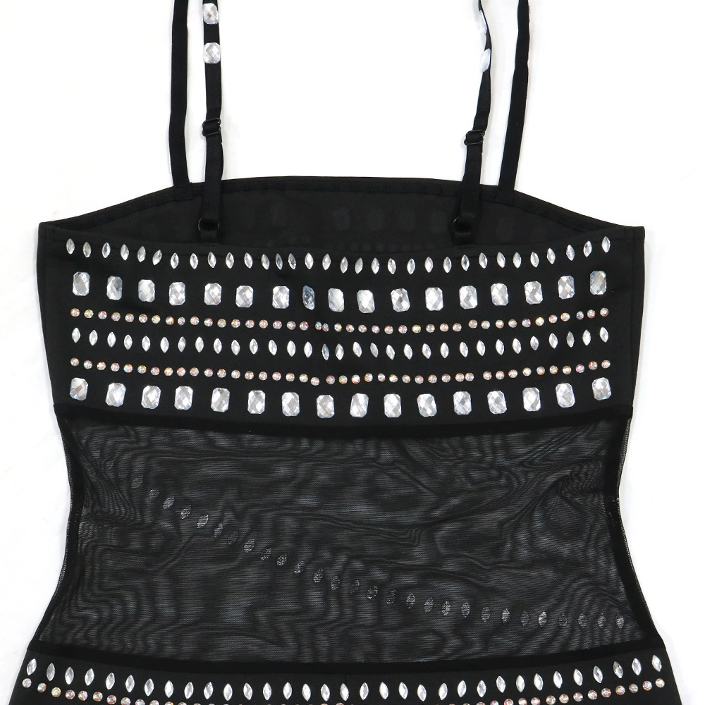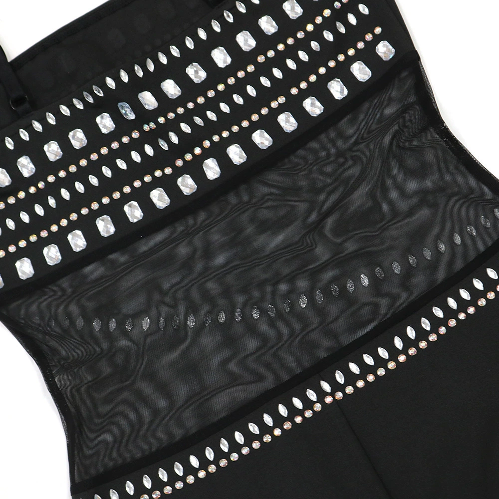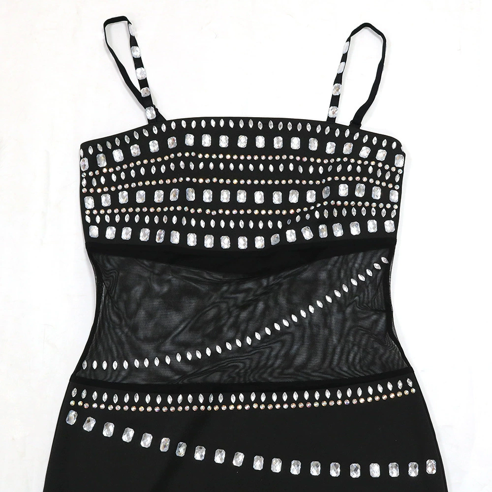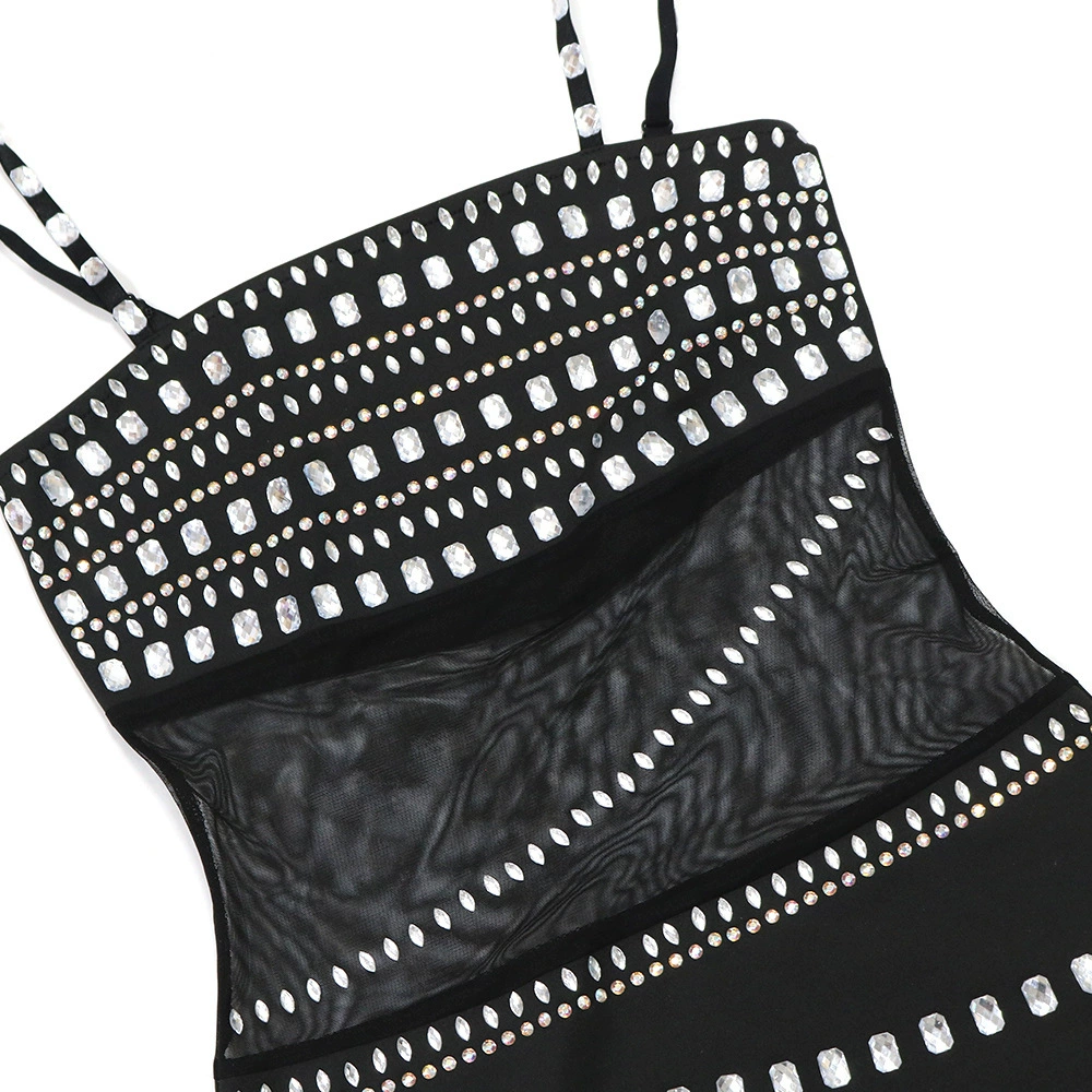CM.YAYA Women Mesh See Though Diamonds Hot Rhinestones Strap Bodycon Midi Maxi Dress 2024 Evening Party Club Party Long Dresses