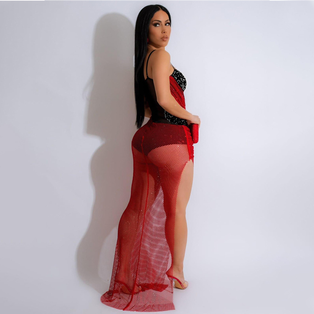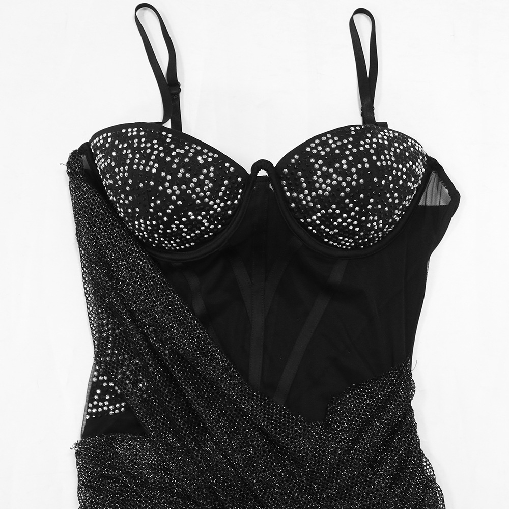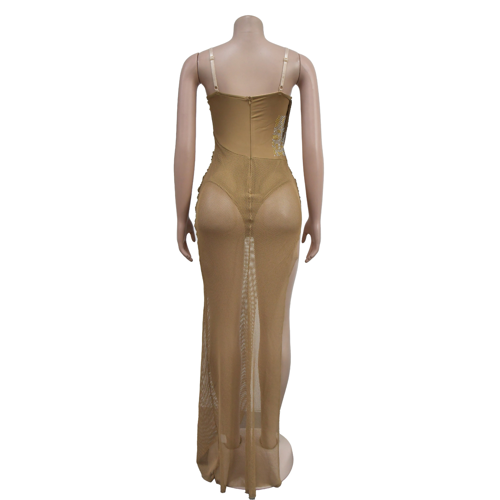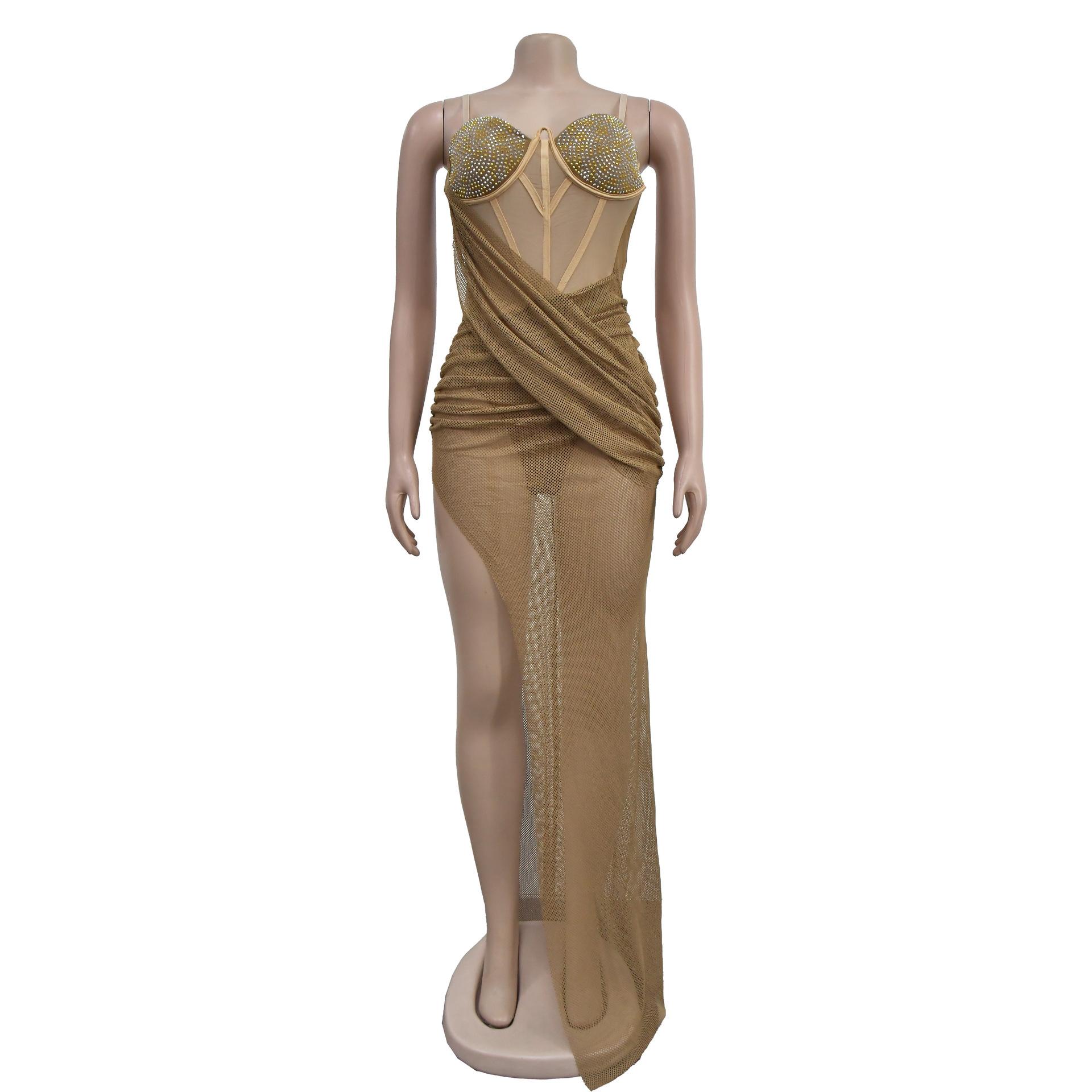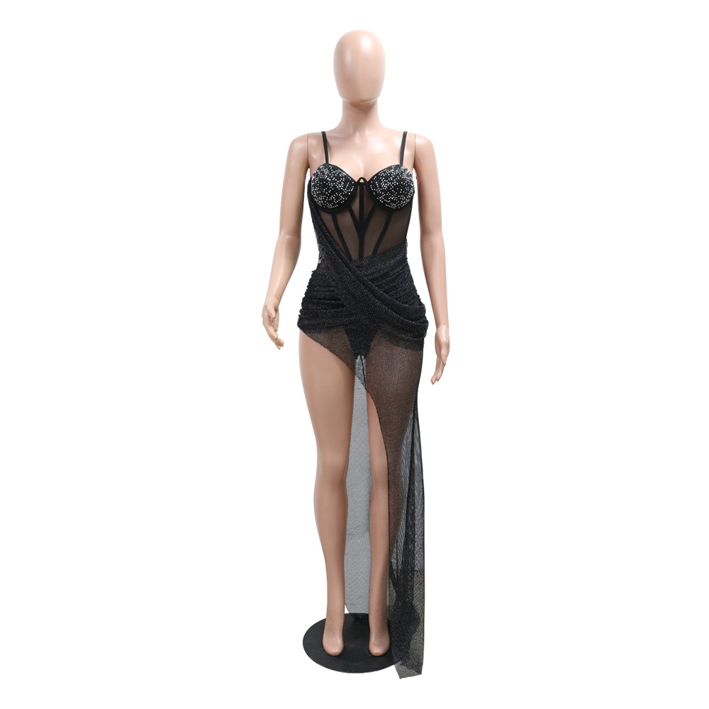 CM.YAYA Women Mesh Strapless Perspective Rhinestone Strap Maxi Long Dress 2024 Vestidos Sexy Party Evenning Birthday Dresses