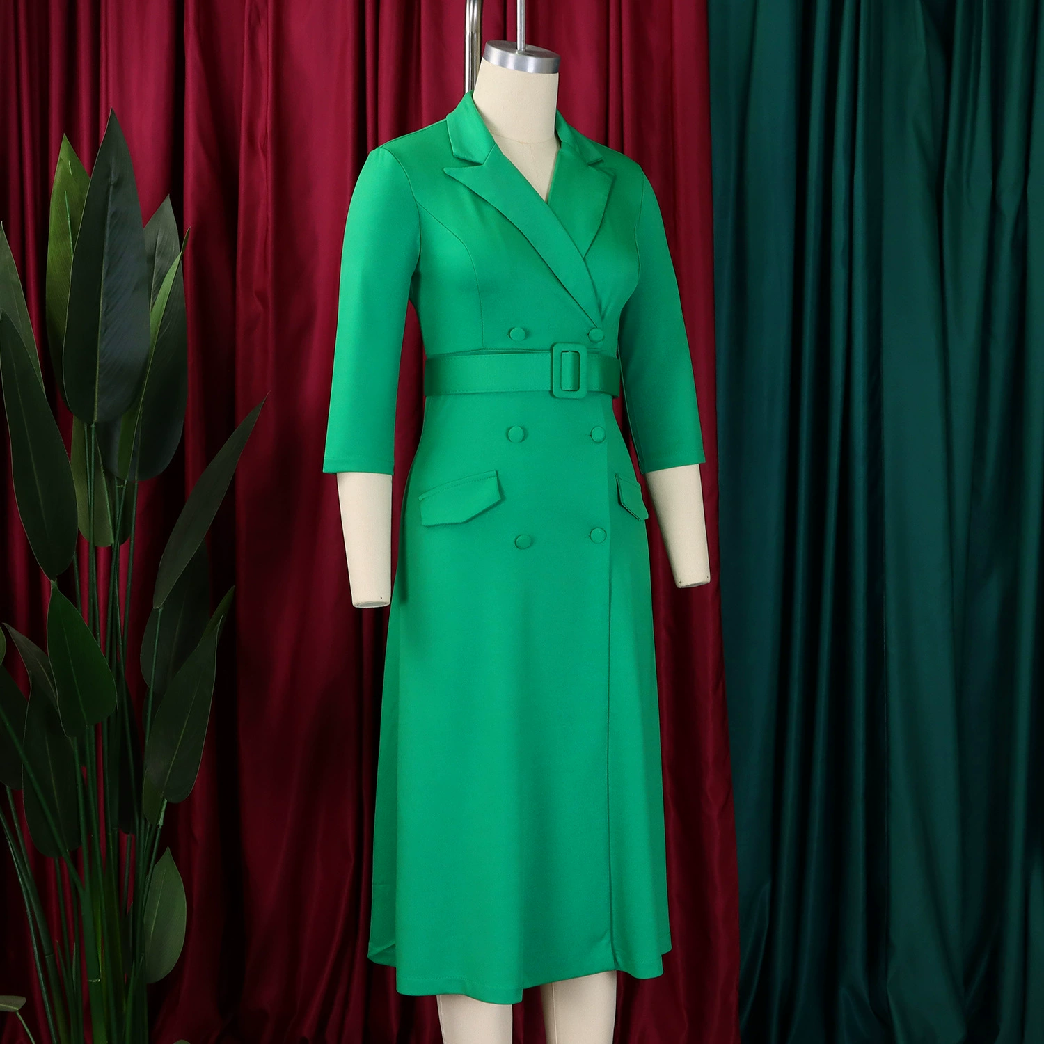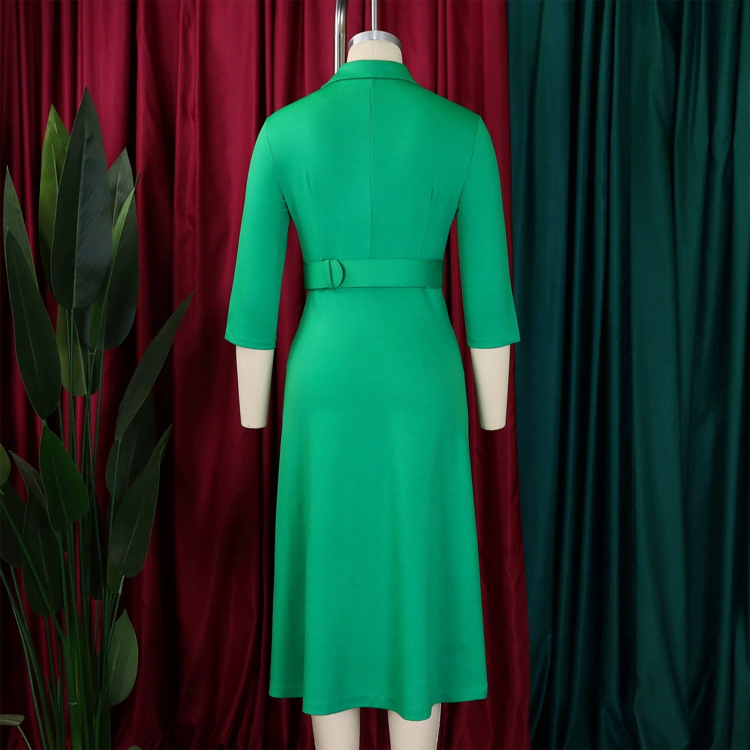 CM.YAYA Women Notched Neck Elegant Full Sleeve Midi Dress 2024 Fall OL Work Belt Streetwear Africa Party Club Dresses Vestidos