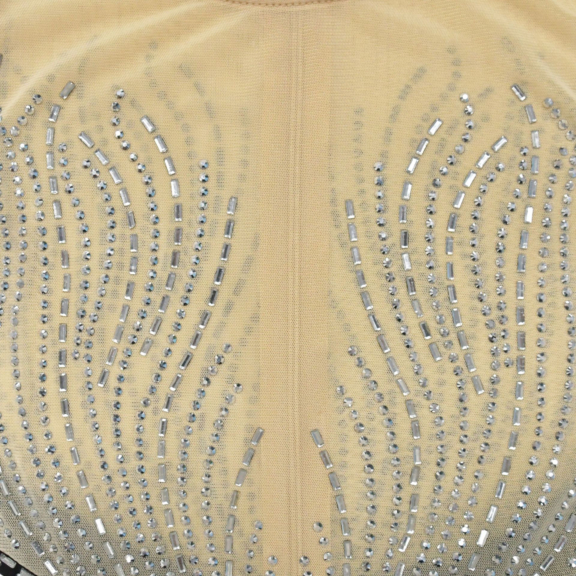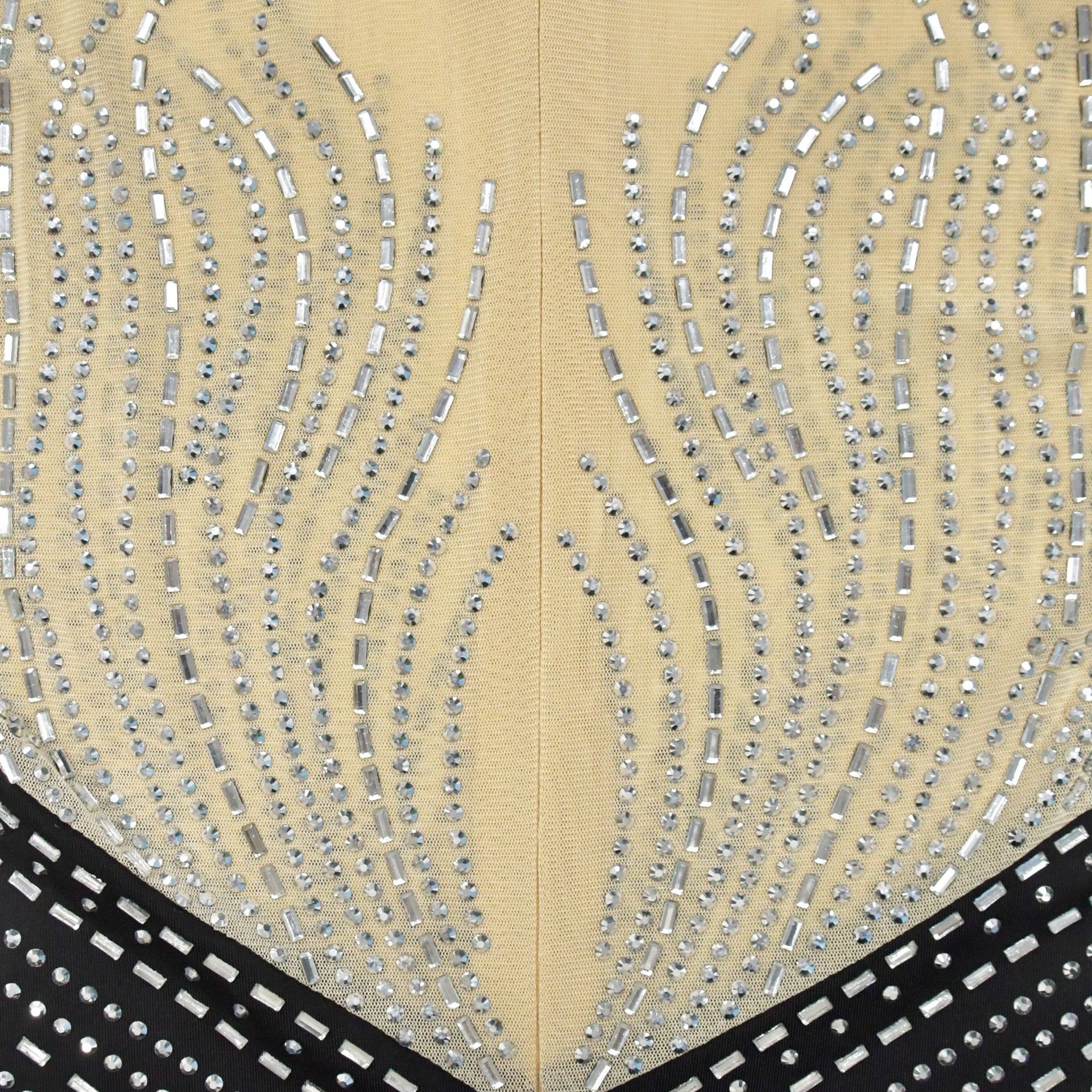 CM.YAYA Women O-neck Sleeveless Mesh Patchwork Diamonds Hot Rhinestones High Side Split Birthday Bodycon Midi Mermaid Maxi Dress
