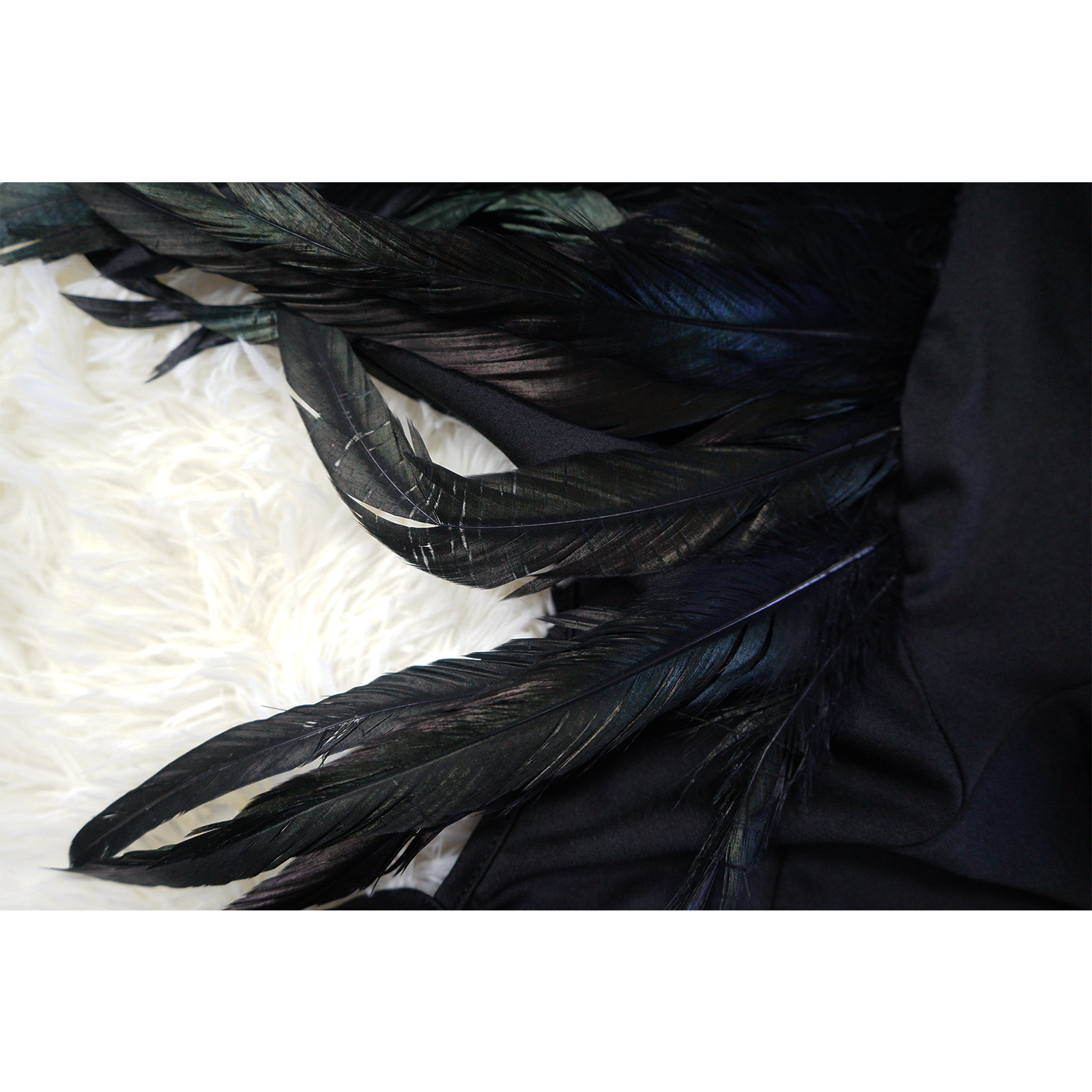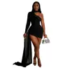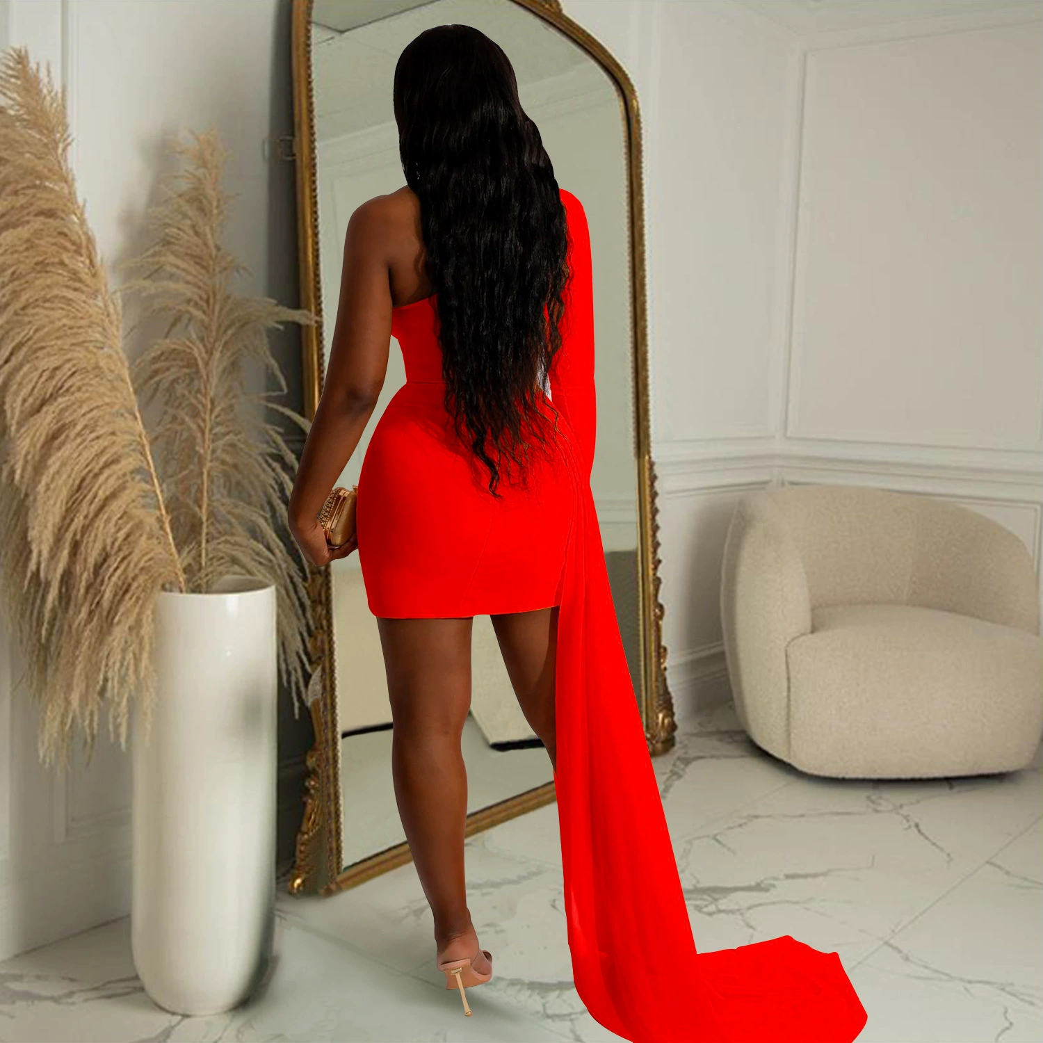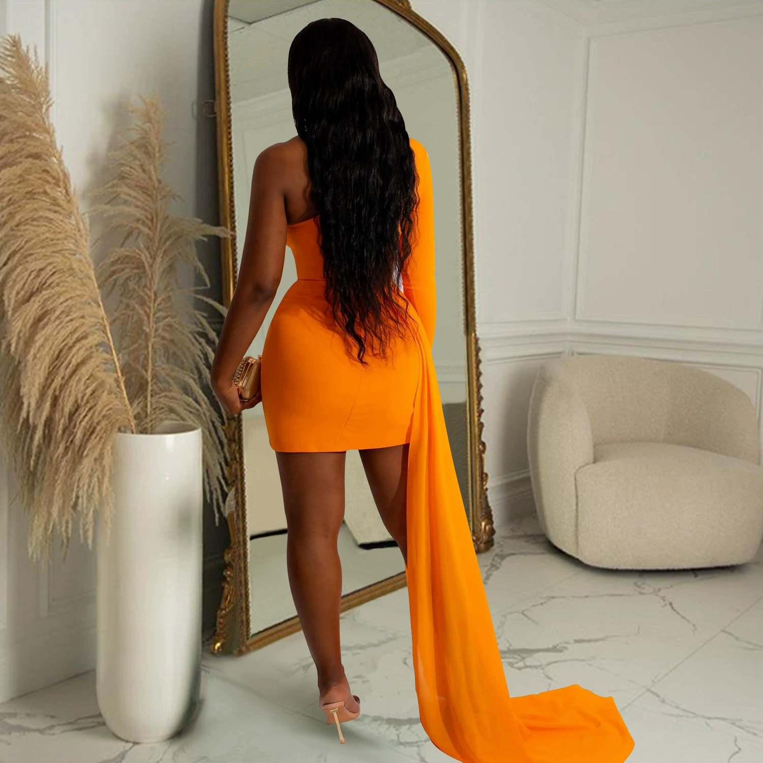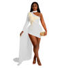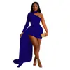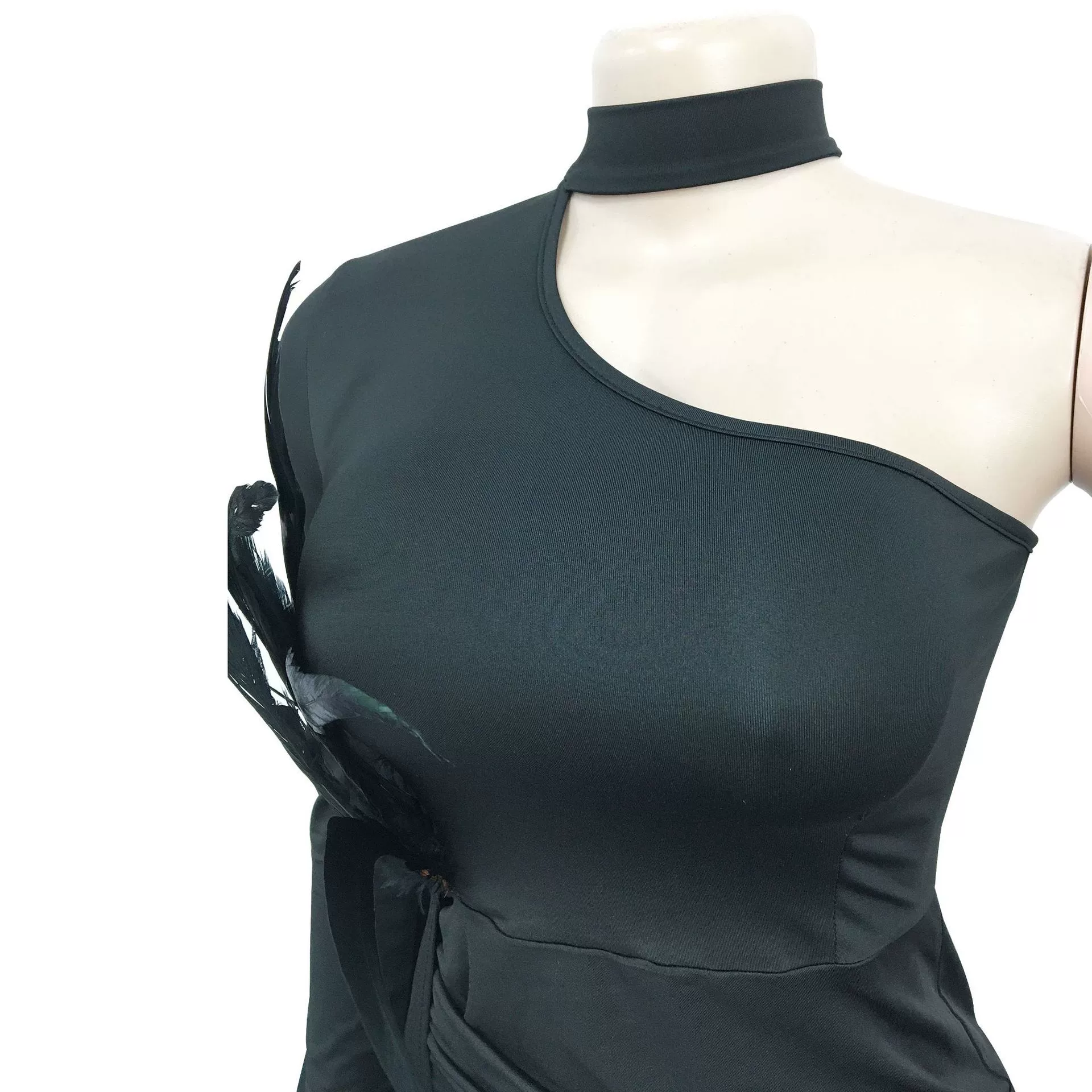 CM.YAYA Women One Long Sleeve Ruched Up Side Asymmetrical Floor Length Streamer Feather Bodycon Midi Dress Sexy Party Dresses