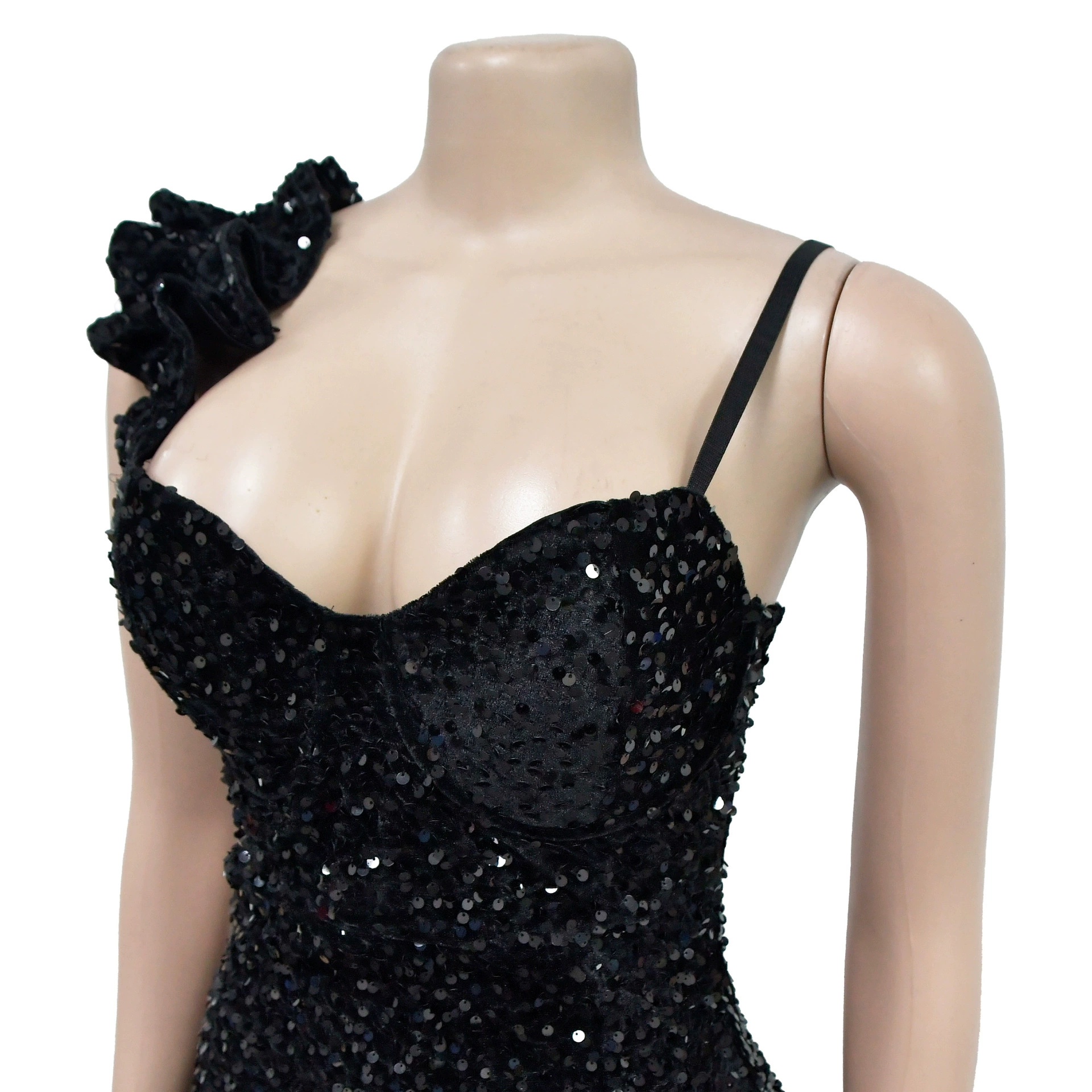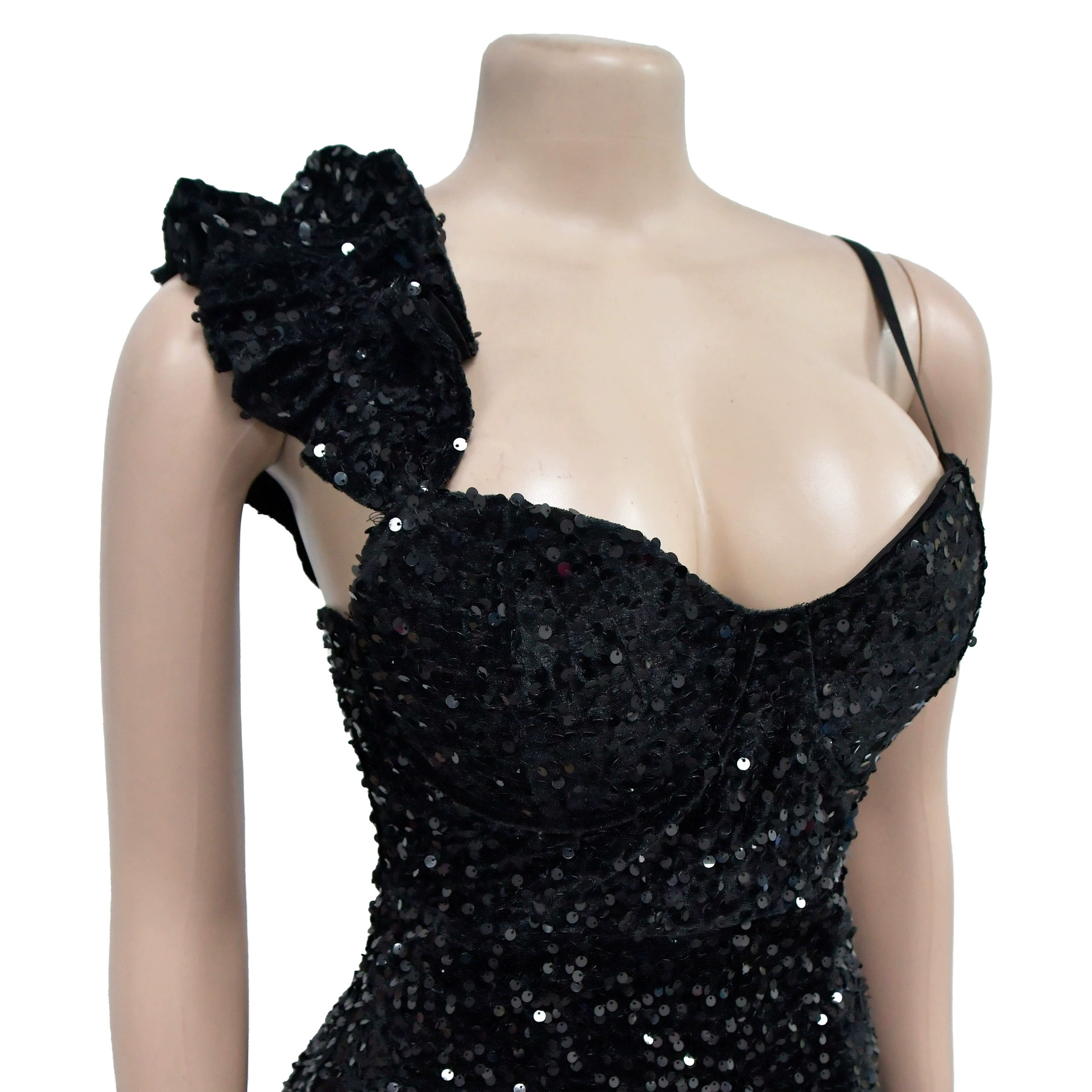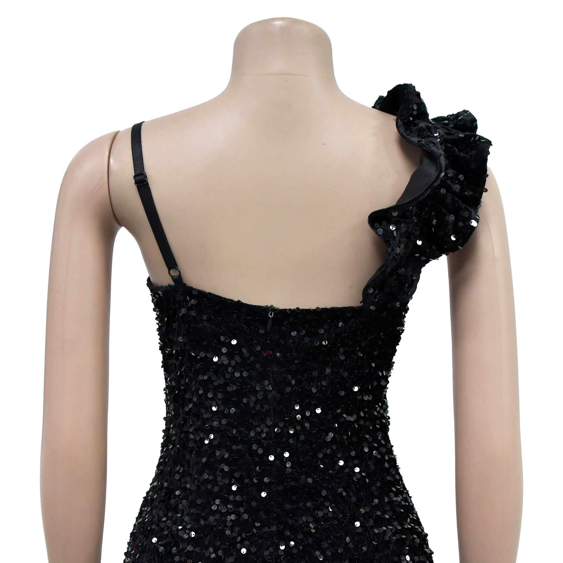 CM.YAYA Women One Shoulder Open Back Sequined High Side Split Mermaid Maxi Dress 2023 Sexy Club Evening Party Dresses Vestidos