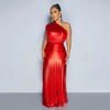 CM.YAYA Women One Shoulder Pleated Sleeveless Maxi Dress 2024 Sexy Party Evening Clubwear Long Dresses Vestidos