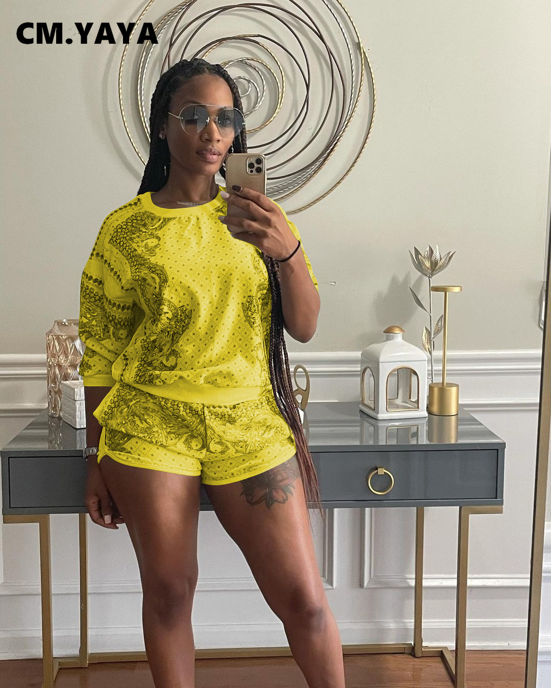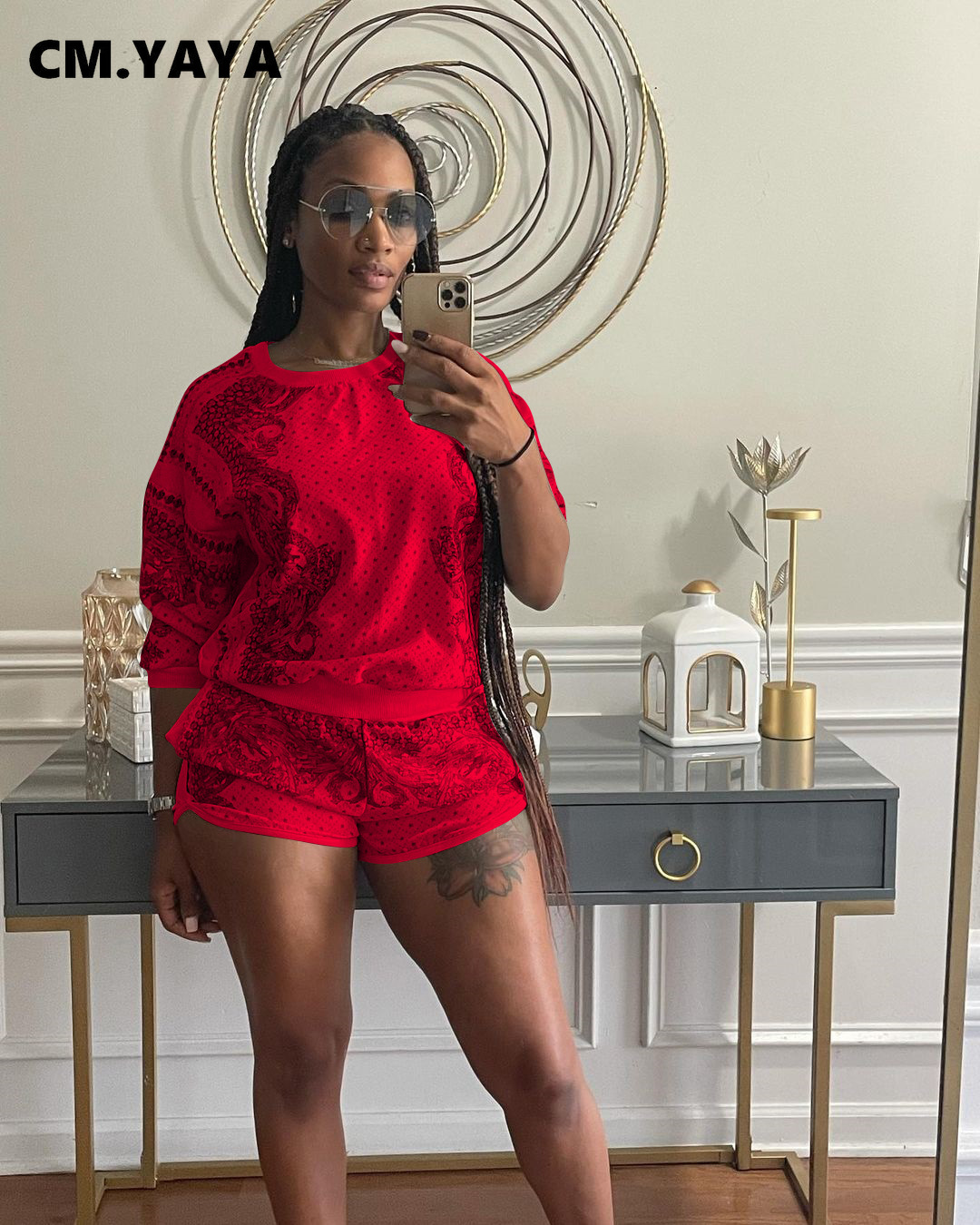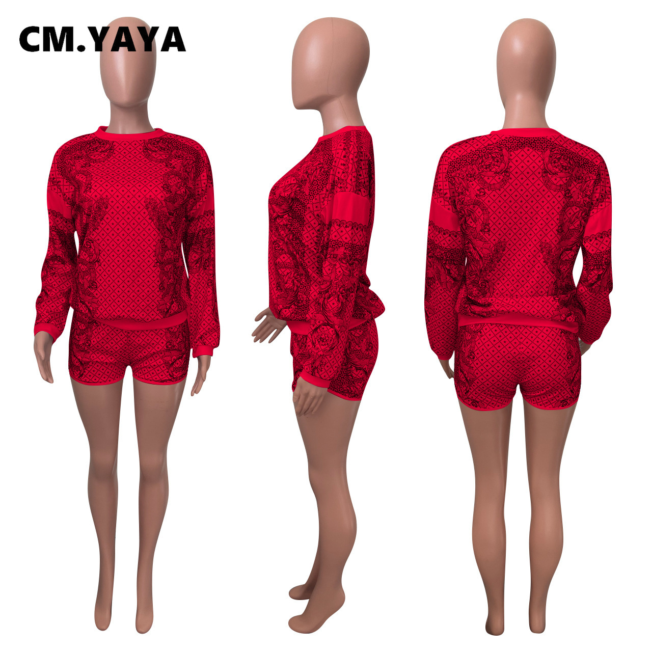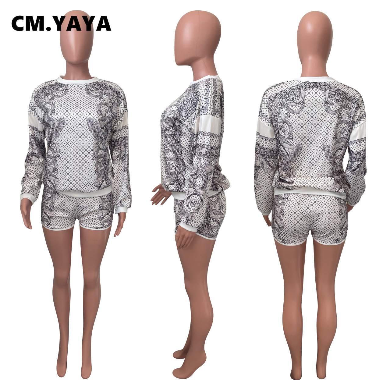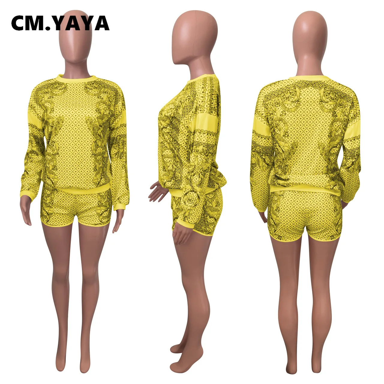 CM.YAYA Women Paisley Two 2 Piece Set Classic Sweatshirt and Shorts Active Matching Set Outfits Yoga Sport Tracksuit Sweatsuit