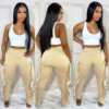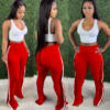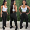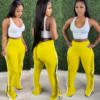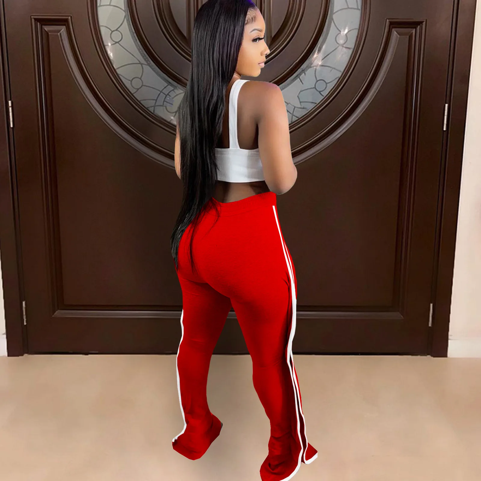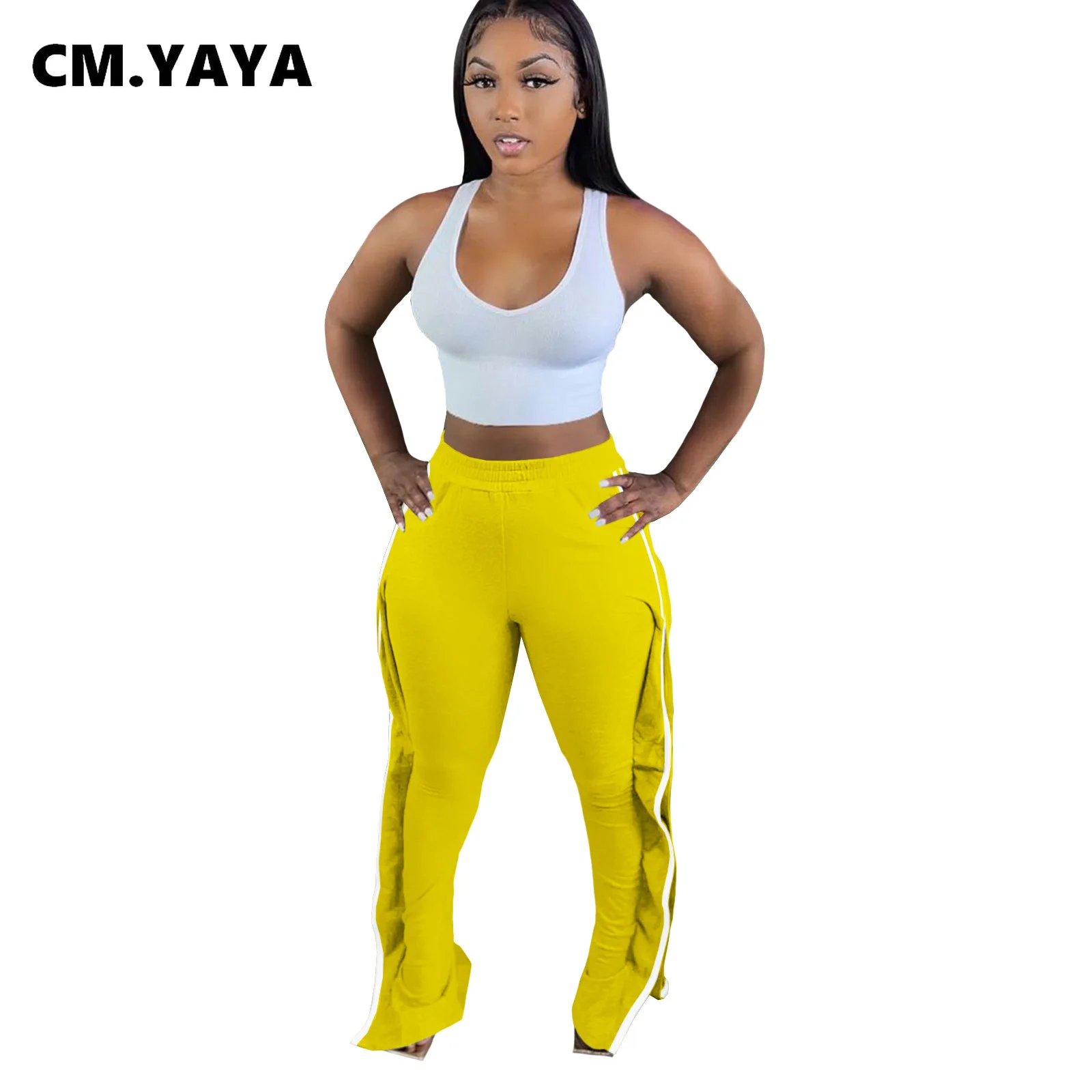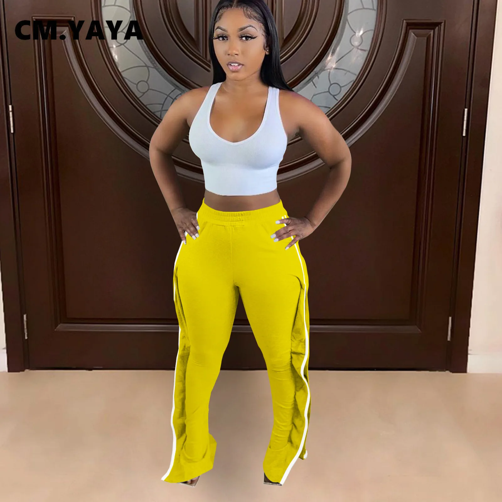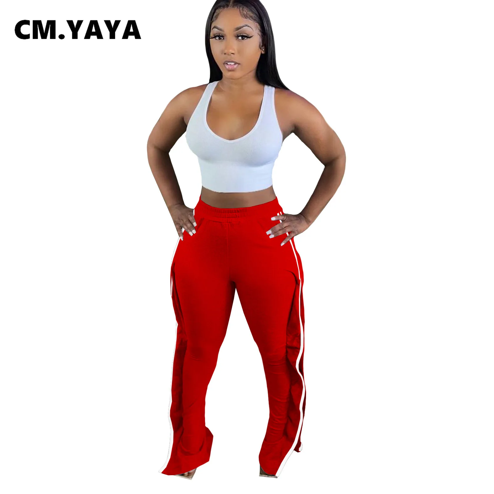 CM.YAYA Women Pant Elastic Mid Waist Patchwork Stretchy Skinny Bodycon Flare Pants Fashion Casual Trouser Summer 2021