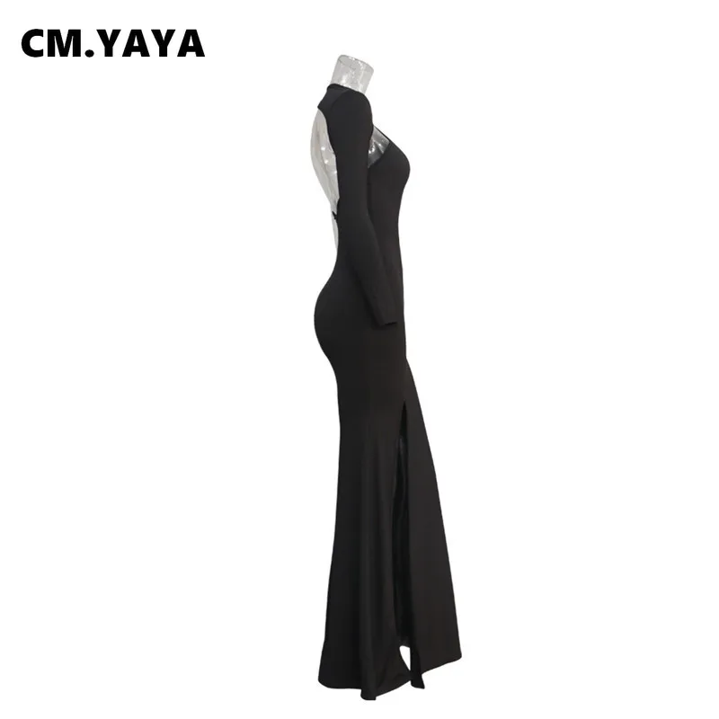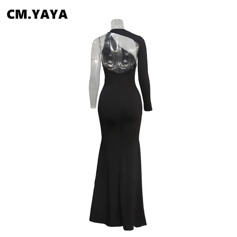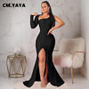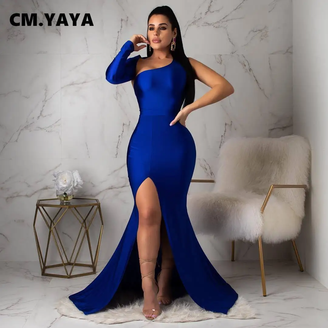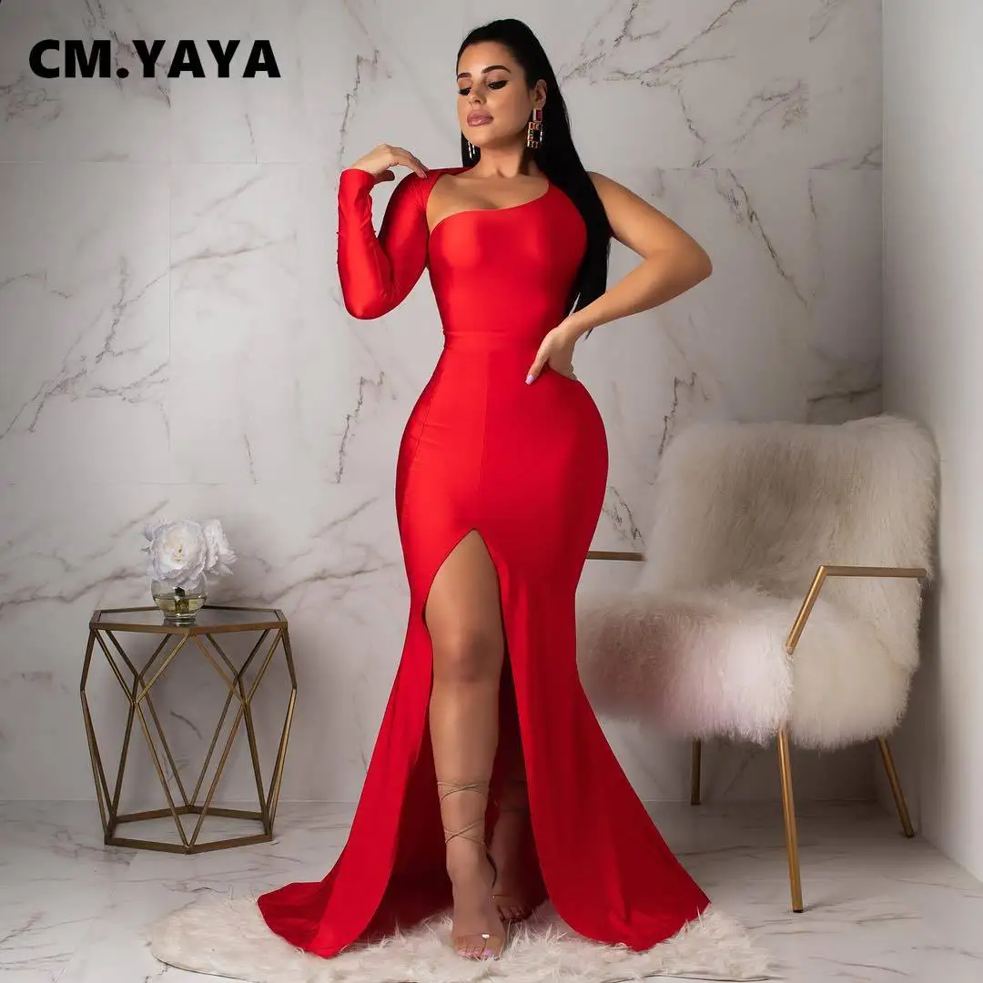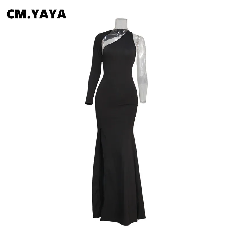 CM.YAYA Women Party Dress Solid One Hsouder Slited Backless Long Dresses Sexy Fashion Evening Vestidos Elegance Outfits Autumn