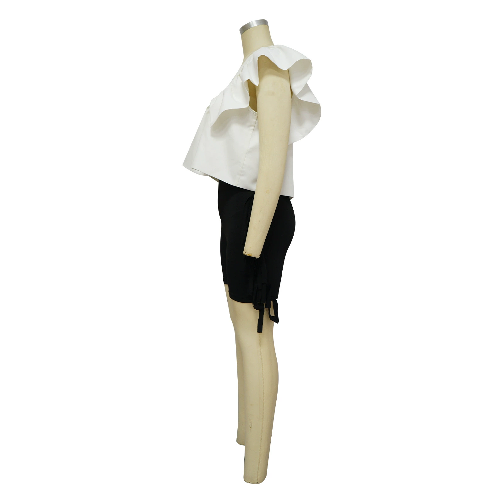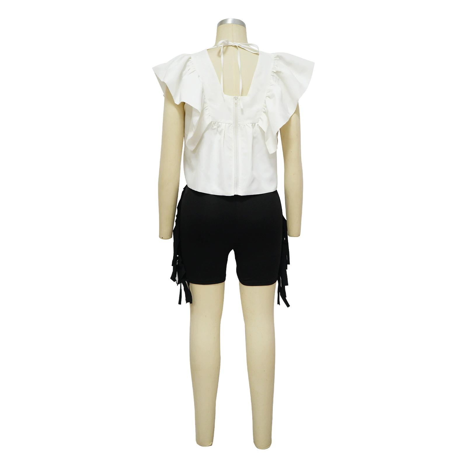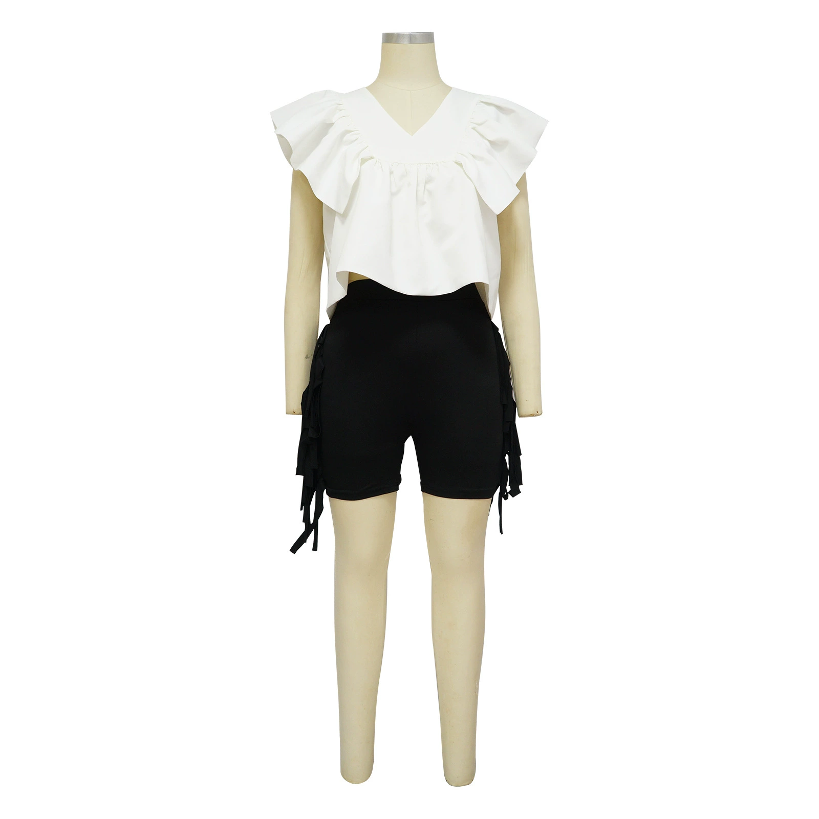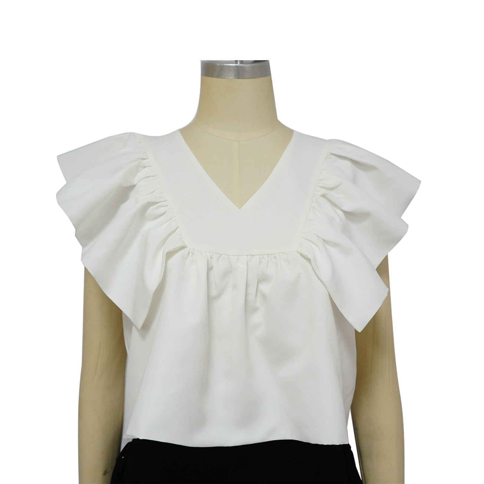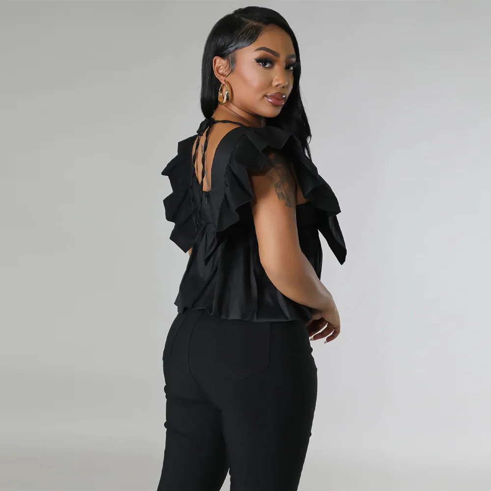 CM.YAYA Women Printed Ruffles Flare Short Sleeve V-neck Tunic Blouse and Shirt Top 2023 Summer New Chic Crop Tops