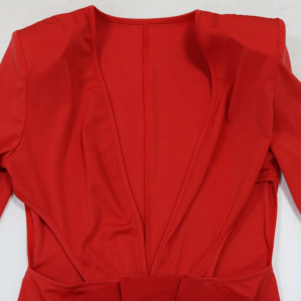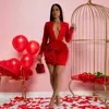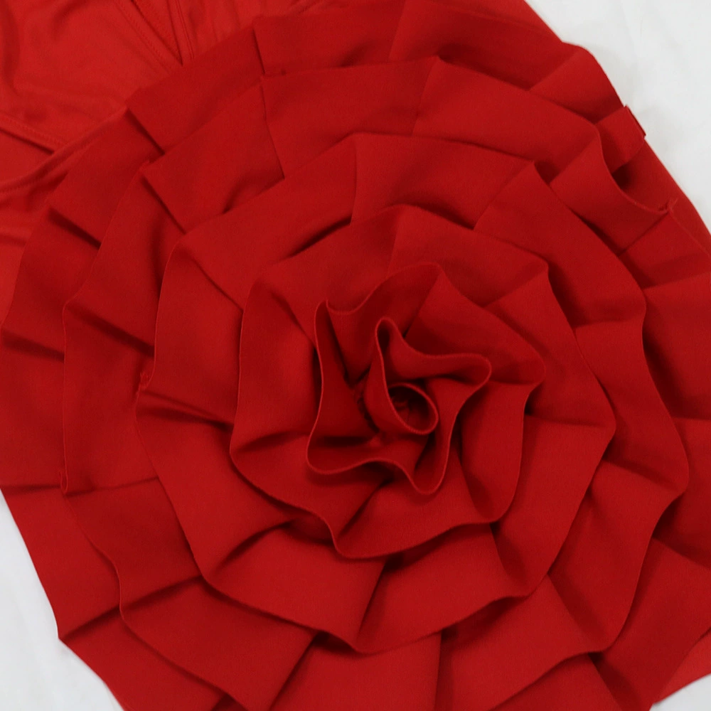 CM.YAYA Women Rose Floral Applique Long Sleeve Bodycon Mini Midi Dress Winter V-neck Club Sexy Party Evening Dresses Vestidos