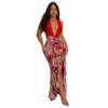 CM.YAYA Women Ruffles V-Neck Sleeveless Bodycon Long Mermaid Dress 2025 Floral Print Birthday Evening Beach Sexy Party Dresses