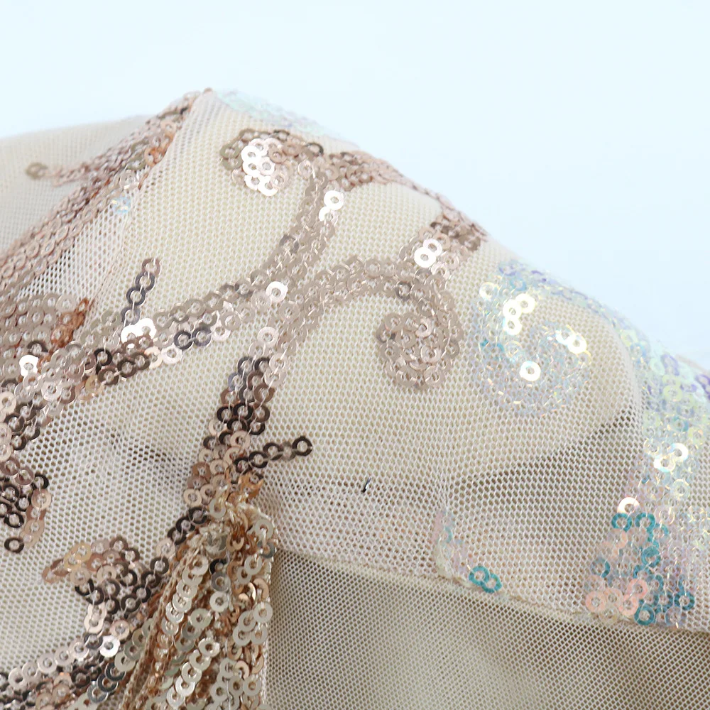 CM.YAYA Women Sequined Paisley Patchwork Bodycon Midi Mini Dress Spring Winter Sexy Party Clubwear Long Sleeve Dresses