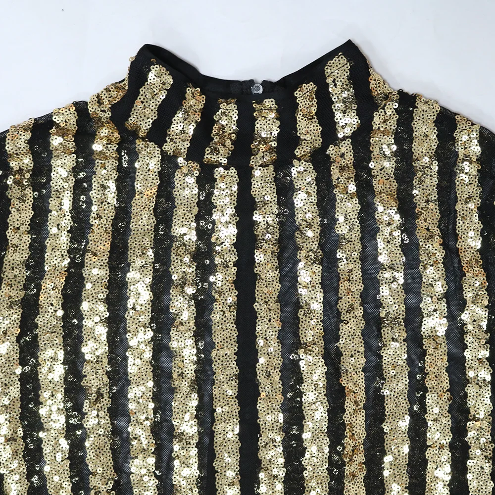 CM.YAYA Women Sequines Striped Long Sleeve Tassel Bodycon Midi Maxi Long Dress 2023 Sexy Club Evening Party Dresses Vestidos