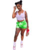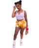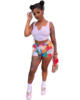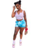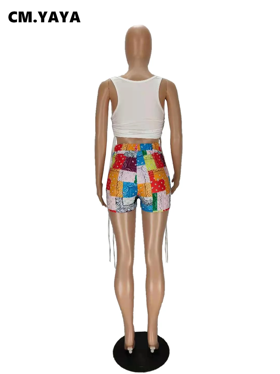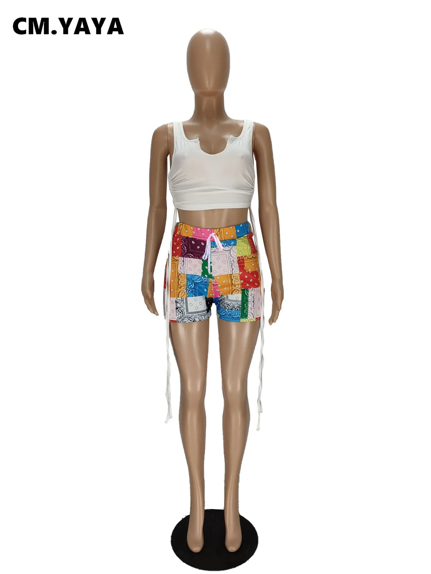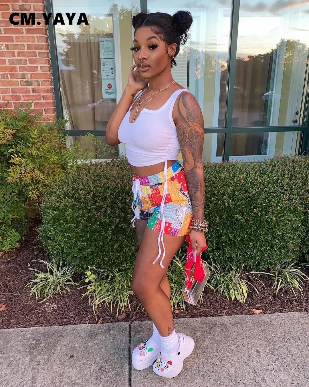CM.YAYA Women Set Elastic Summer Tanks Drawstring Print Shorts Suits 2 Piece Set Female Casual High Street Wear Tracksuits