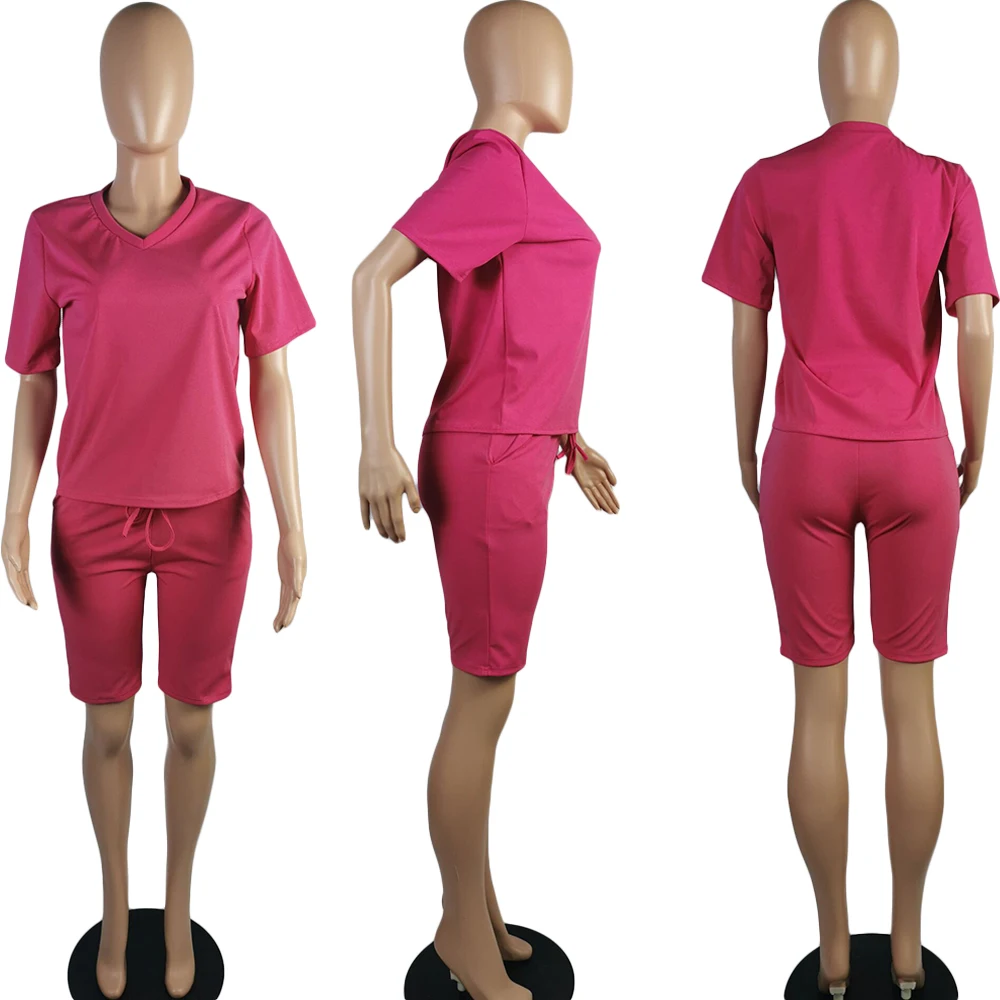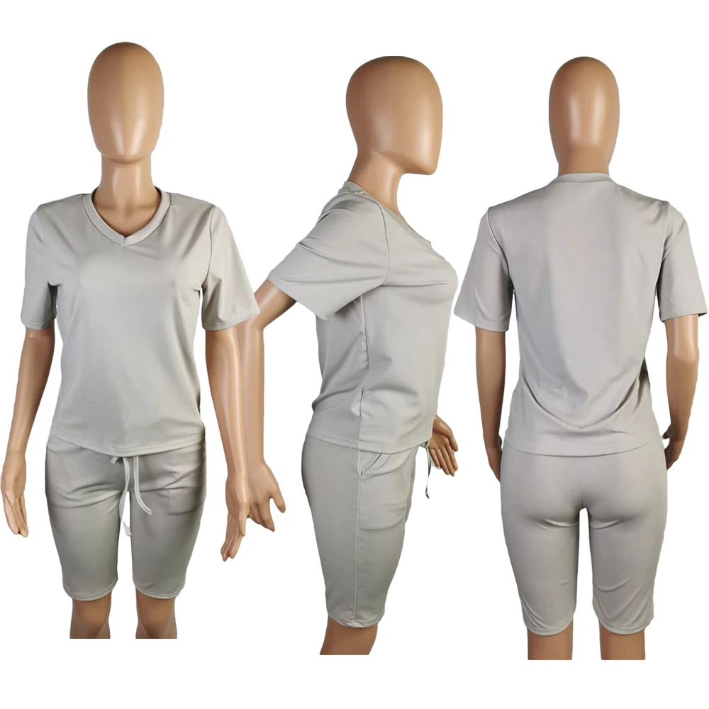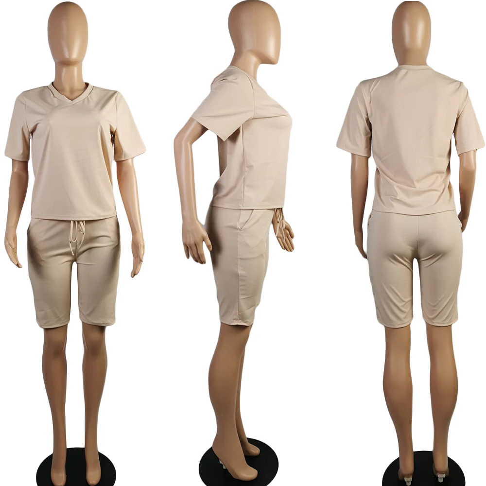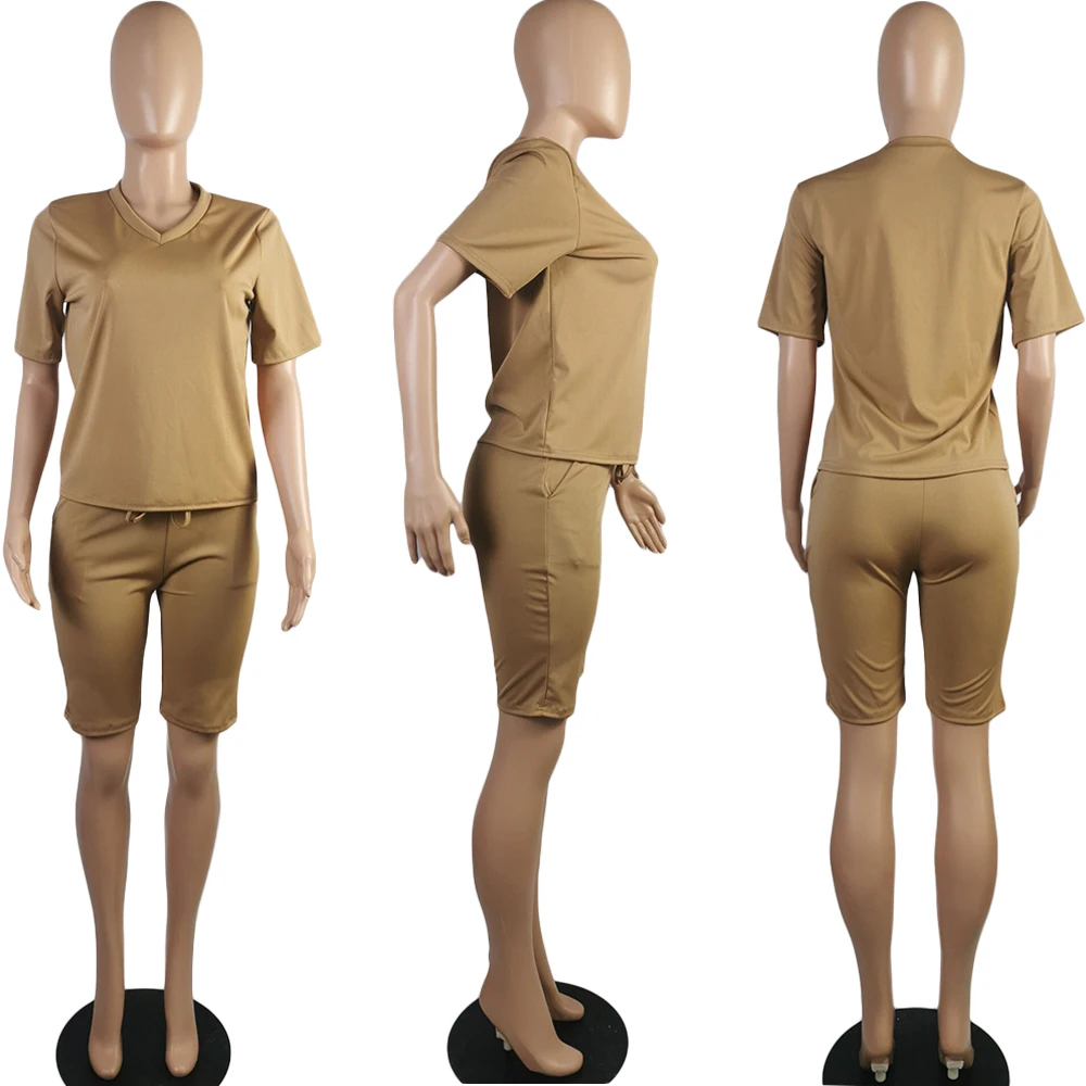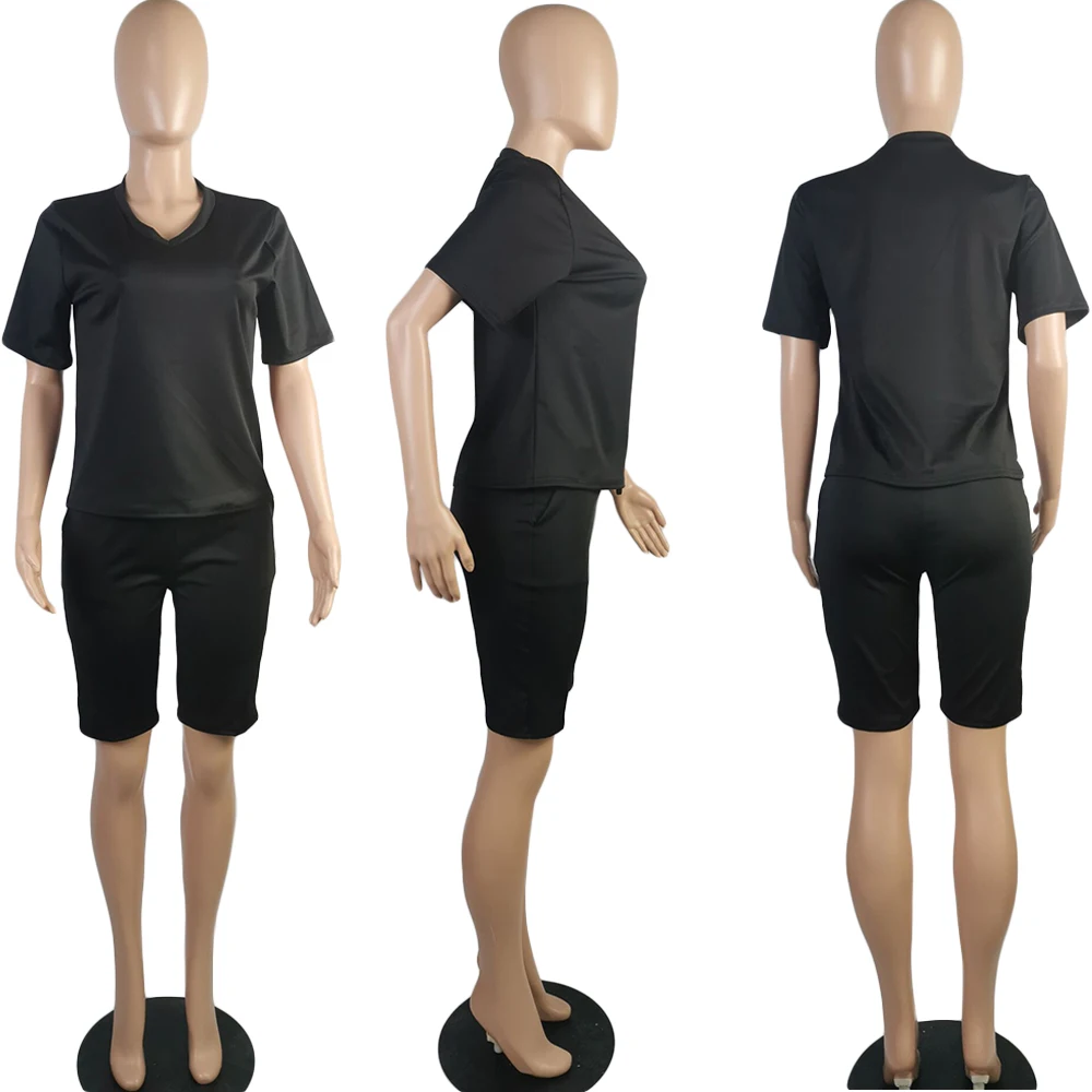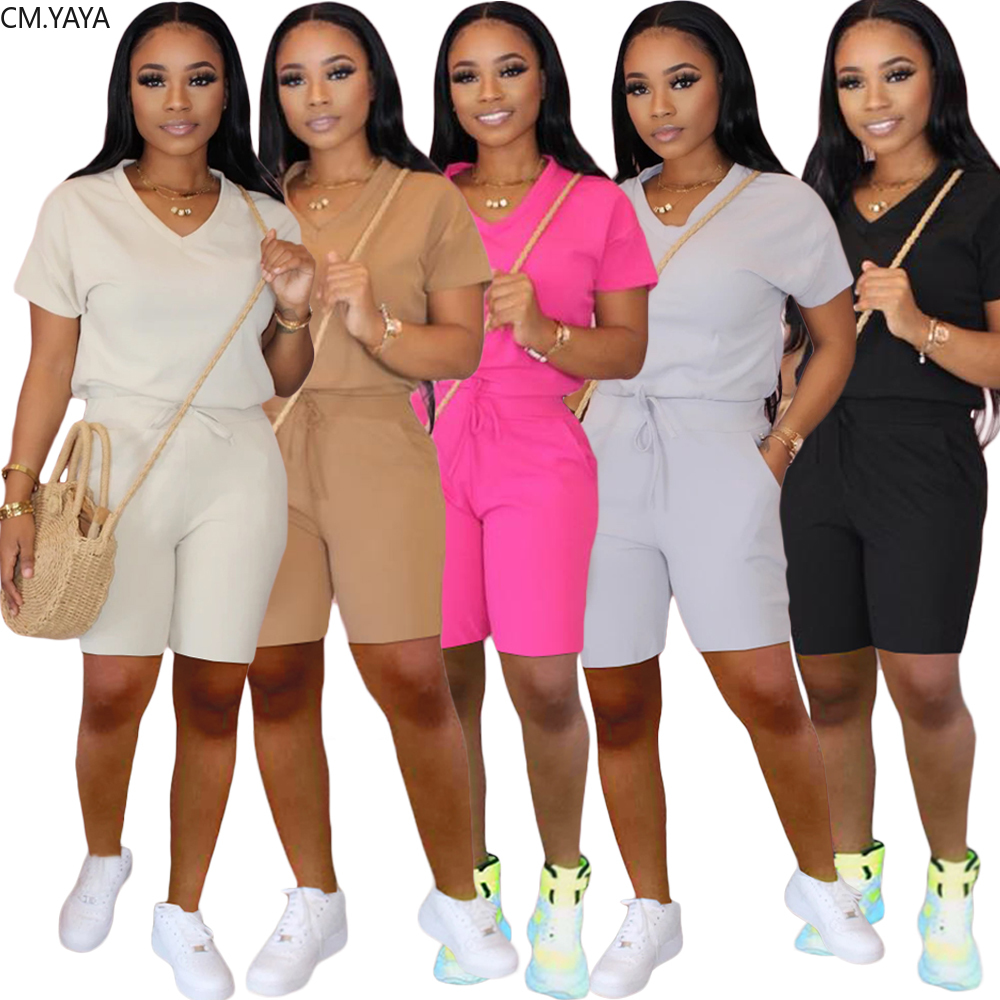 CM.YAYA Women Sets Summer Tracksuits V-neck T-Shirts+pocket Shorts Suit Two Piece Set Club Party Sportswear Street 2 Pcs Outfits