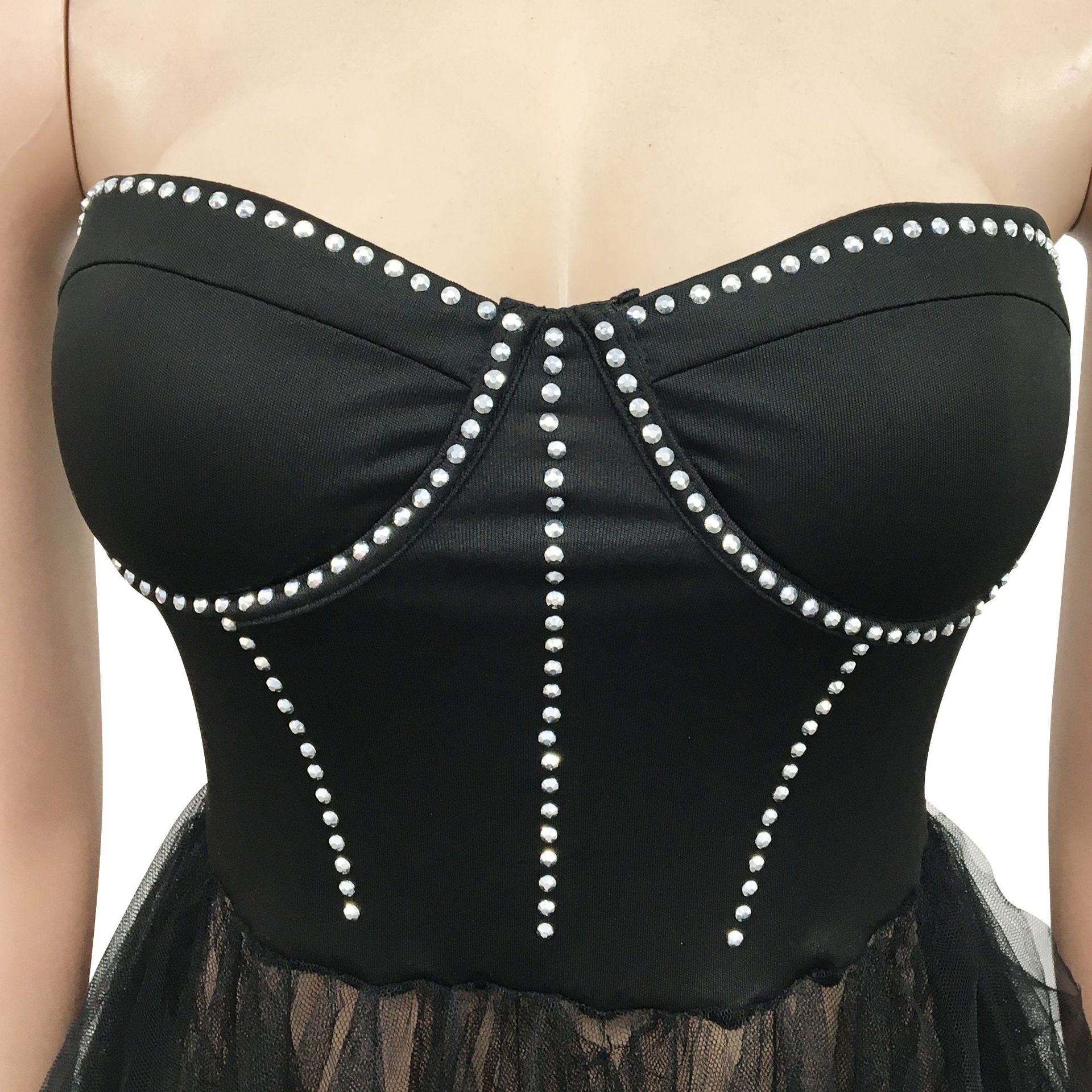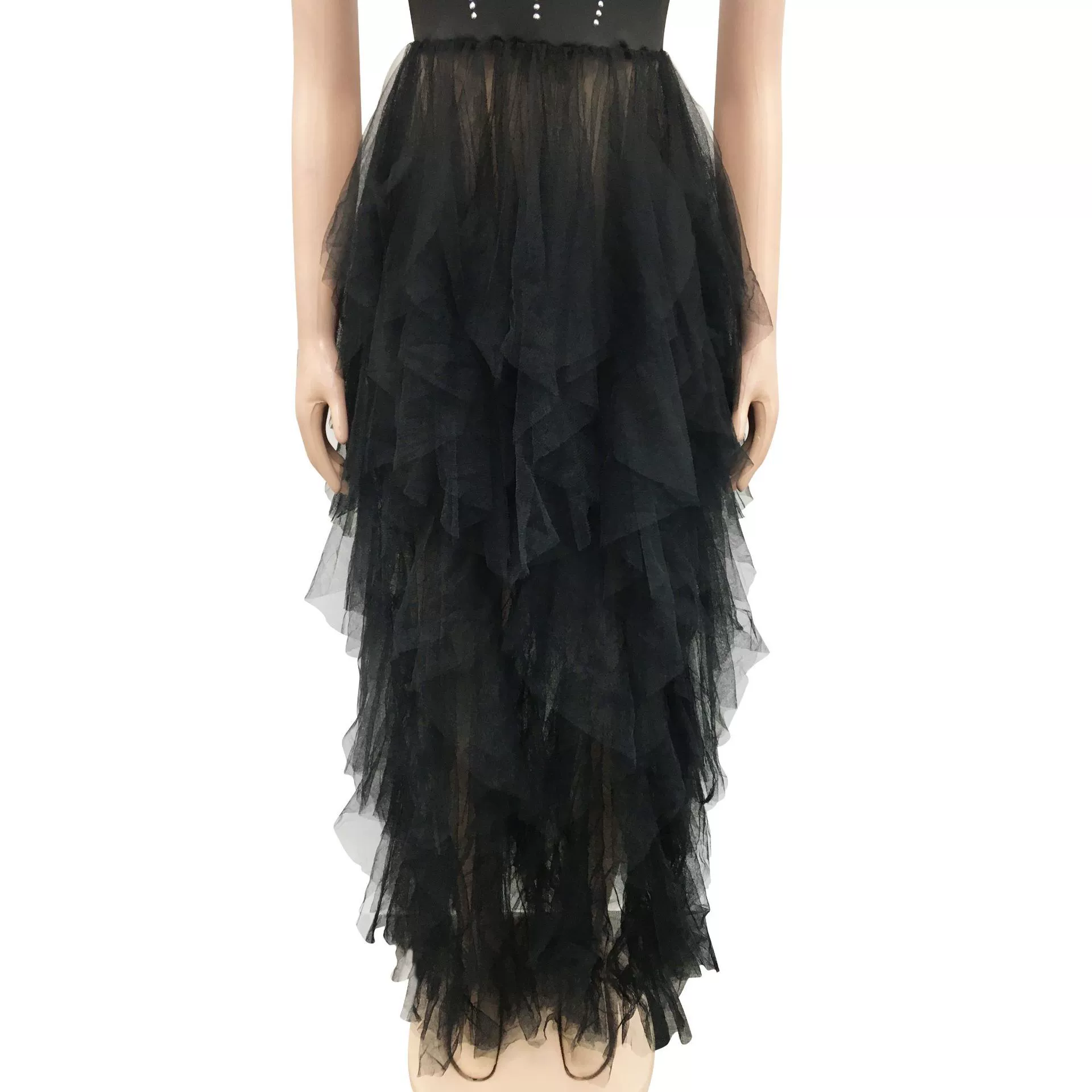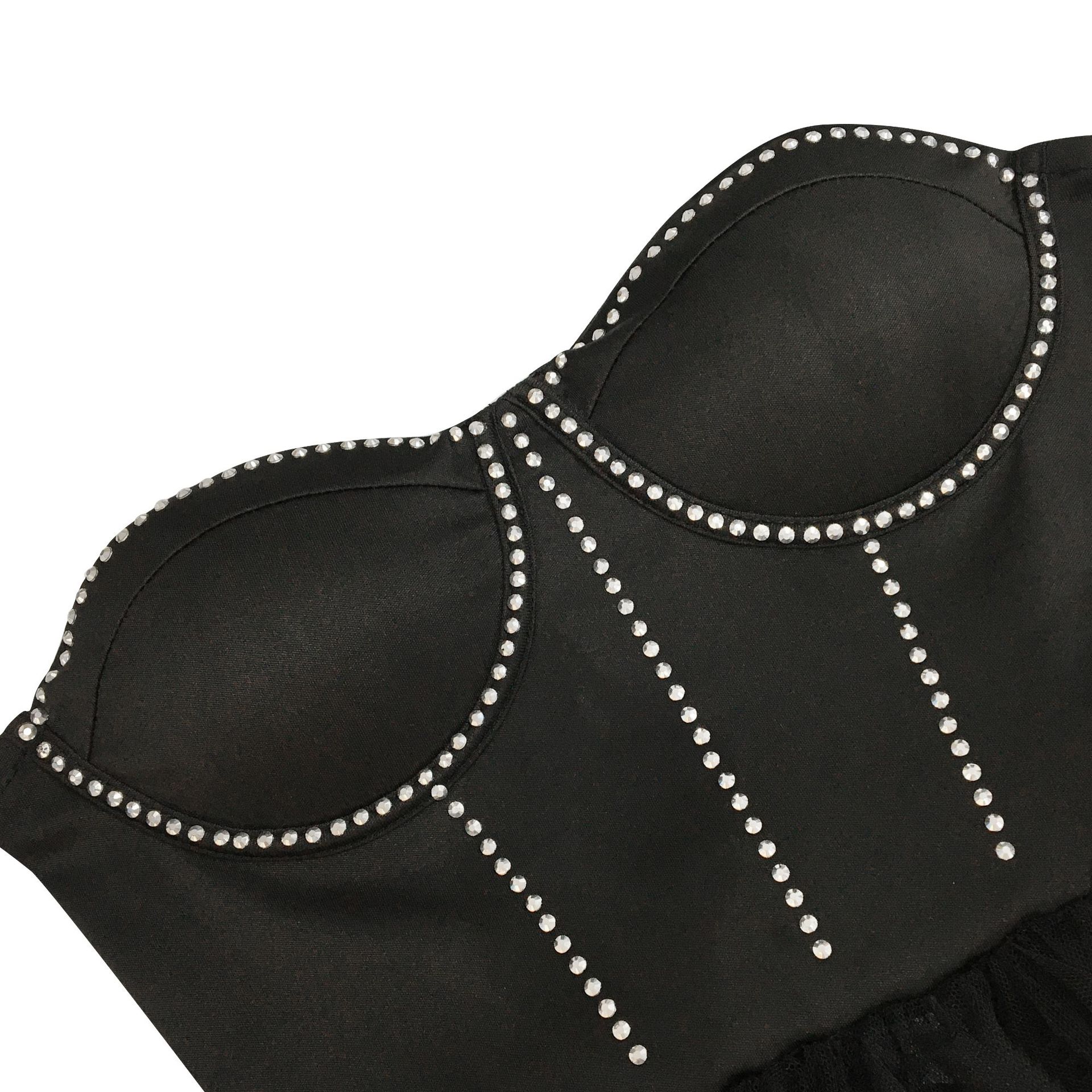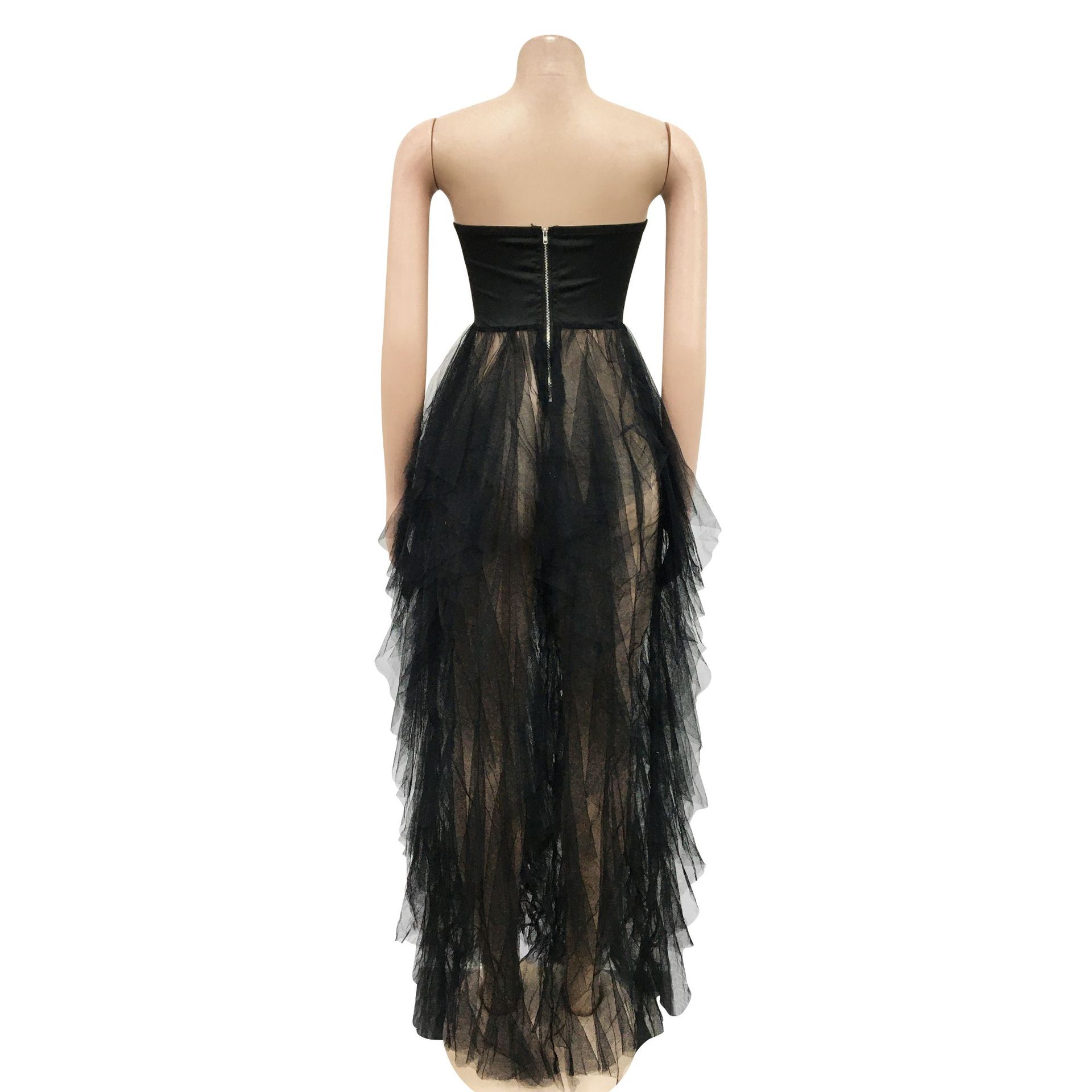 CM.YAYA Women Sexy Party Maxi Dresses 2022 Diamonds Hot Rhinestones Strapless Big Swing Mesh Cascading Ruffles Long Dress