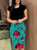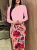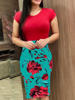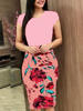 CM.YAYA Women Short Sleeve Floral Printed Patchwork Midi Bodycon Mini Dress 2023 OL Work Sexy Vestidos Fashion Evening Dresses