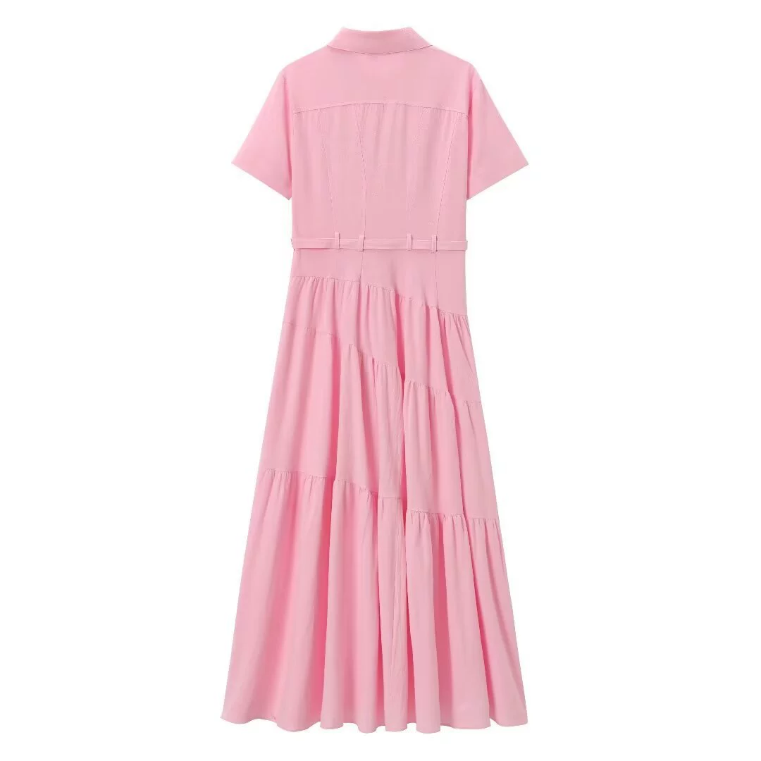 CM.YAYA Women Short Sleeve Single Breasted Belt Long Maxi Dress 2025 Street Birthday Evening Sexy Party Shirt Dresses Vestidos