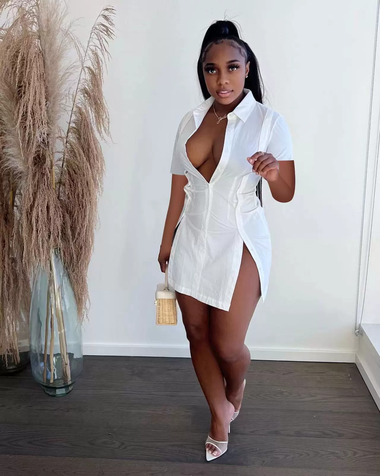 CM.YAYA Women Single Breasted Turn-down Neck Shirt Style A-line Bodycon Long Sleeve Dress 2022 New