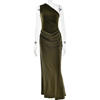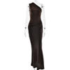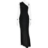 CM.YAYA Women Skew Collar Sleeveless Ruched Maxi Long Bodycon Dress 2025 Summer Vacation Birthday Club Party Evening Dresses