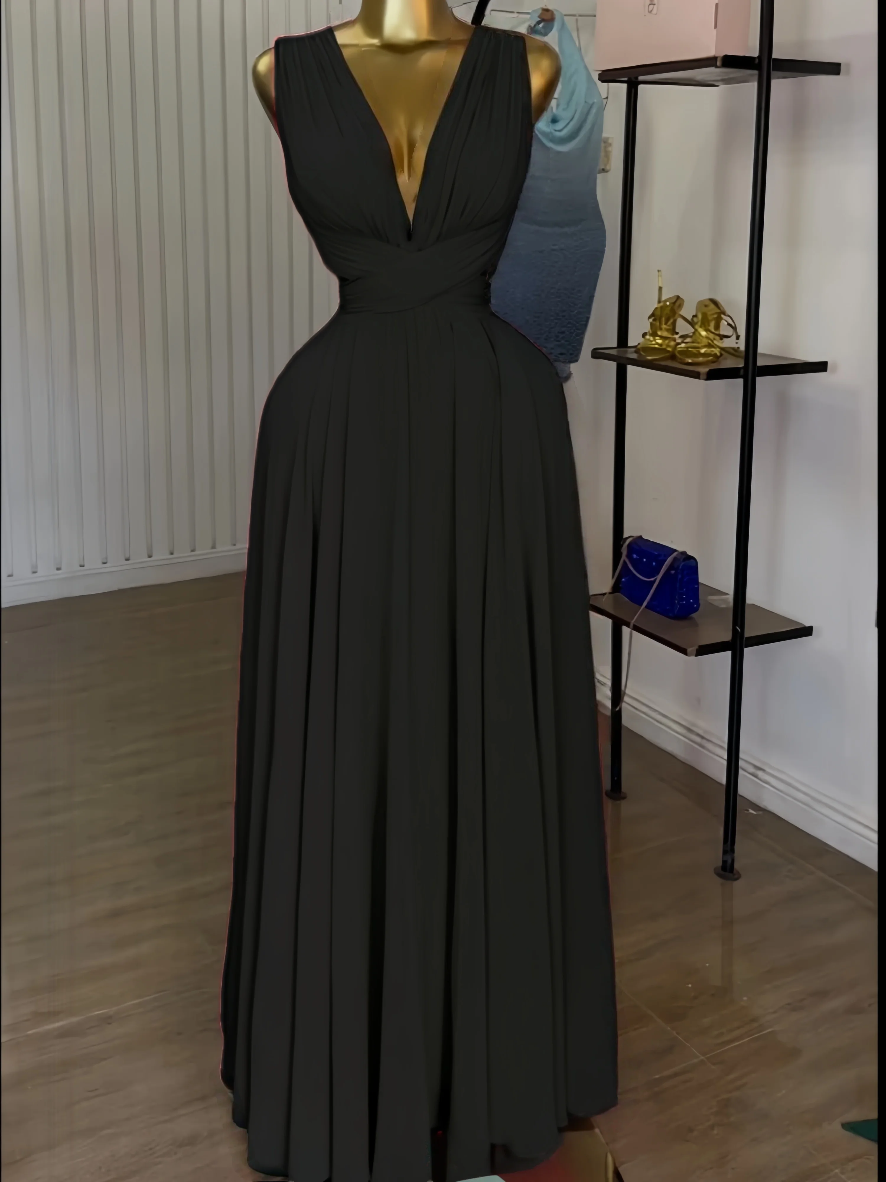 CM.YAYA Women Sleeveless Cutout Back Wrap V-neck Pleated A-line Chiffon Maxi Long Dress Birthday Vacation Sexy Party Dresses