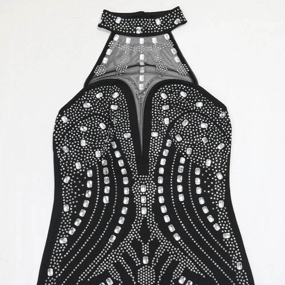 CM.YAYA Women Sleeveless Diamonds Hot Rhinestones Bodycon Midi Dress 2024 Fall Sexy Street Party Club Evening Birthday Dresses