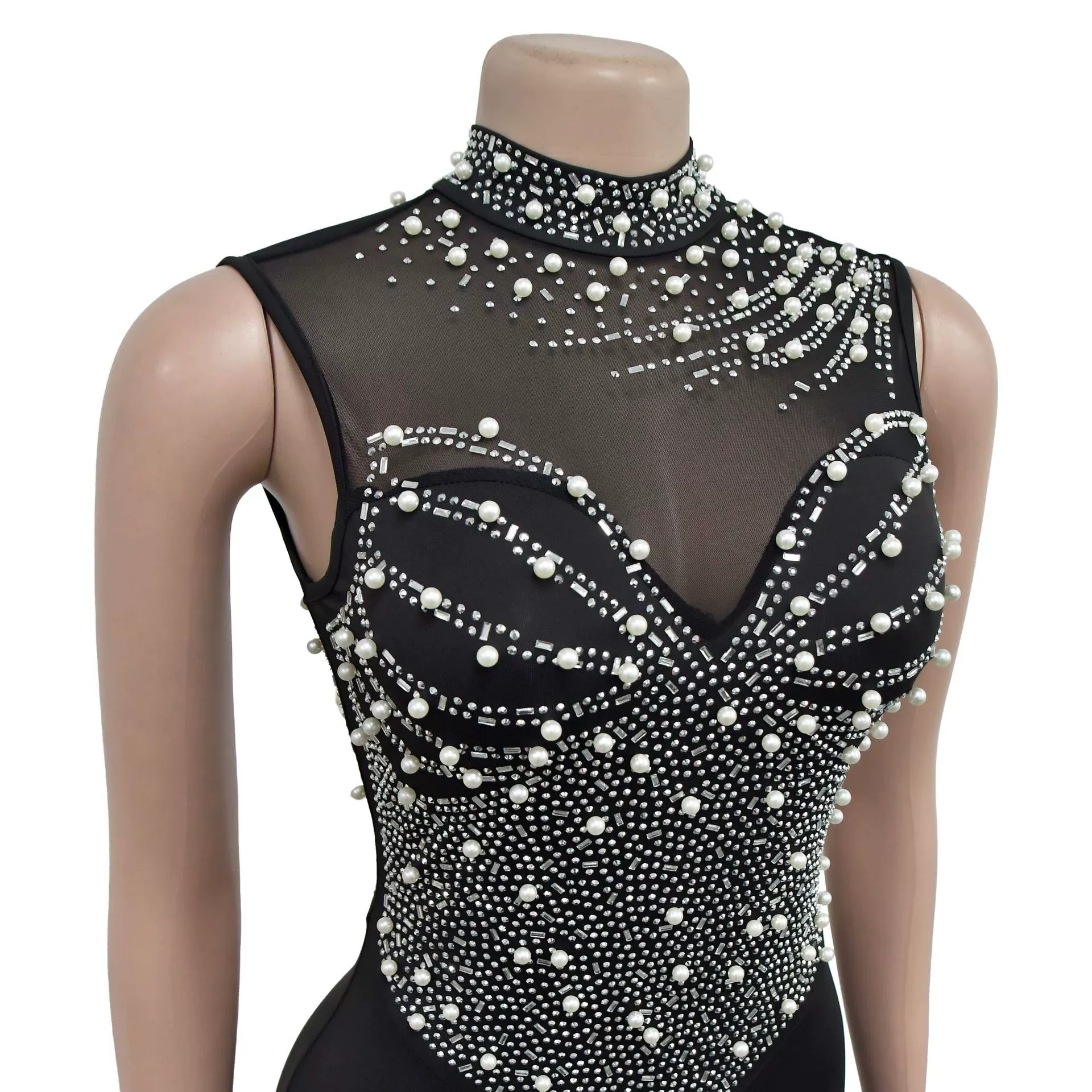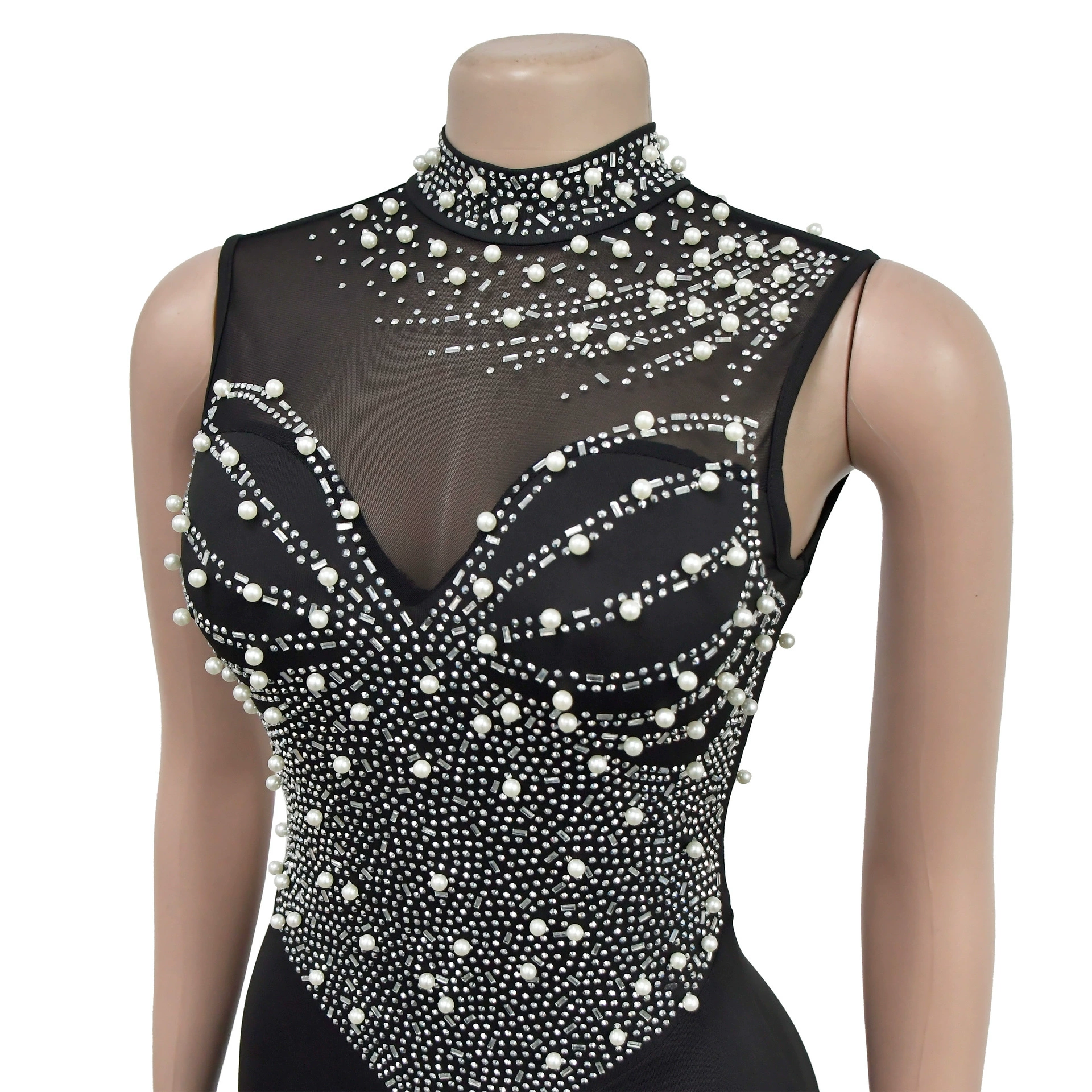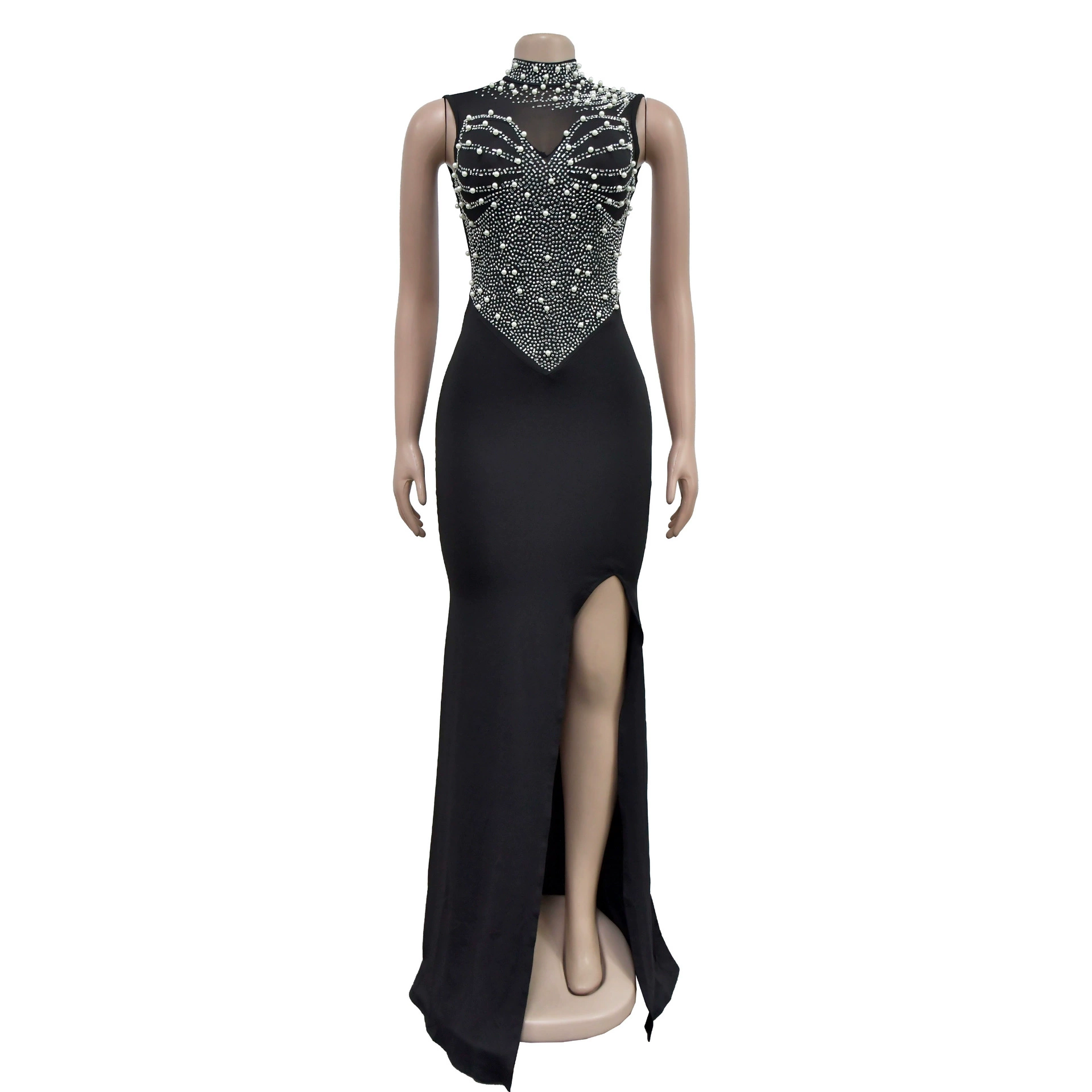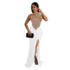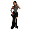 CM.YAYA Women Sleeveless Diamonds Hot Rhinestones High Side Split Mermaid Maxi Long Dress 2024 Even Sexy Party Dresses Vestidos