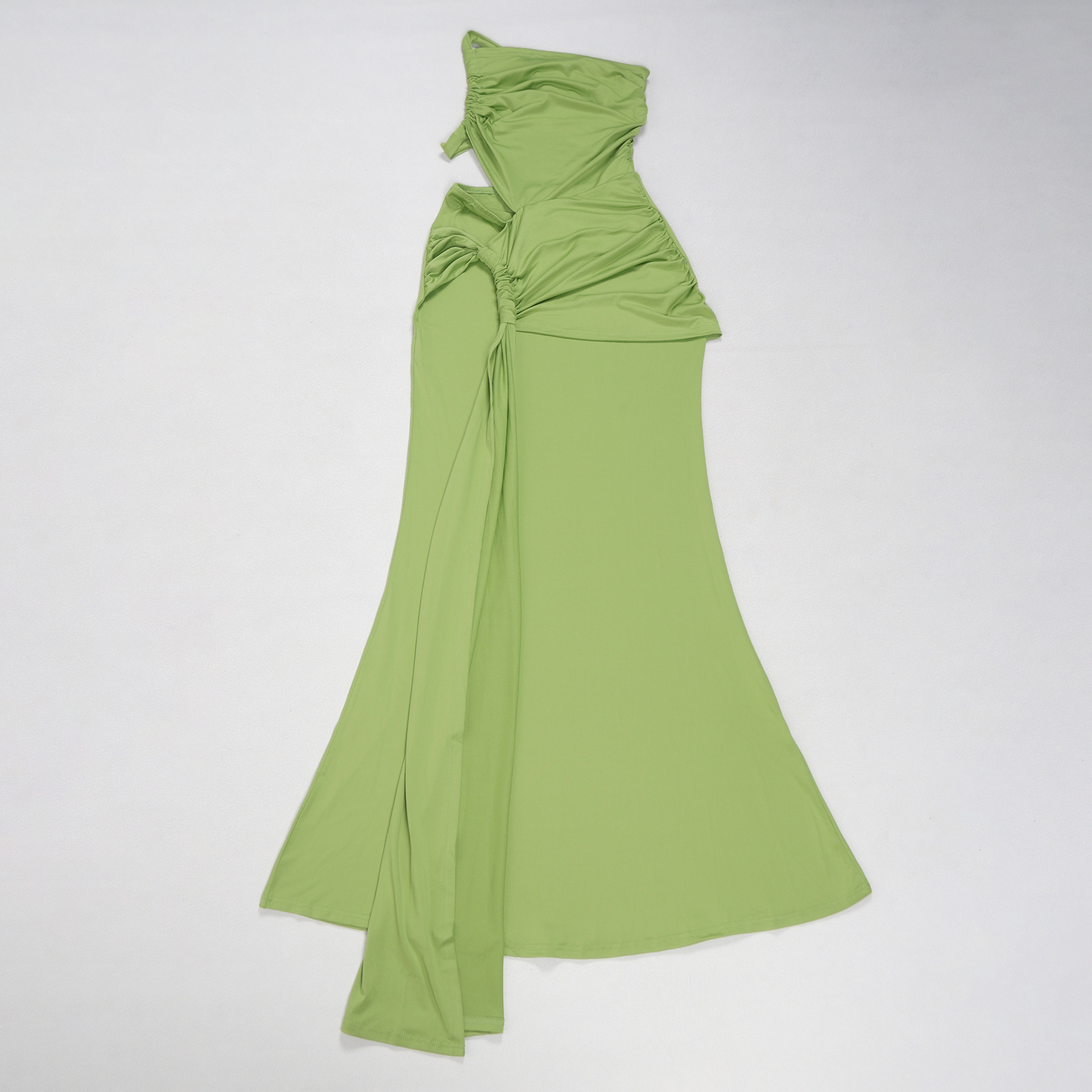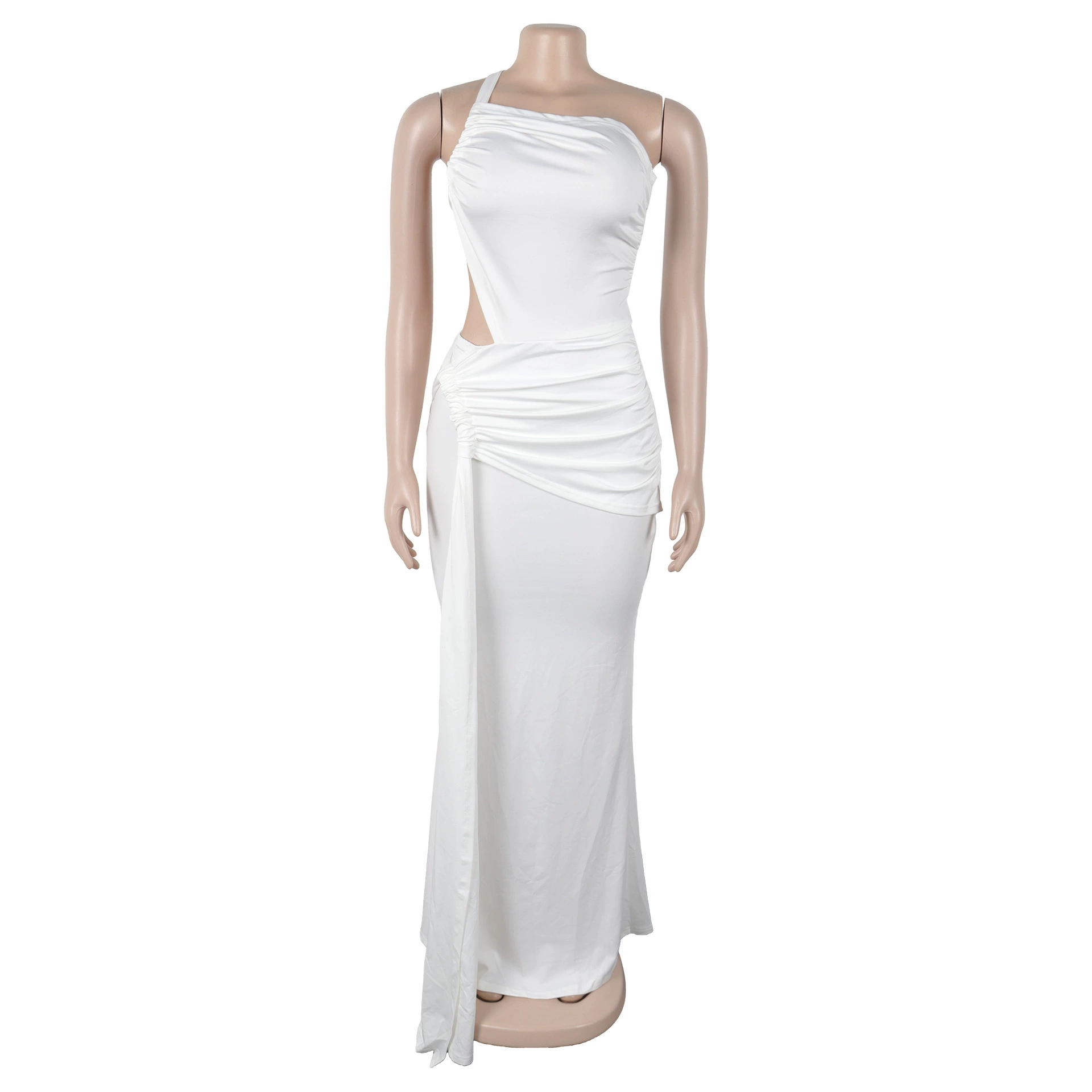 CM.YAYA Women Sleeveless Hollow Out Strap Ruched Maxi Long Dress 2025 Summer Street Sexy Party Birthday Evening Dresses Vestidos