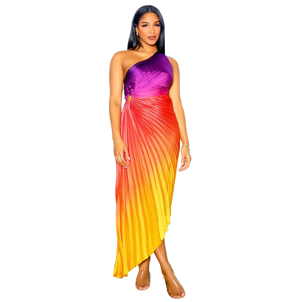 CM.YAYA Women Sleeveless Irregular Print Long Pleated Dress Summer Streetwear Beach Evening Sexy Night Party Dresses Vestidos