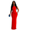 CM.YAYA Women Sleeveless Ruched Skew Collar Long Maxi Dress 2024 Street Evening Birthday Night Club Party Vestidos Sexy Dresses