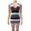 CM.YAYA Women Sleeveless Striped Knit V-neck Tank Bodycon Mini Dress 2025 Summer Beach Vacation Birthday Sexy Party Dresses