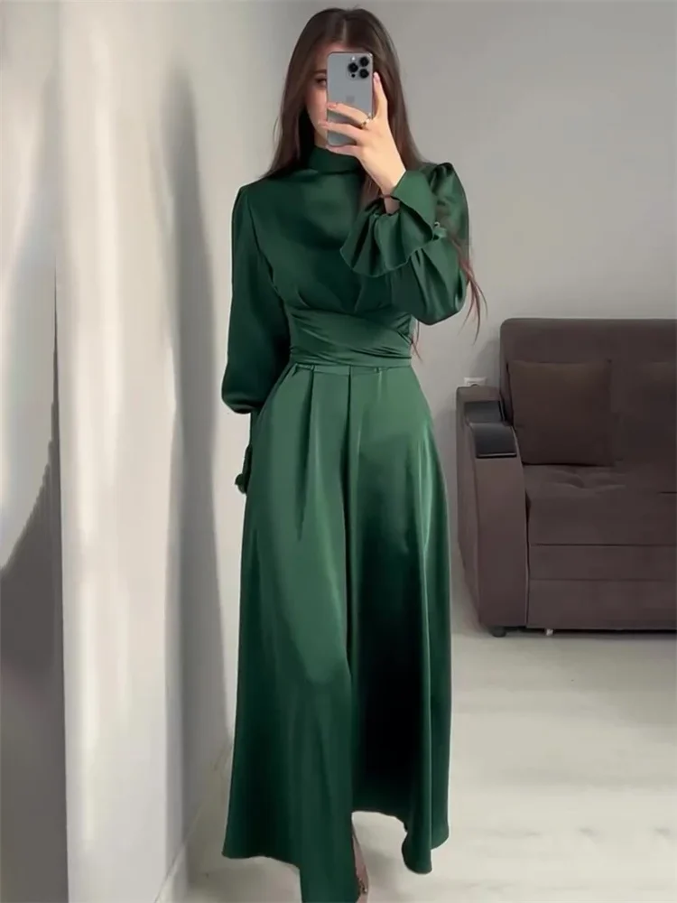CM.YAYA Women Slim Denim Long Sleeve Pleated Loose Dress 2025 Summer Street Casual Birthday Sexy Club Party Big Swing Dresses