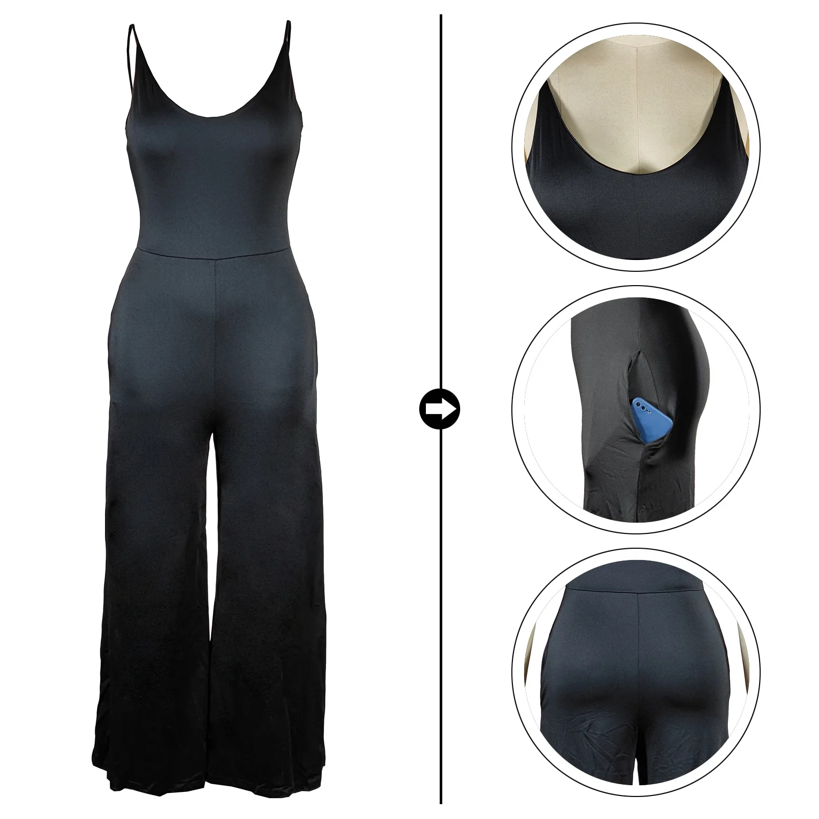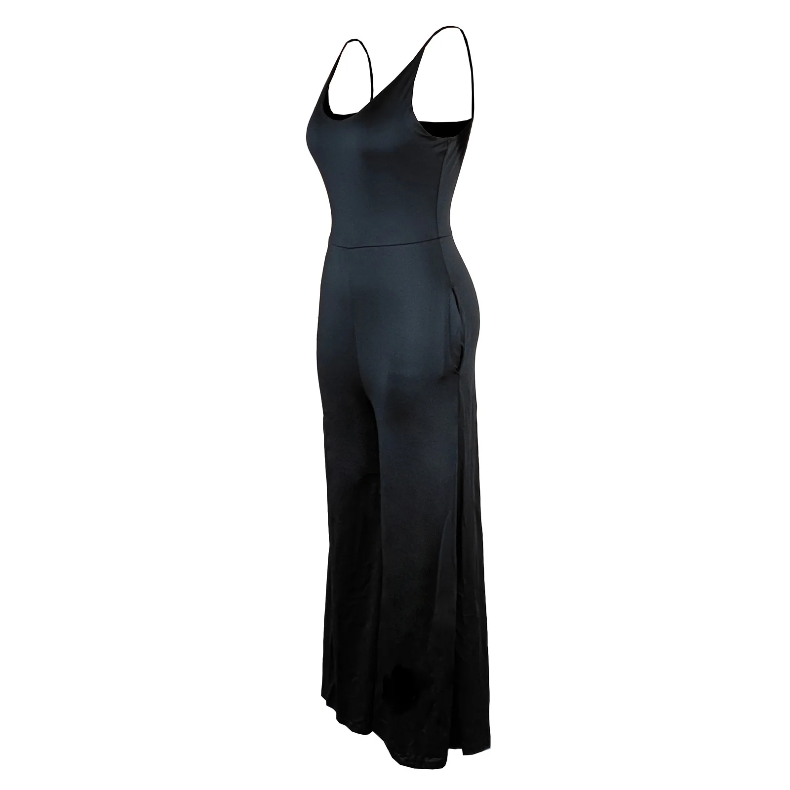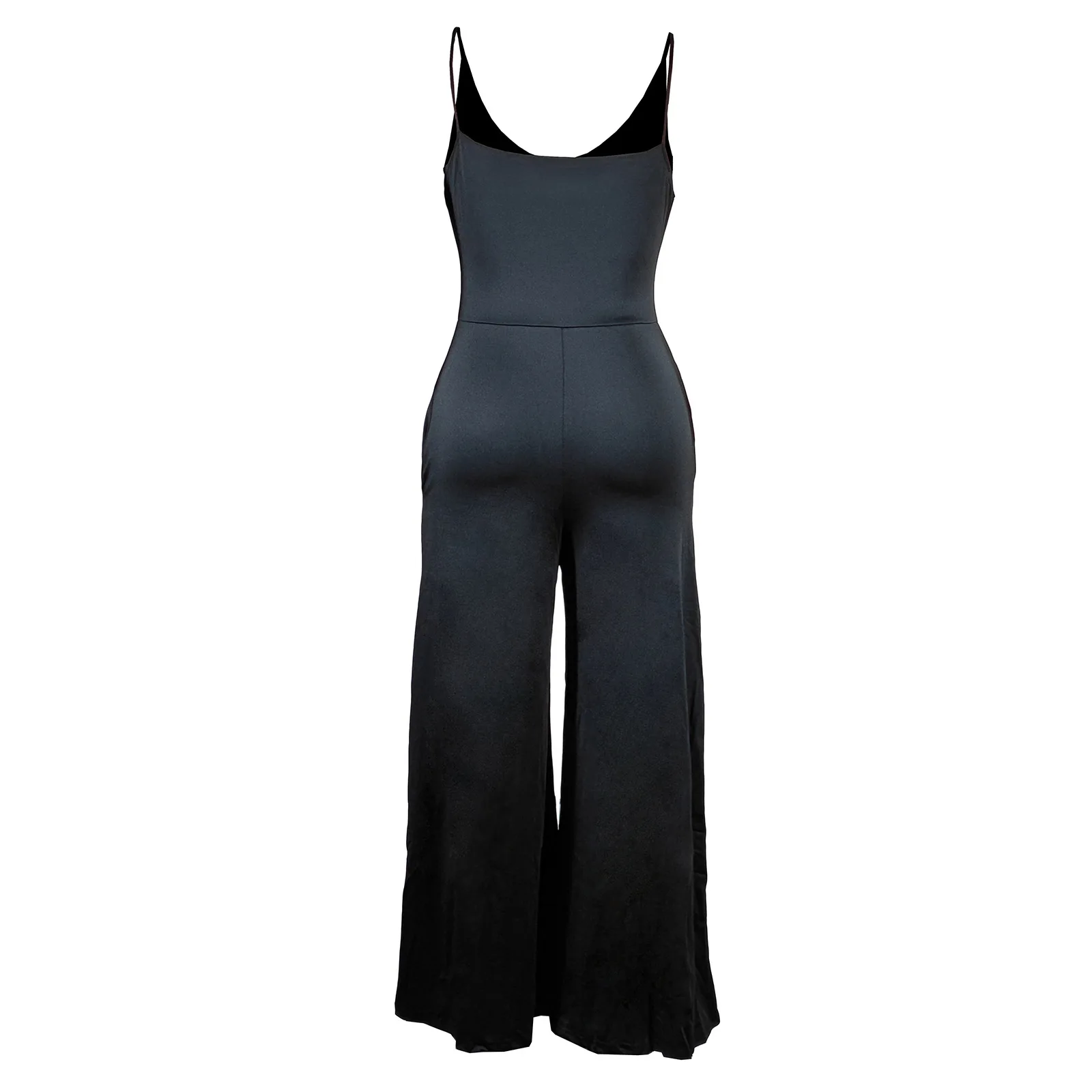 CM.YAYA Women Spaghetti Strap Sleeveless Pocket Side Wide Leg Haren Jumpsuit 2023 INS Street One Piece Set Outfit Playsuit