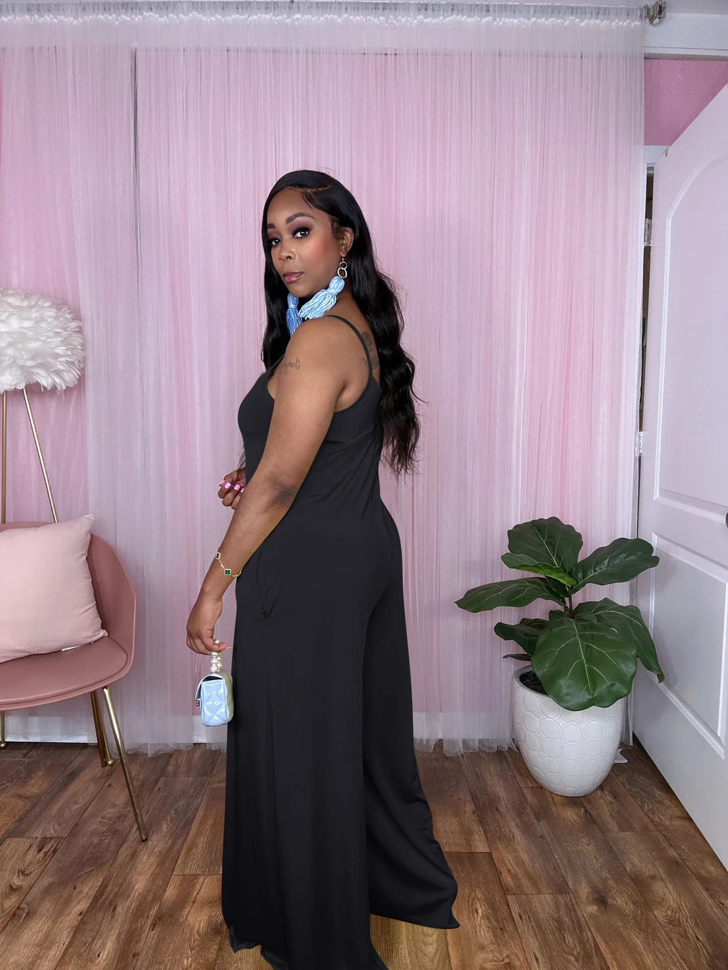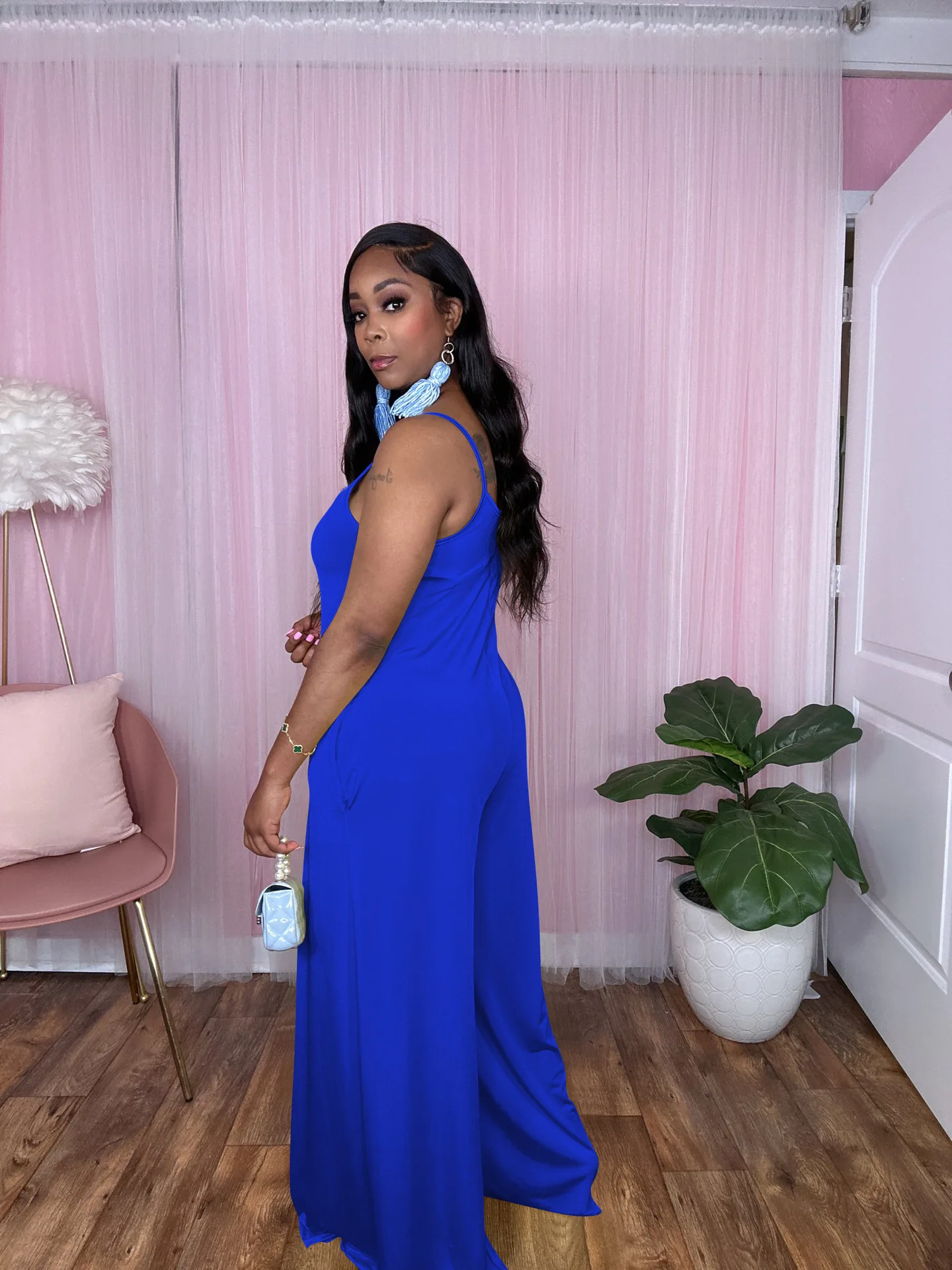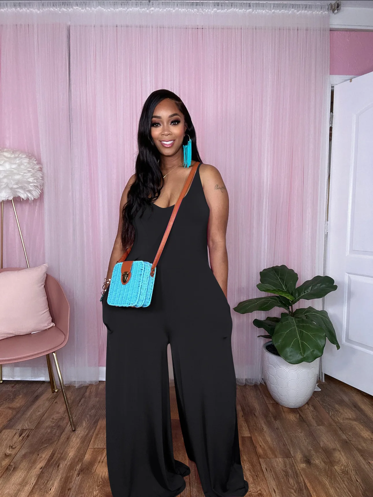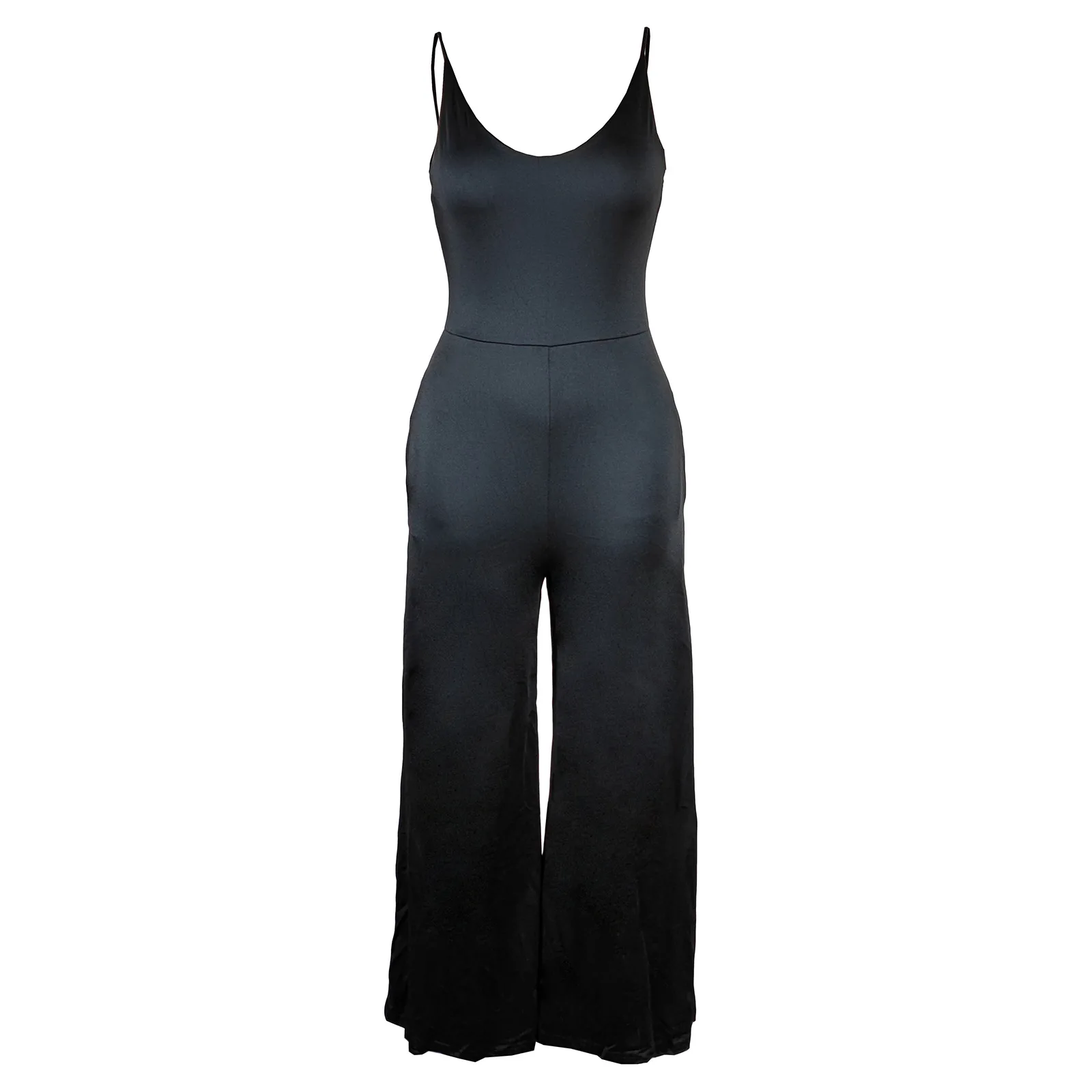 CM.YAYA Women Spaghetti Strap Sleeveless Pocket Side Wide Leg Haren Jumpsuit 2023 INS Street One Piece Set Outfit Playsuit