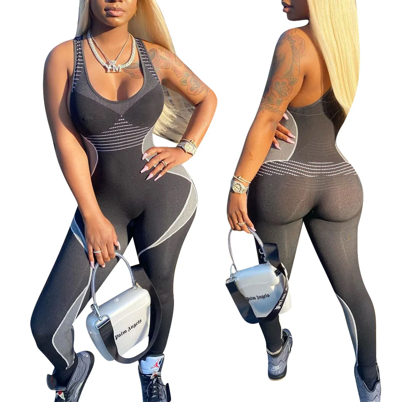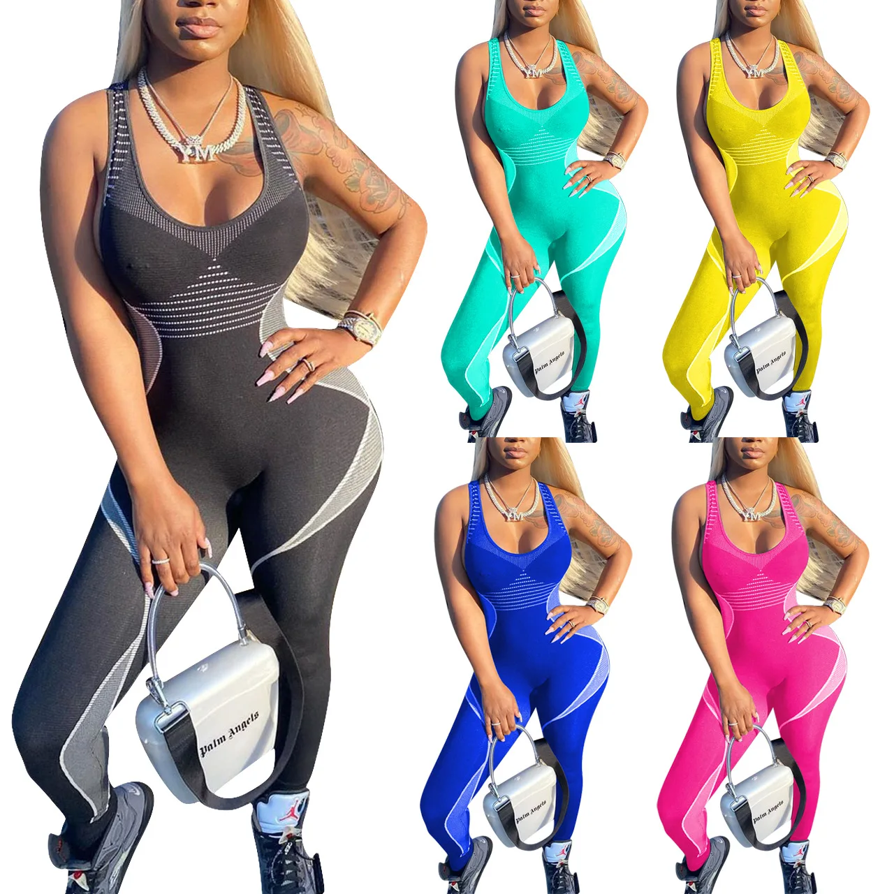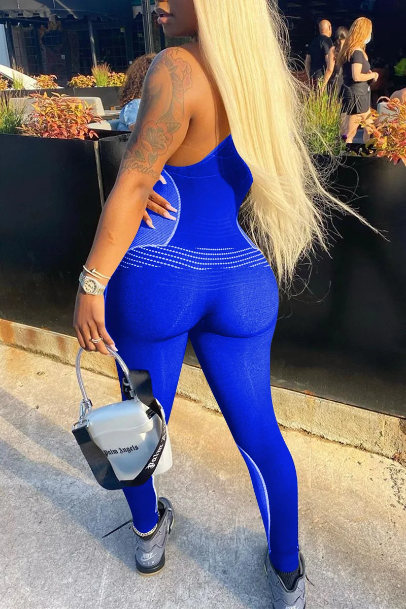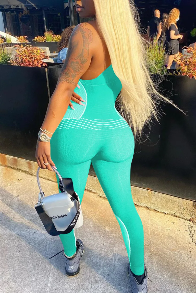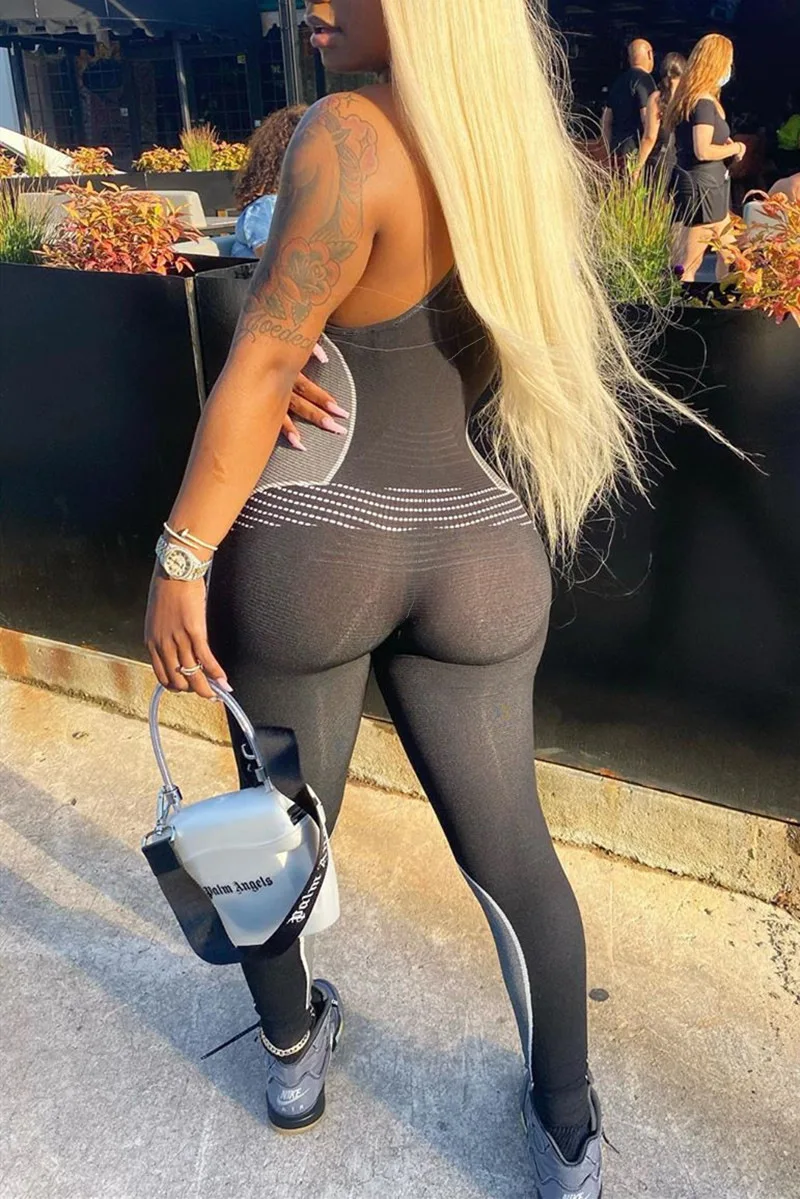 CM.YAYA Women Sport Sleeveless Print Tank Bodycon Pencil Bodysuit Jumpsuit Sexy Club Party Romper Playsuit One Piece Overalls