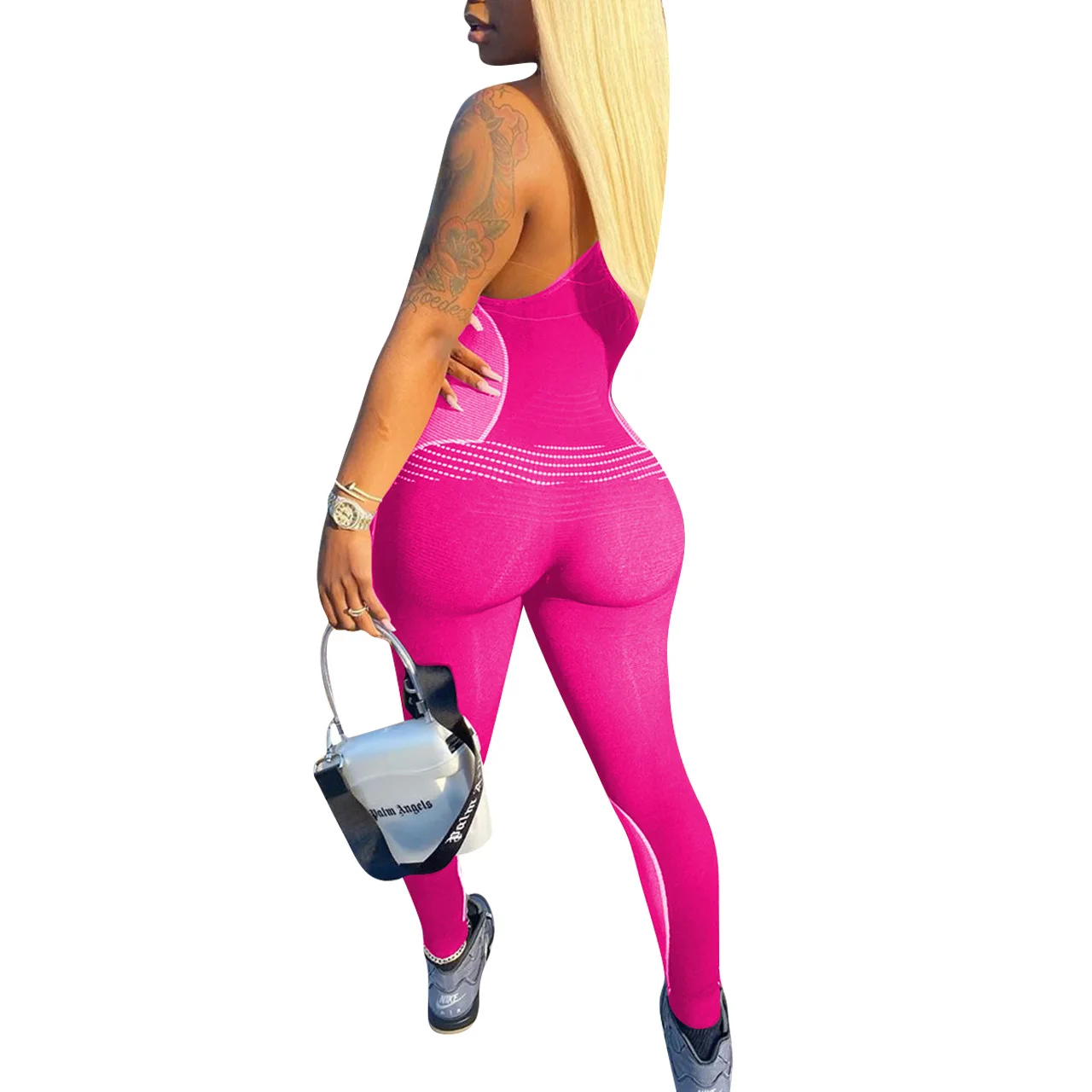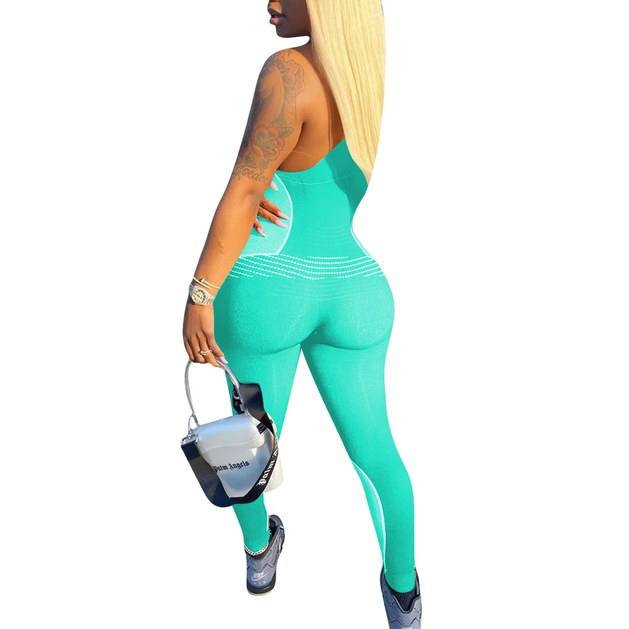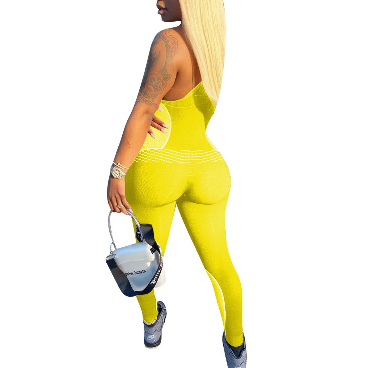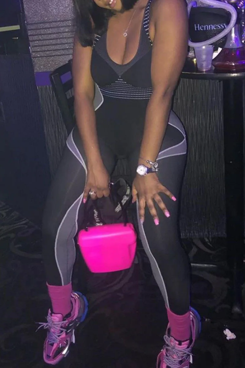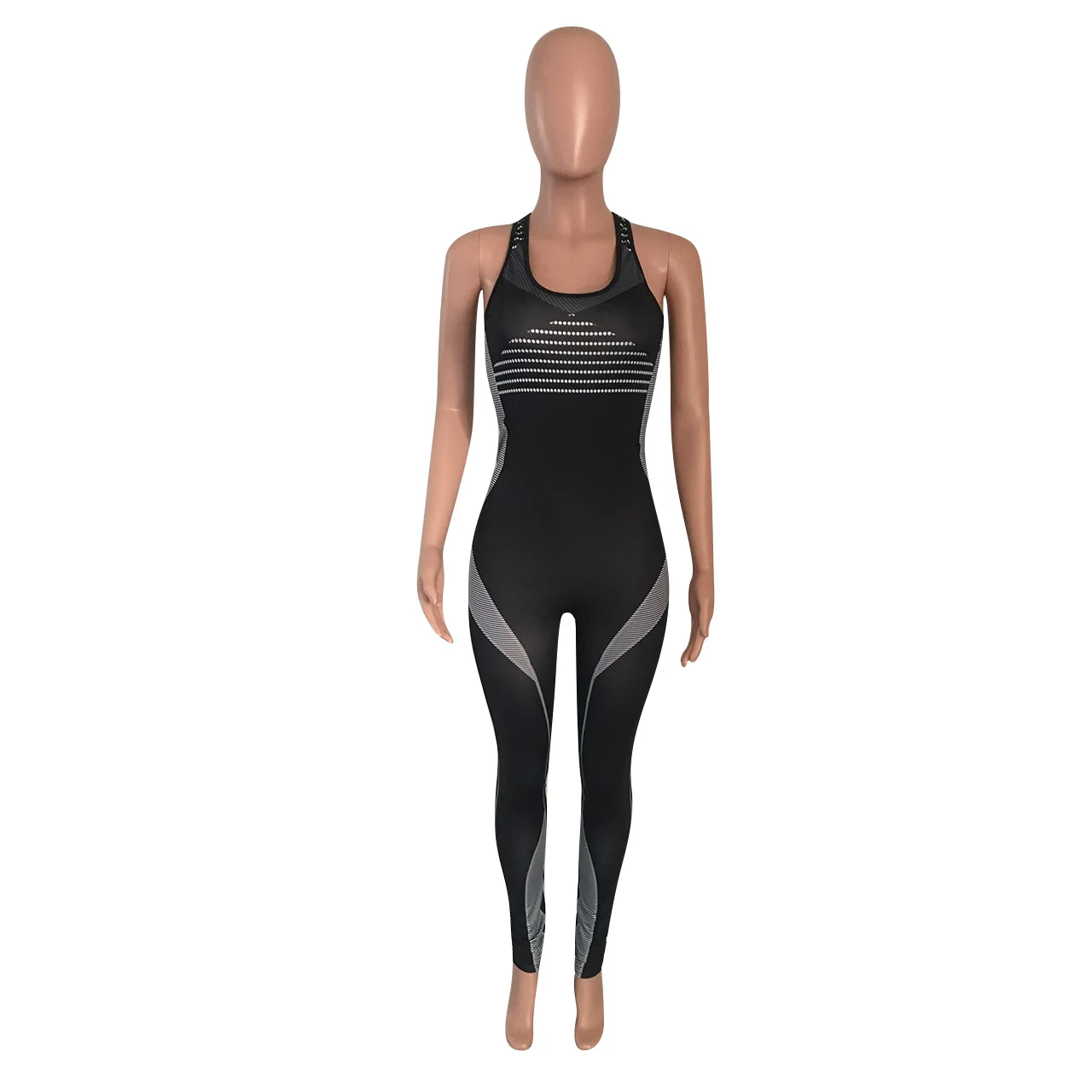 CM.YAYA Women Sport Sleeveless Print Tank Bodycon Pencil Bodysuit Jumpsuit Sexy Club Party Romper Playsuit One Piece Overalls