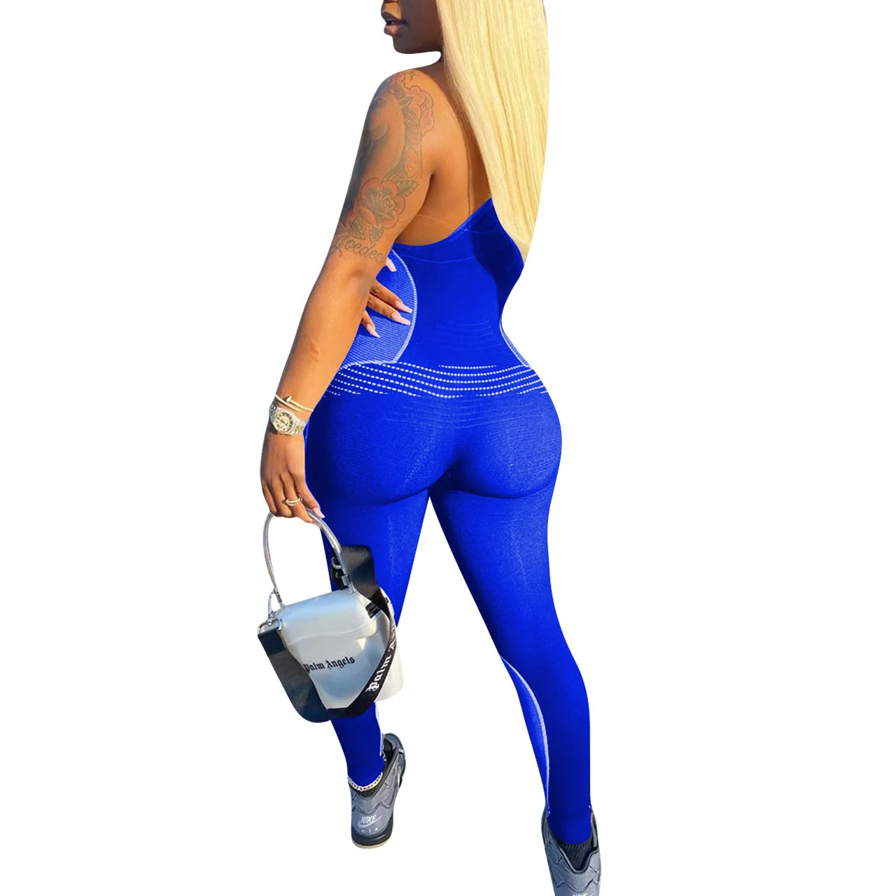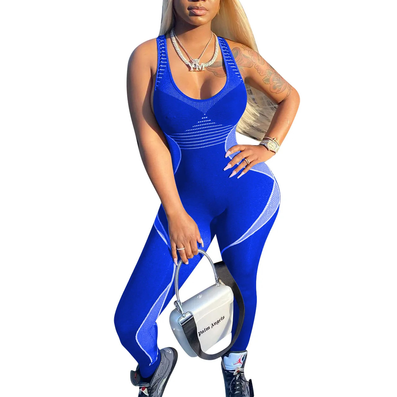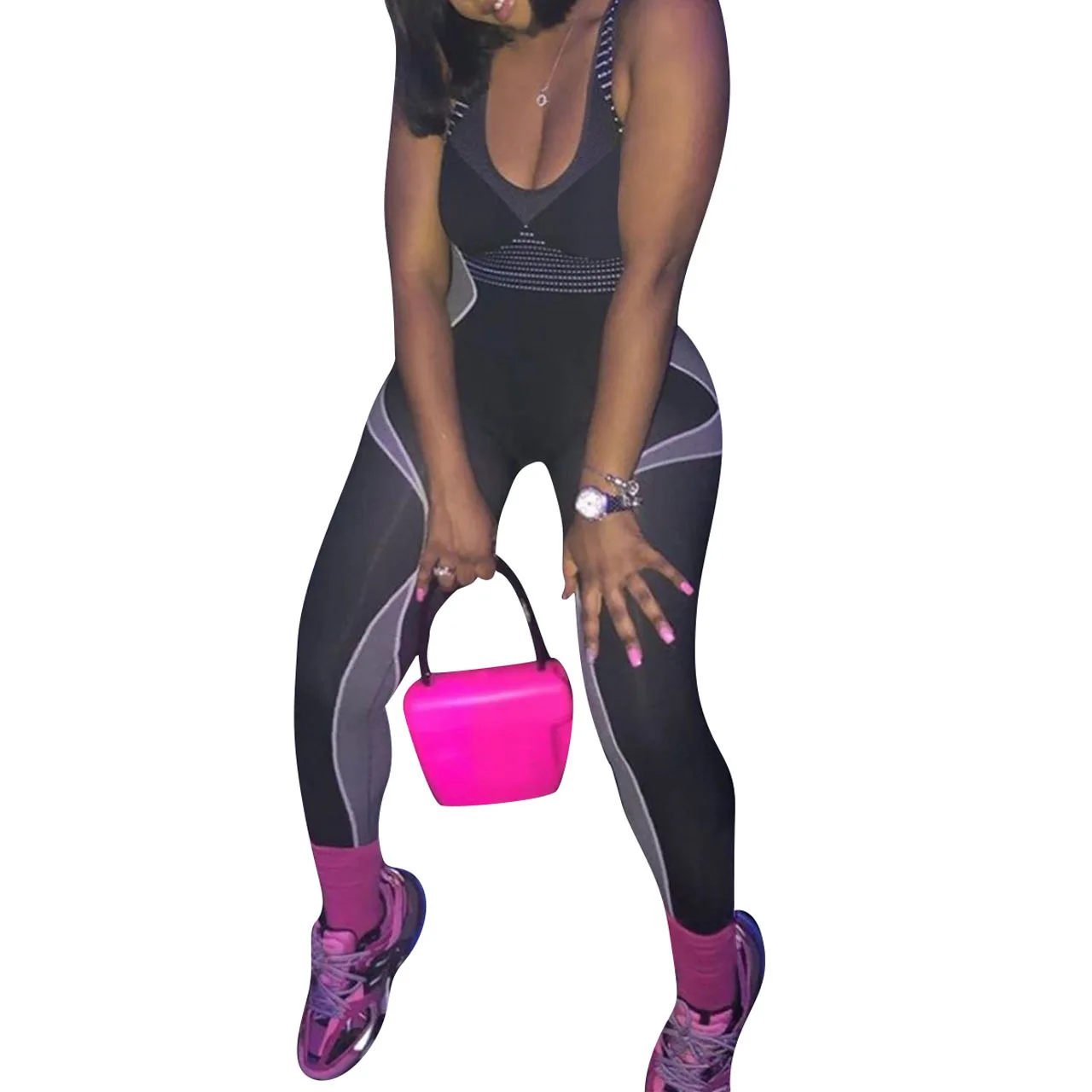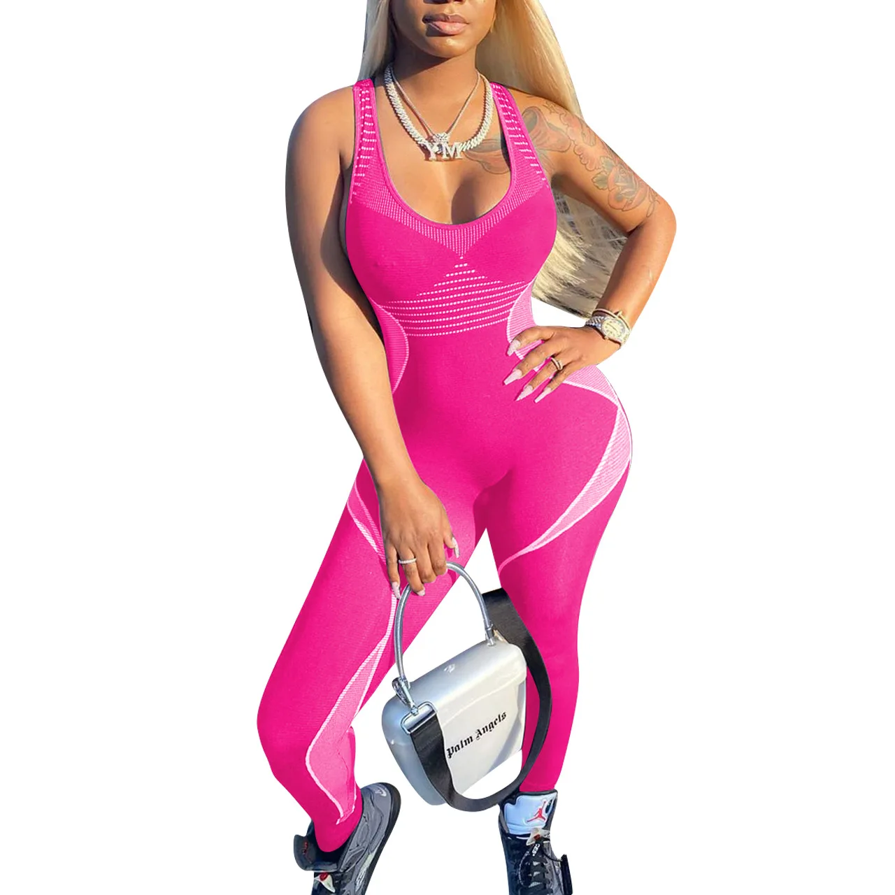CM.YAYA Women Sport Sleeveless Print Tank Bodycon Pencil Bodysuit Jumpsuit Sexy Club Party Romper Playsuit One Piece Overalls