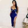 CM.YAYA Women Strapless Diamonds Crystal High Side Split Ruched Birthday Bodycon Midi Maxi Dress Evening Party Dresses Vestidos