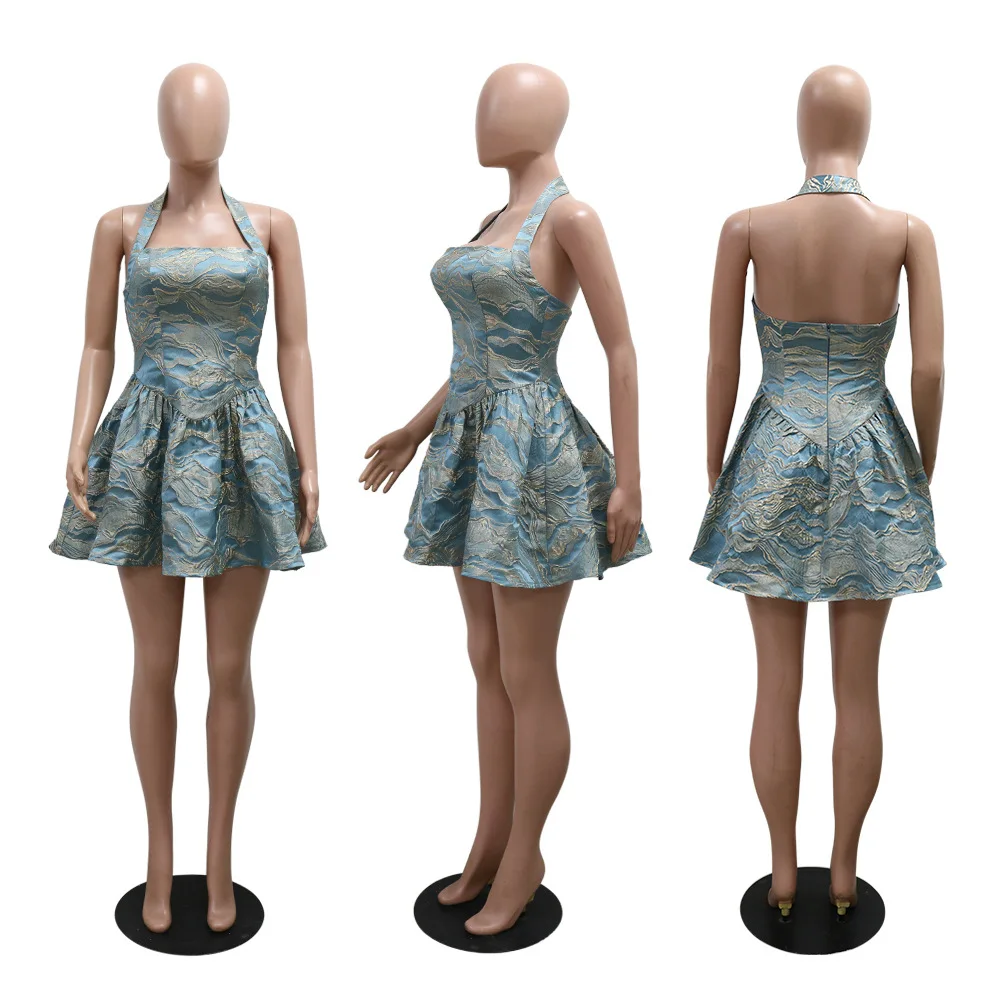 CM.YAYA Women Strapless Halter Bodycon Mini Dress 2024 Fall Backless Street Beach Party Night Club Holiday Dresses Vestidos