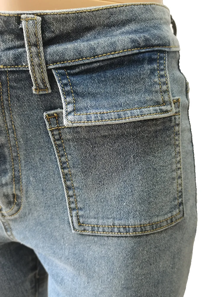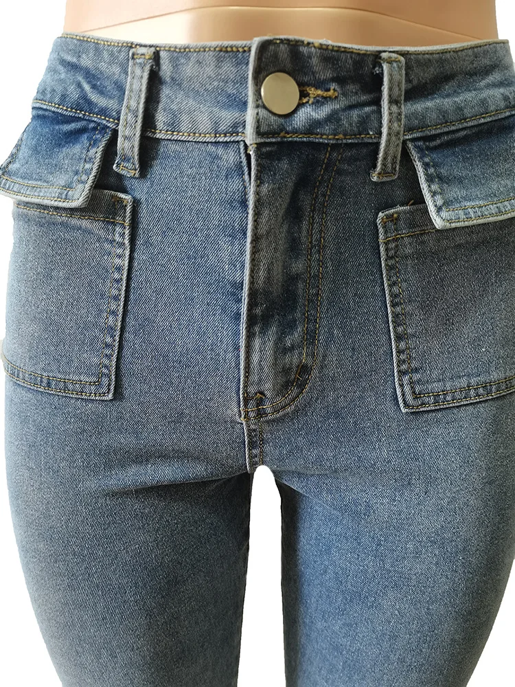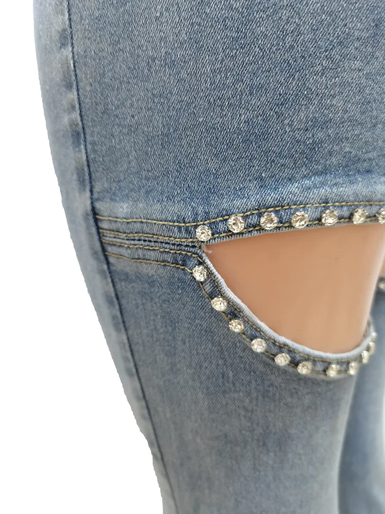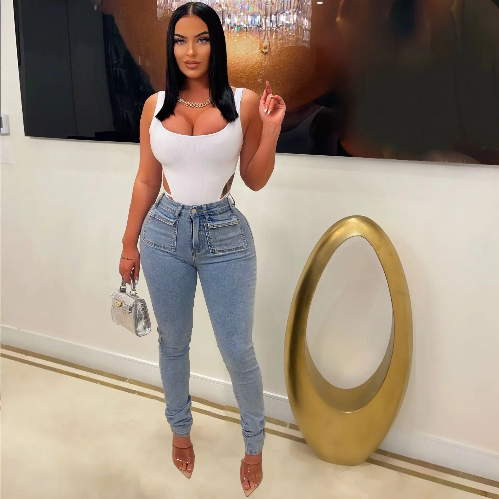 CM.YAYA Women Streetwear Cutout Back Dimonds Splicing Pencil Denim Pants 2023 Summer Pocket Front High Waist Sexy Jeans Trousers