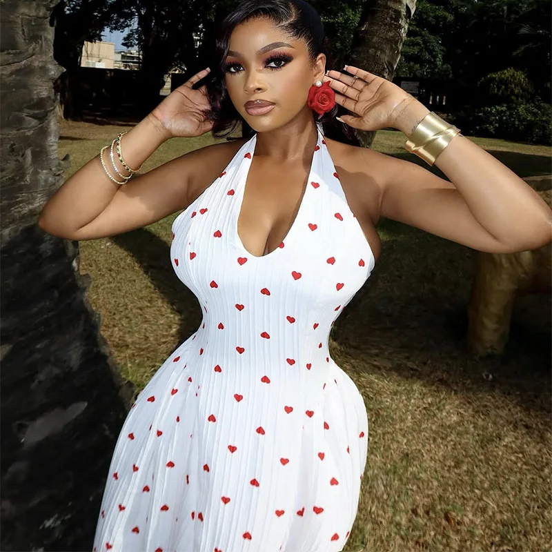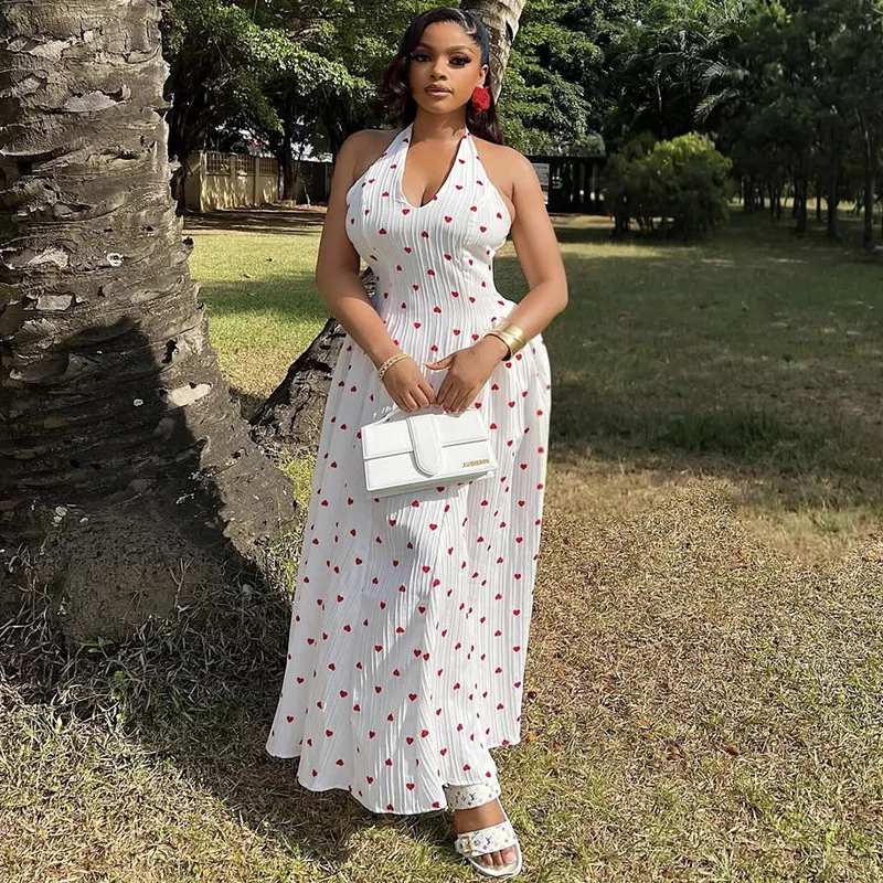 CM.YAYA Women Sweetheart Print Halter Neck Maxi Long Dress 2025 Summer Beach Holiday Birthday Sexy Club Party Evening Dresses